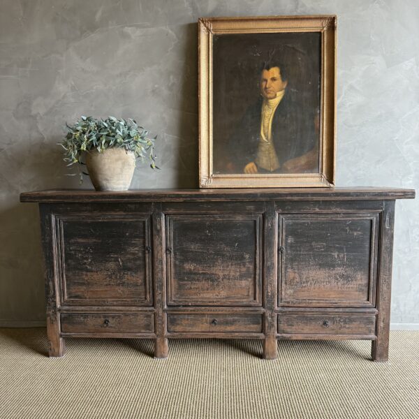 Vintage Painted Elm Wood Cabinet with Drawers 71″