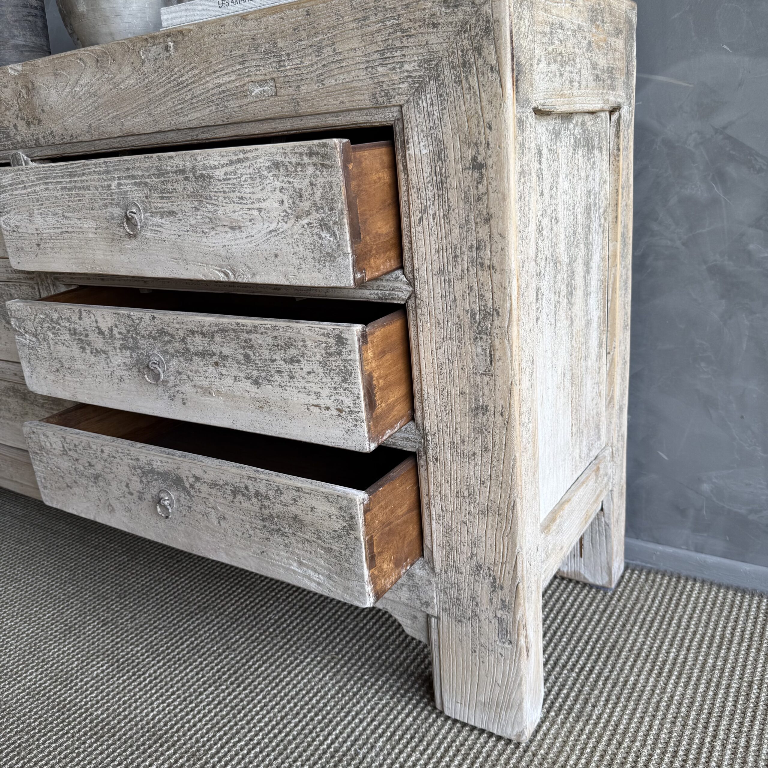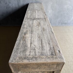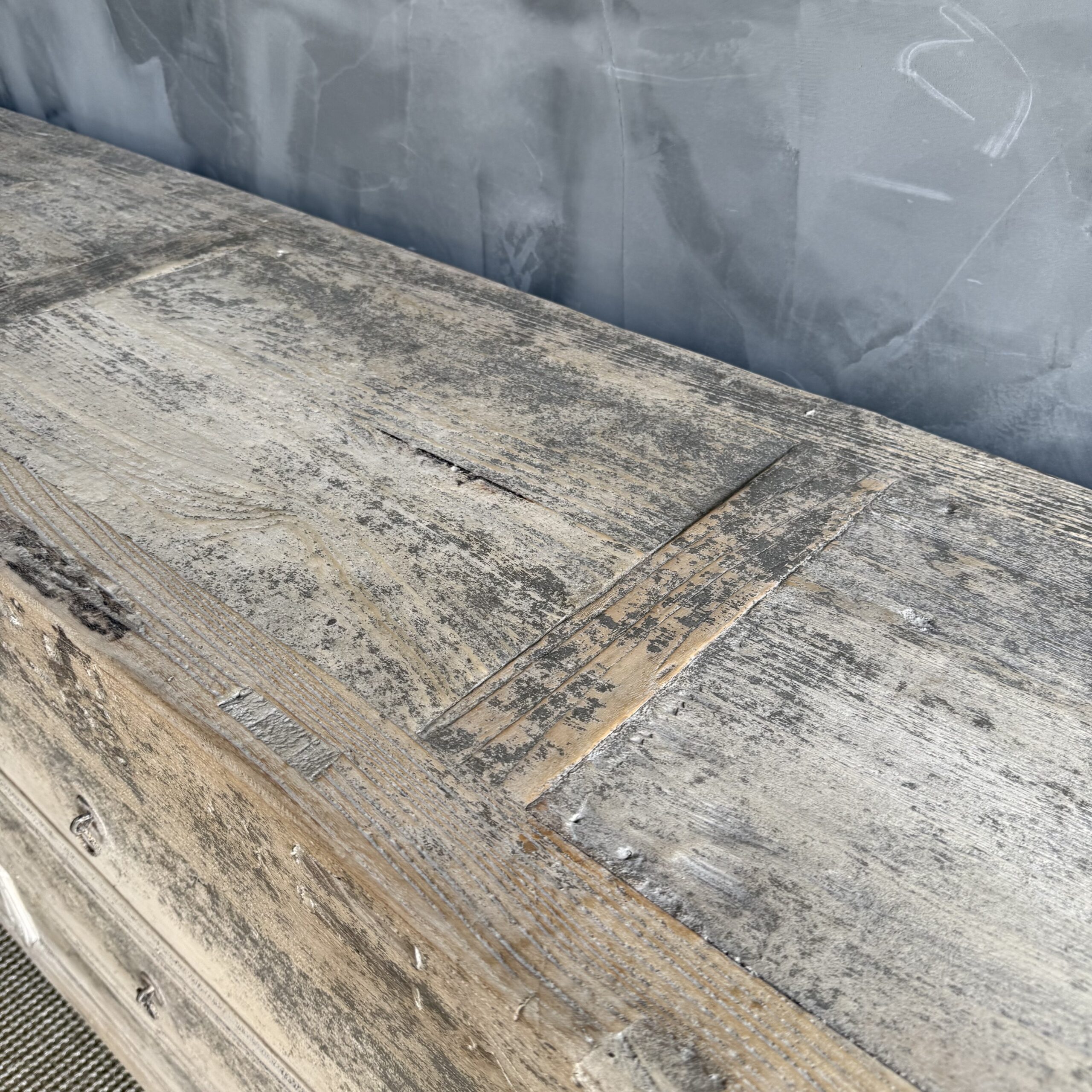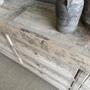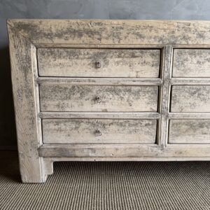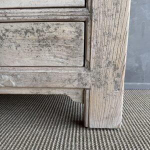 The patina, is a soft bleached wood with creamy grayish undertones.
