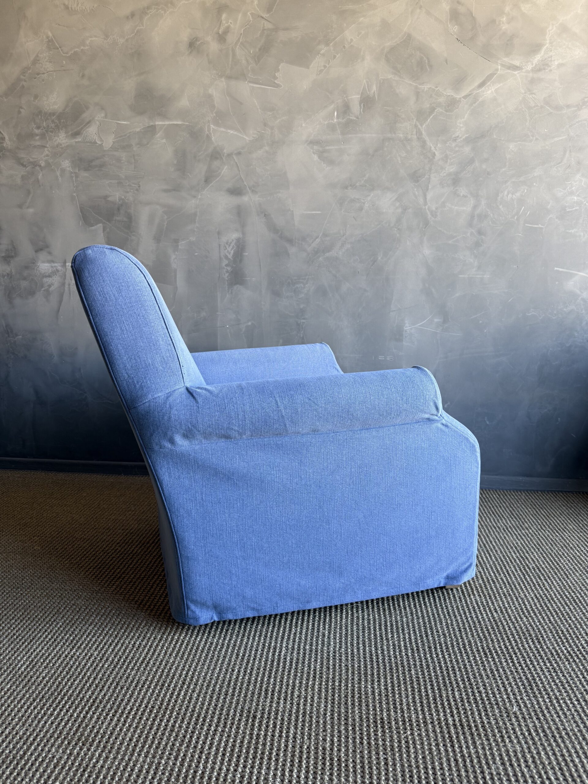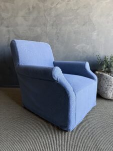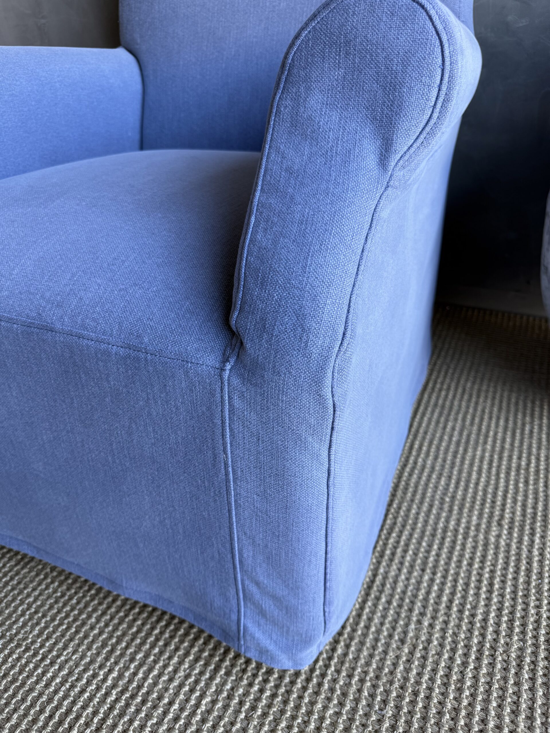 This is a slip cover only for the Ans Belgian Club Chair / French Blue