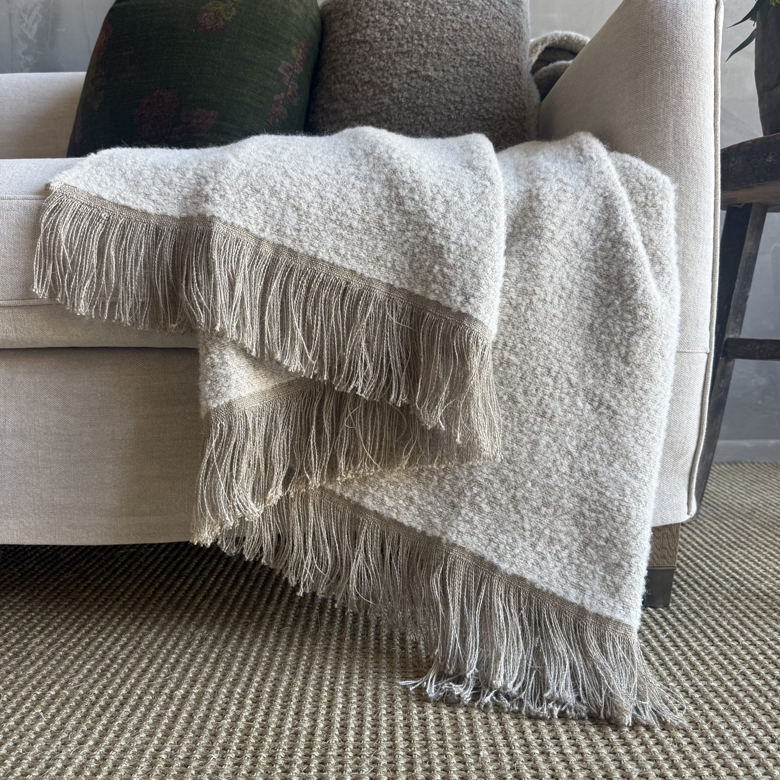 Woven in Belgium using traditional weaving techniques, Winters features a combination of smooth Belgian Linen and woolly Alpaca. This combination of fibers forms an exquisite touch and weight, and a texture that looks as warm as it feels.