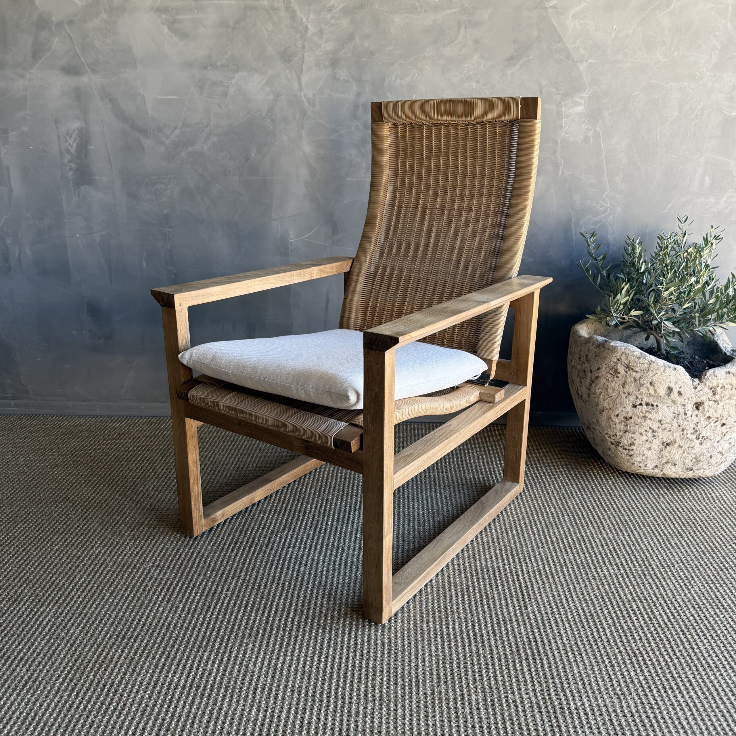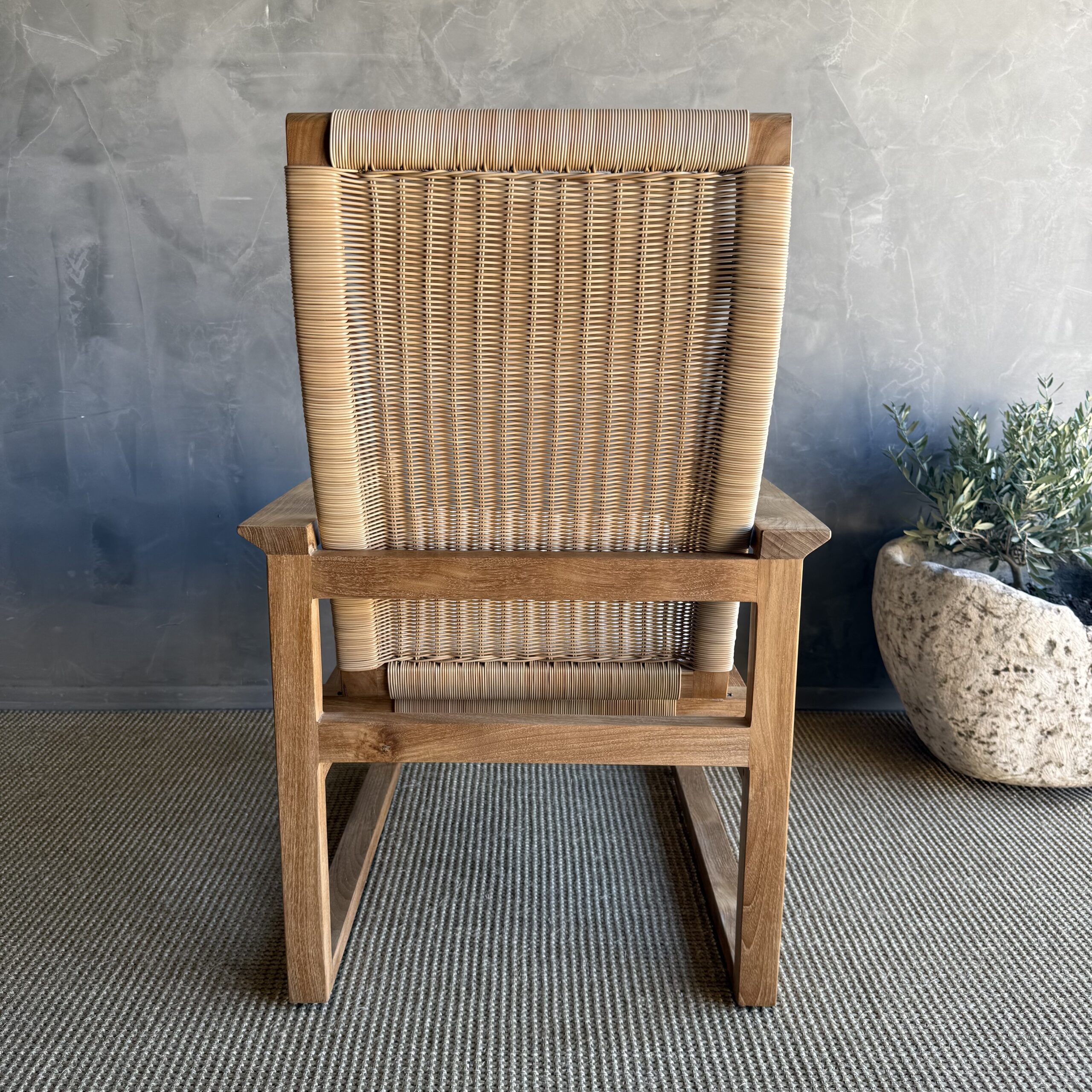 Enhance your indoor / outdoor room with this stylish Borge Collection solid teak wood lounge chair featuring synthetic rattan weaving making this easy to maintain. Crafted from high-quality teak wood, this chair offers durability and timeless elegance, and comfort.