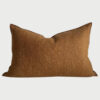 Custom wool blend accent pillow. Color: Havane A deep rust colored nubby boucle style pillow with a stitched edge, metal zipper closure. Our pillows are constructed with vintage one of a kind textiles from around the globe. Carefully constructed with the finest textiles, with hidden zipper closure, and overlocked seams. Limited quantities available. If this item is backordered, please allow 6-8 weeks for production.