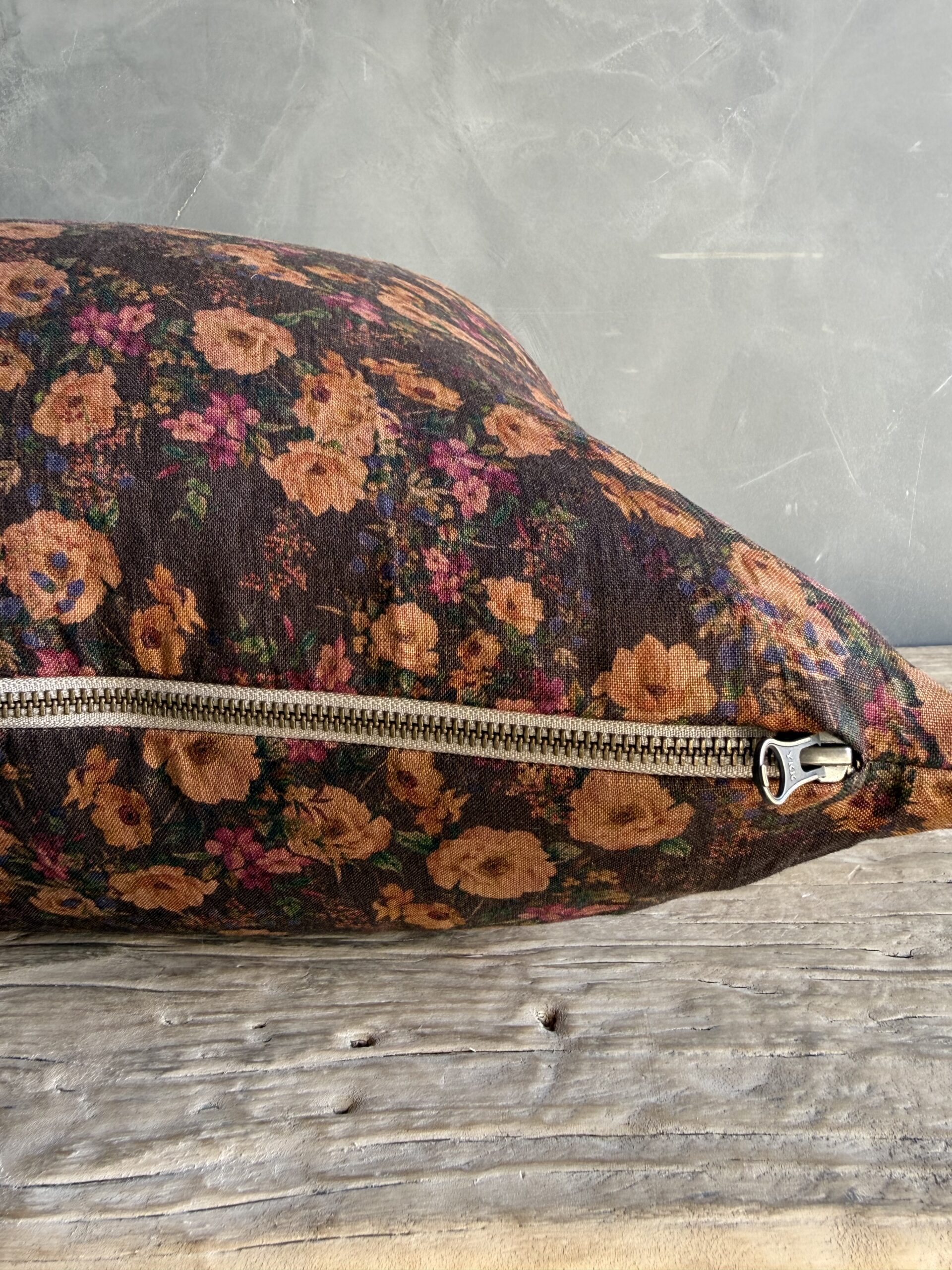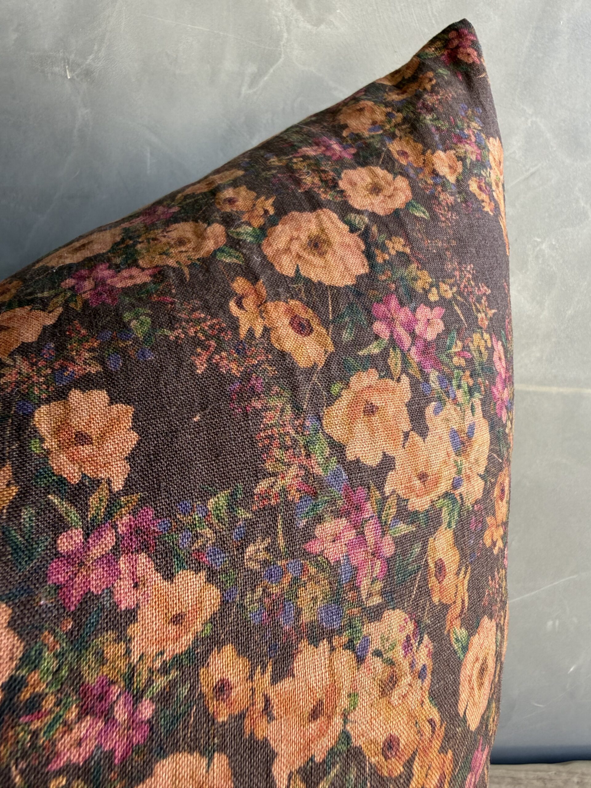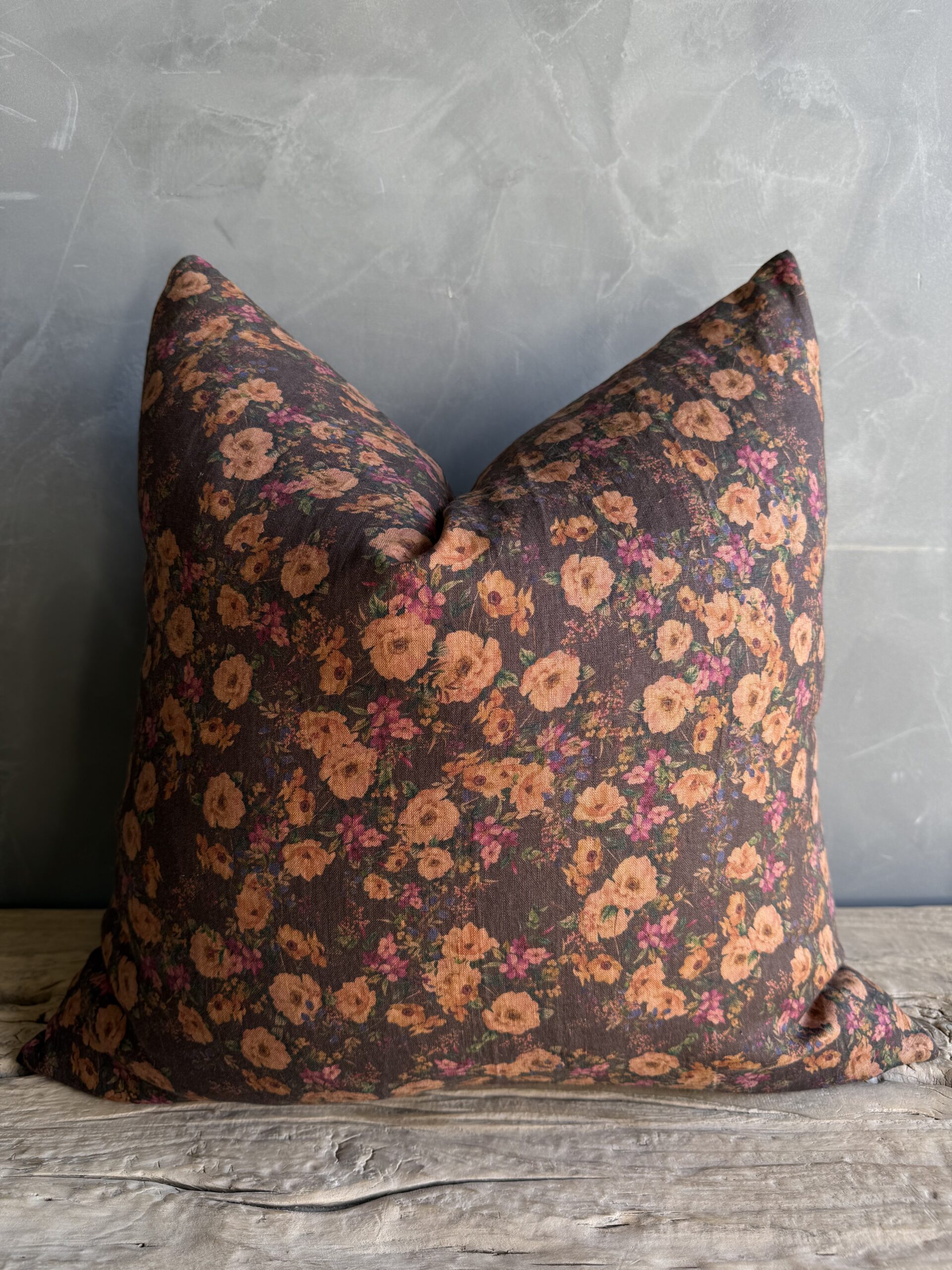 A beautifully understated pillow crafted from brown floral linen, blending soft, earthy tones with a delicate, timeless pattern. The subtle floral design adds just the right amount of visual interest while maintaining a relaxed, organic feel that complements a wide range of interiors.