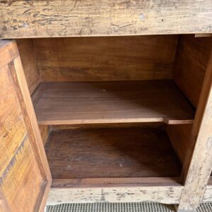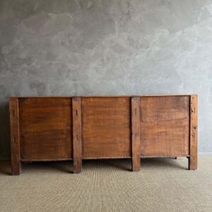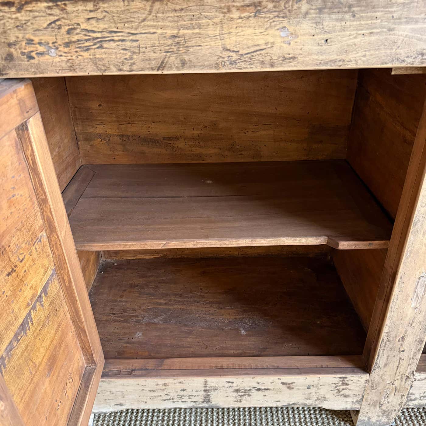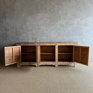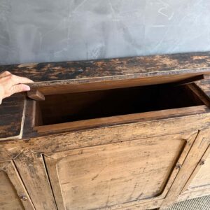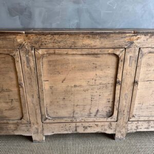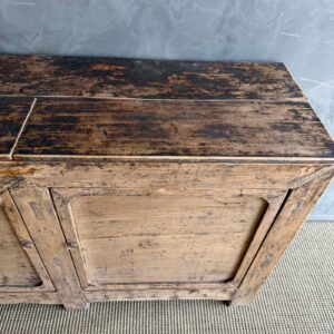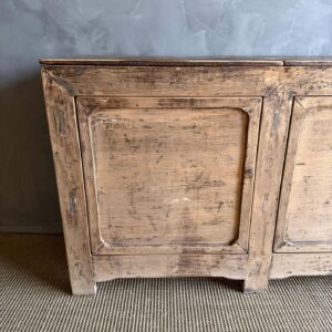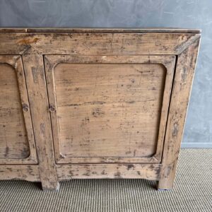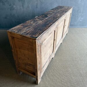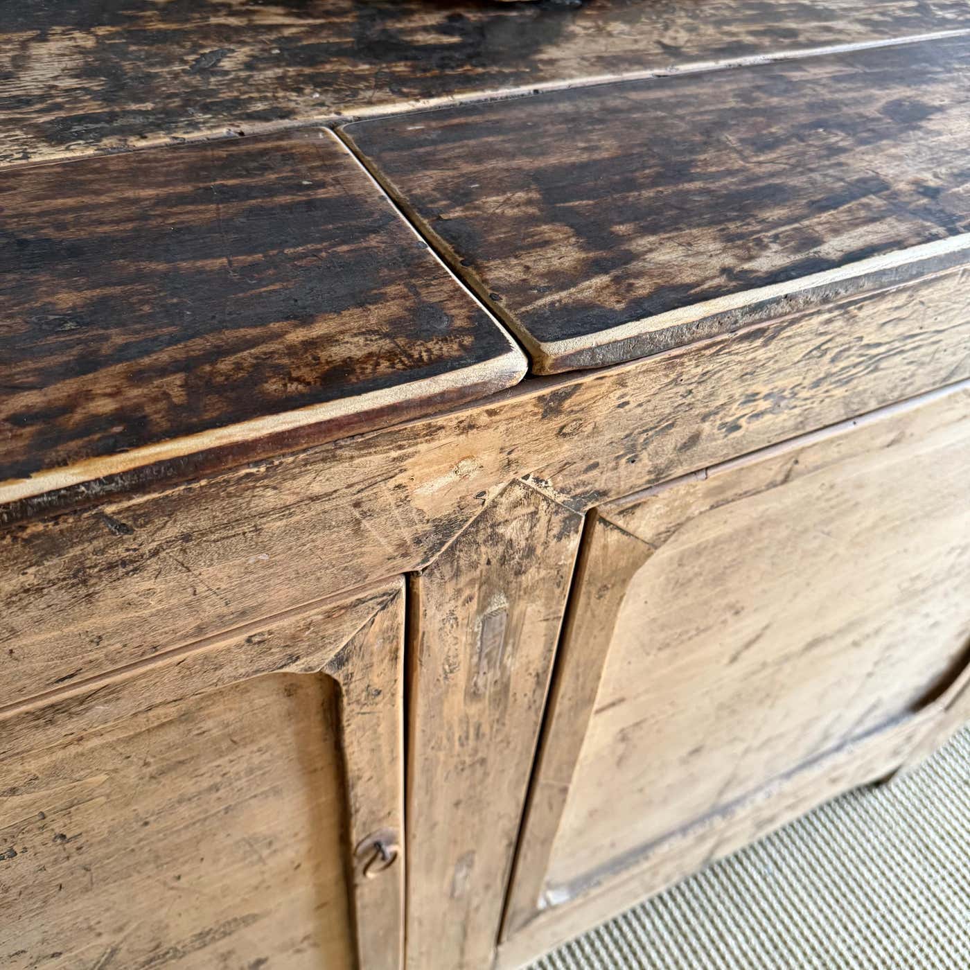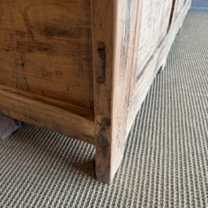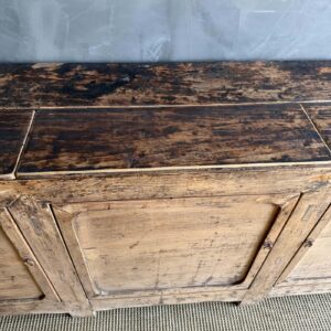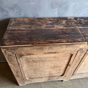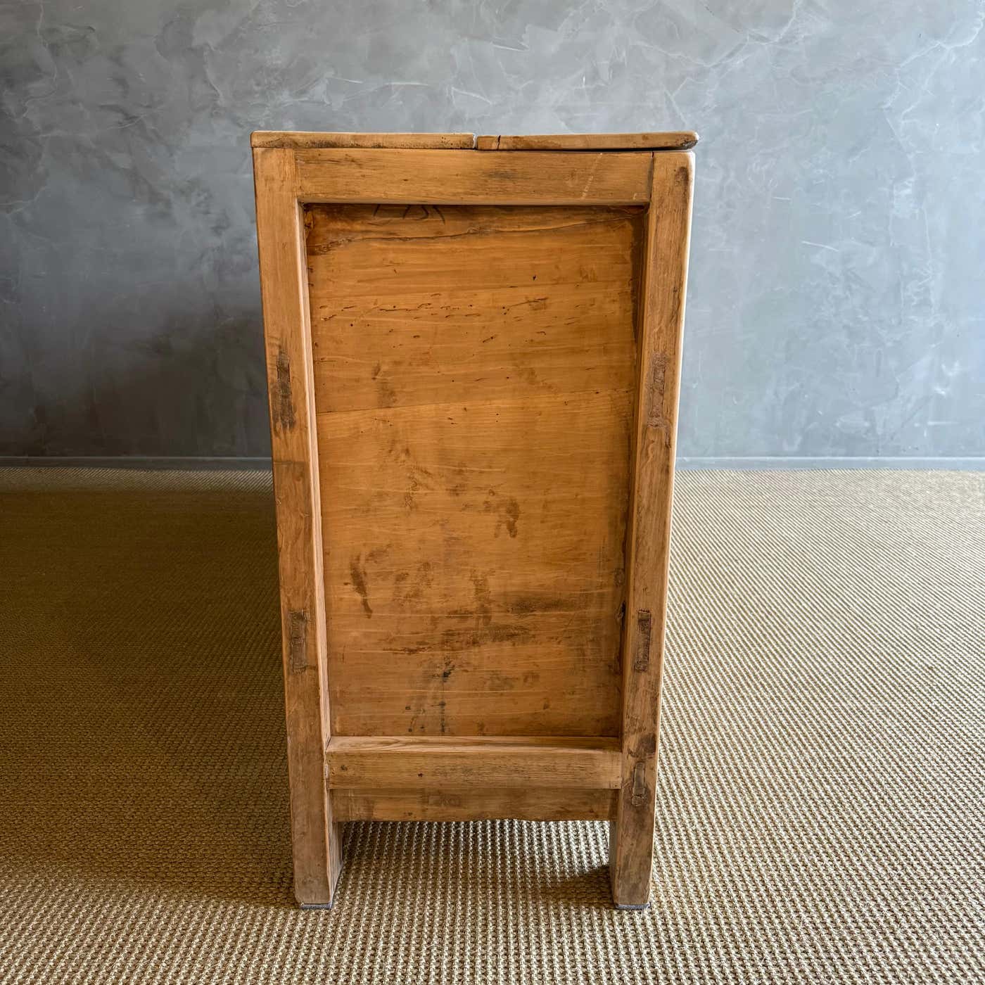 Vintage Cabinet with 3 doors, beautiful aged patina, the overall color is a light natural wood, with darker wood patina on the top.