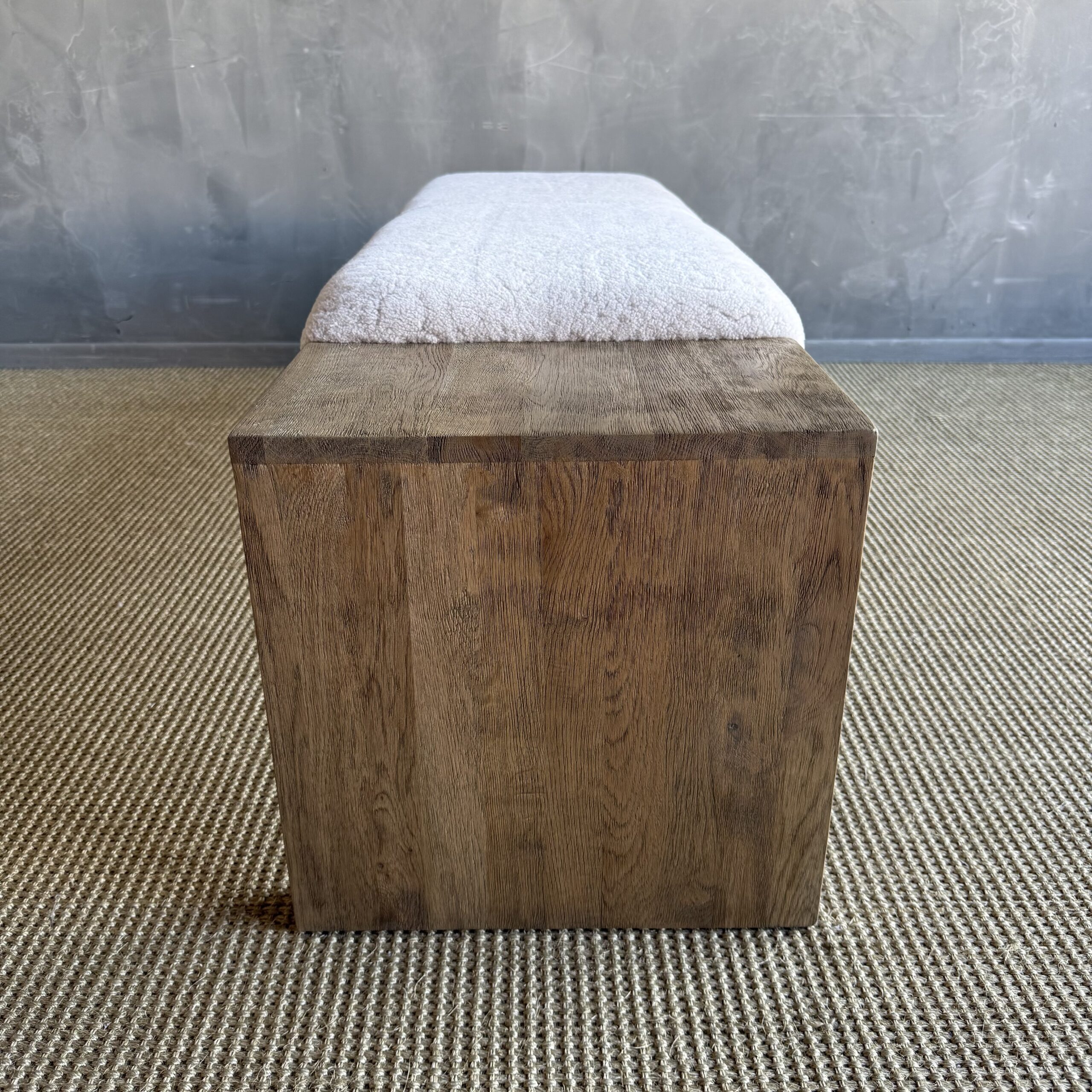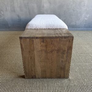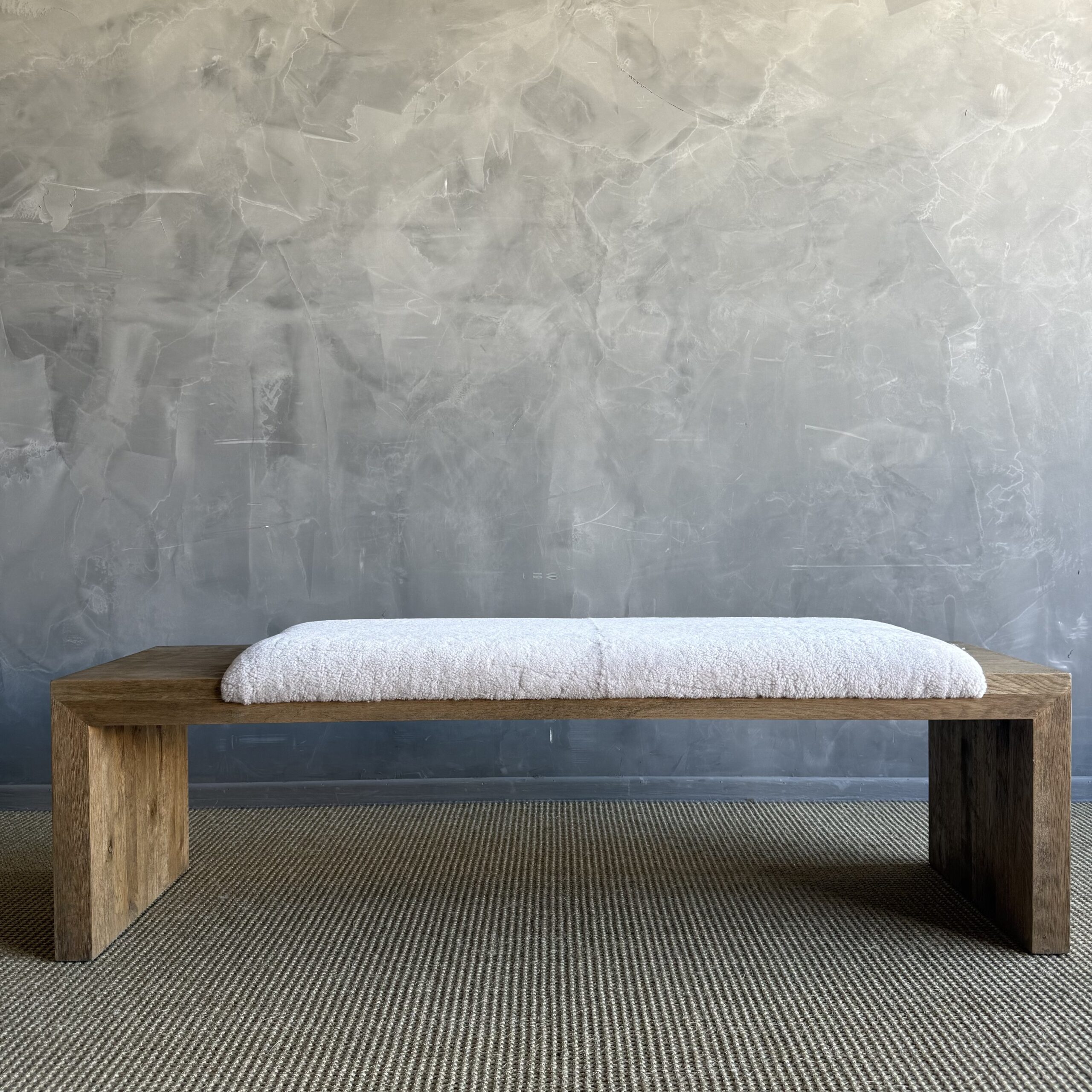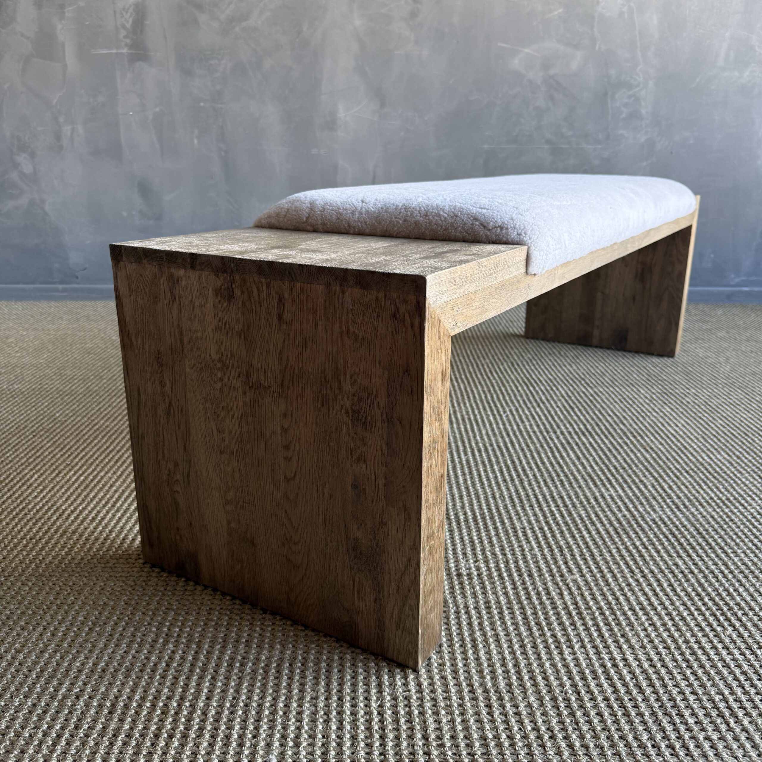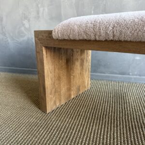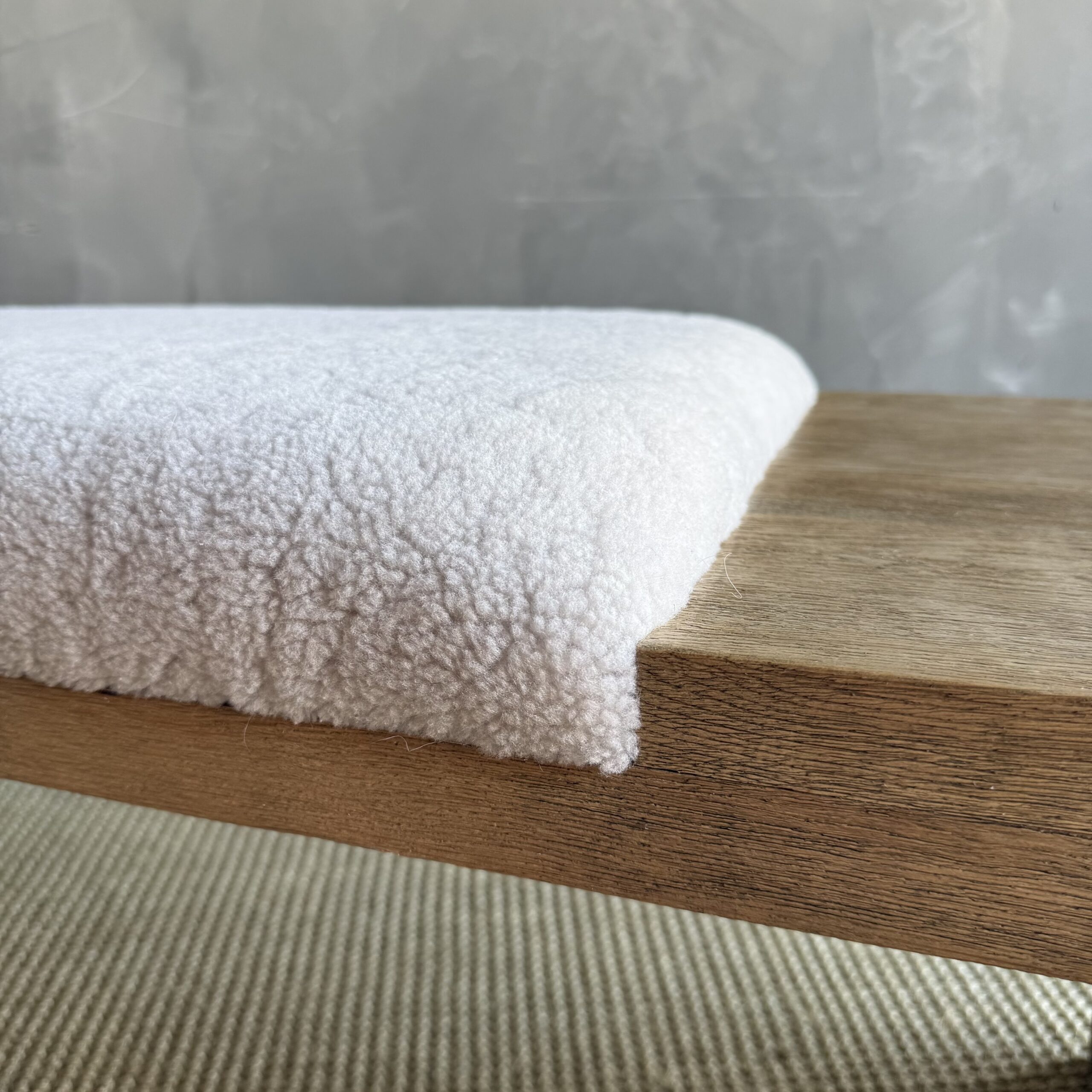 The Casi Sheep Bench is a refined blend of natural materials and sculptural design. Crafted from solid white oak with a soft, natural finish, each piece highlights the organic beauty of the wood grain. The seat features 100% genuine shearling upholstery, luxuriously soft to the touch and thoughtfully placed in an off-centered design for a modern, artful edge.