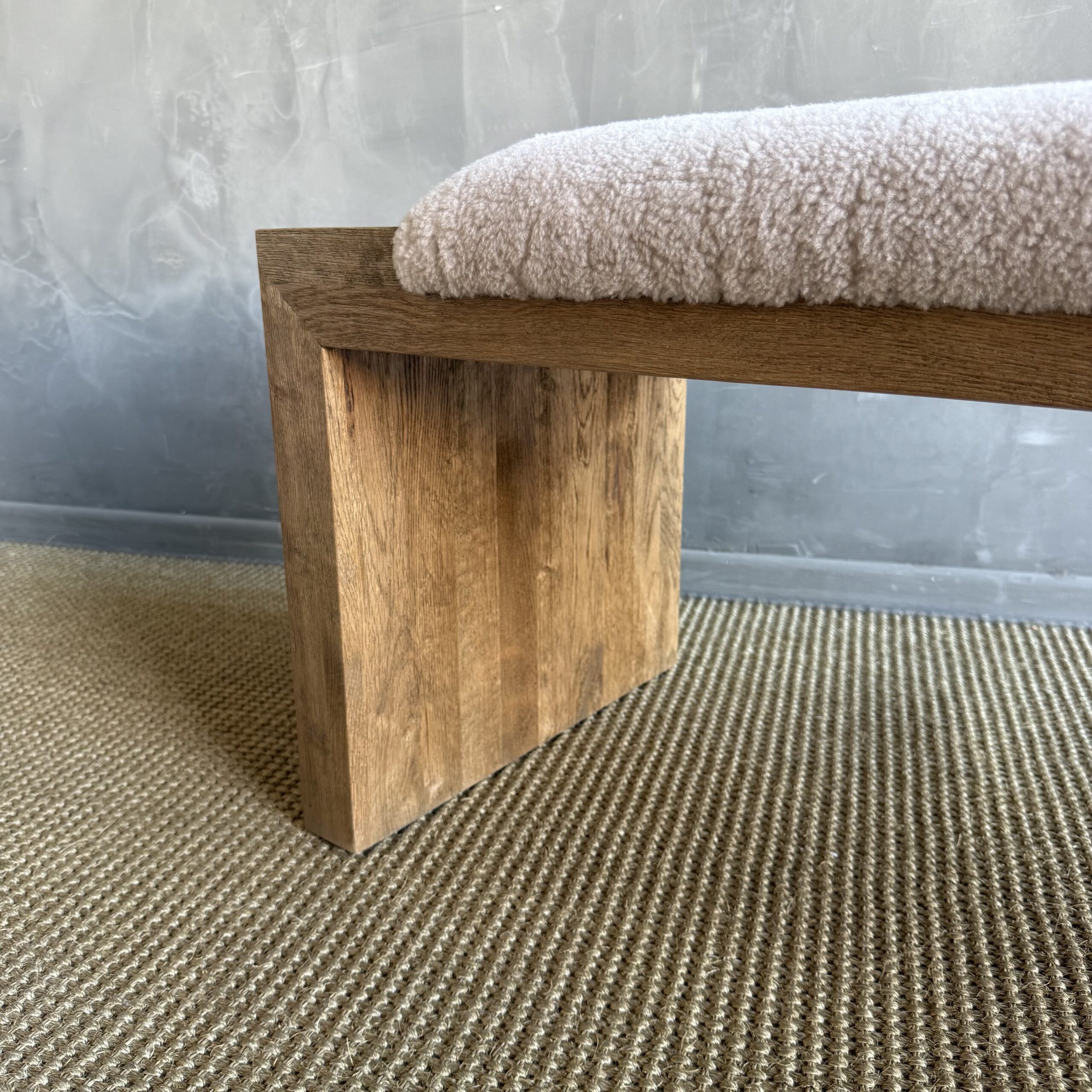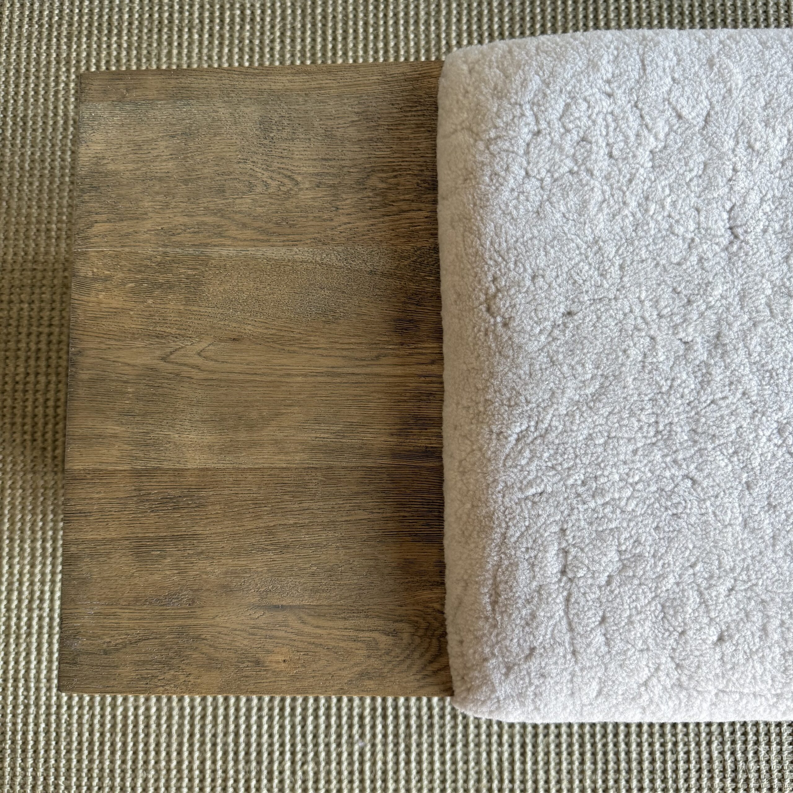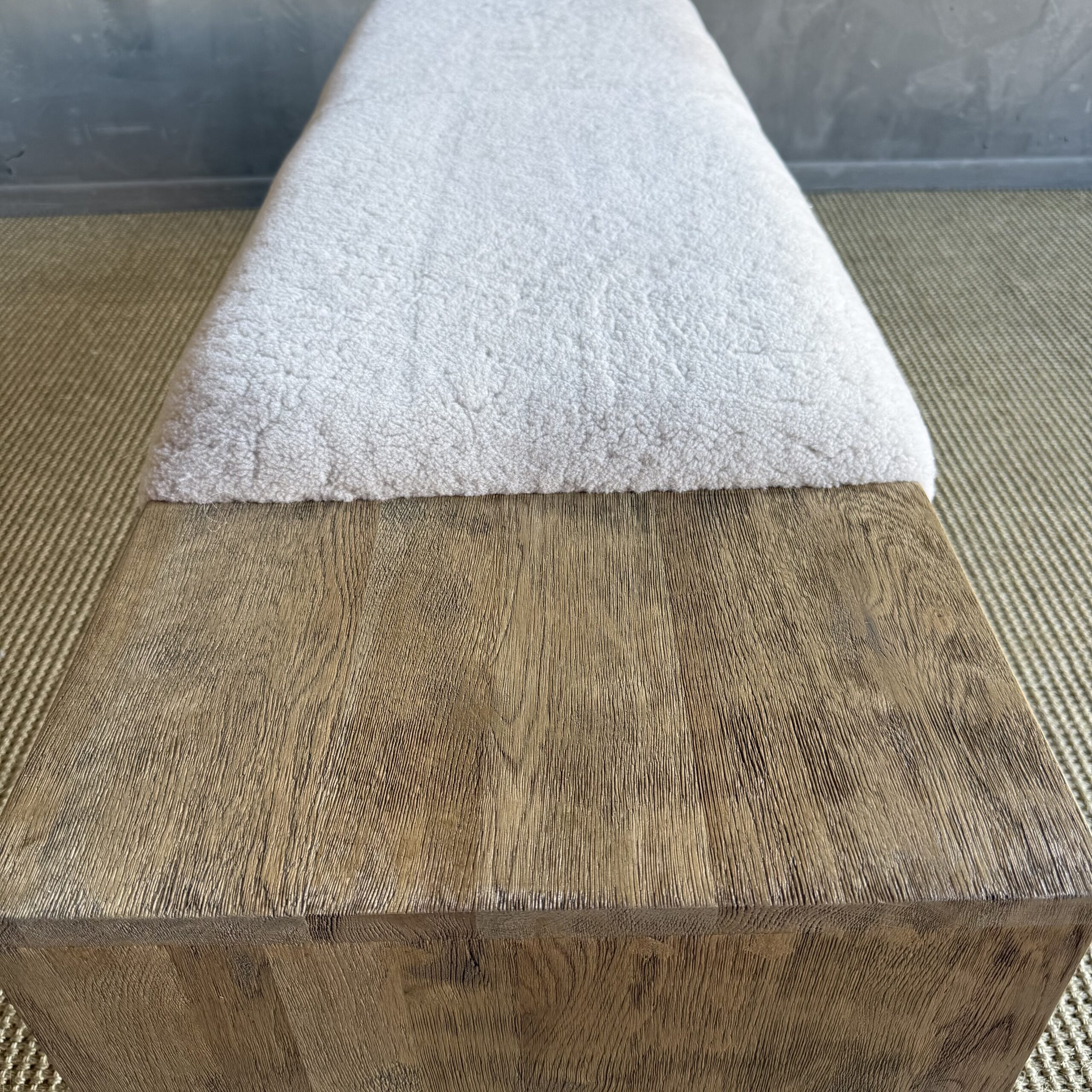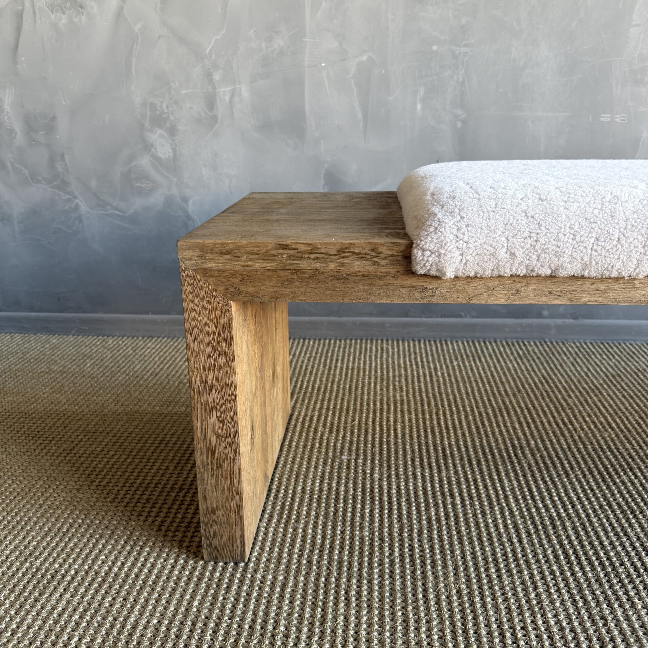 The Casi Sheep Bench is a refined blend of natural materials and sculptural design. Crafted from solid white oak with a soft, natural finish, each piece highlights the organic beauty of the wood grain. The seat features 100% genuine shearling upholstery, luxuriously soft to the touch and thoughtfully placed in an off-centered design for a modern, artful edge.