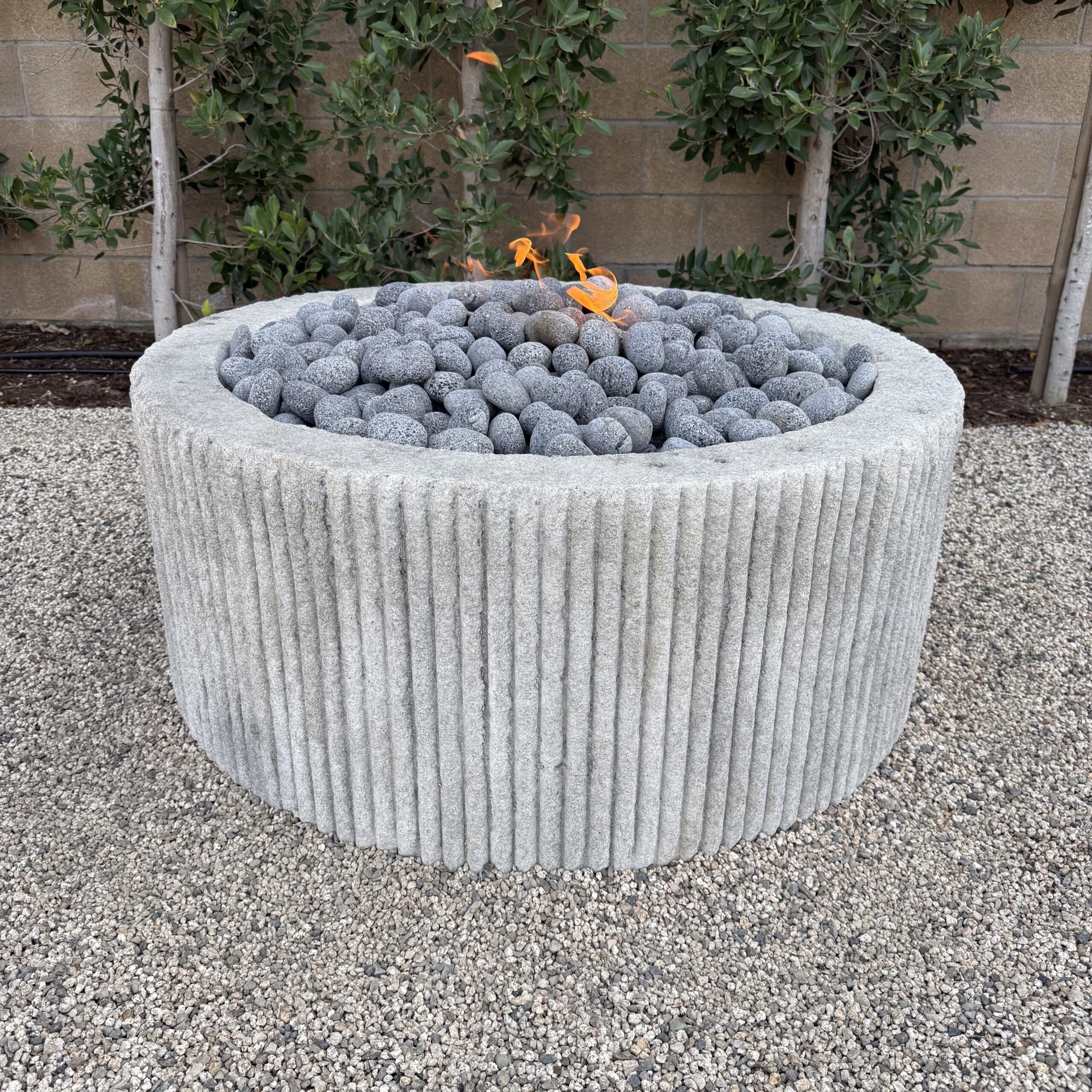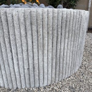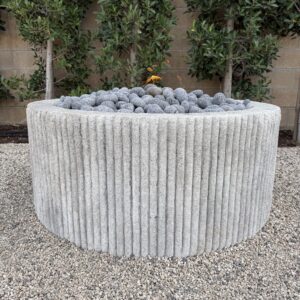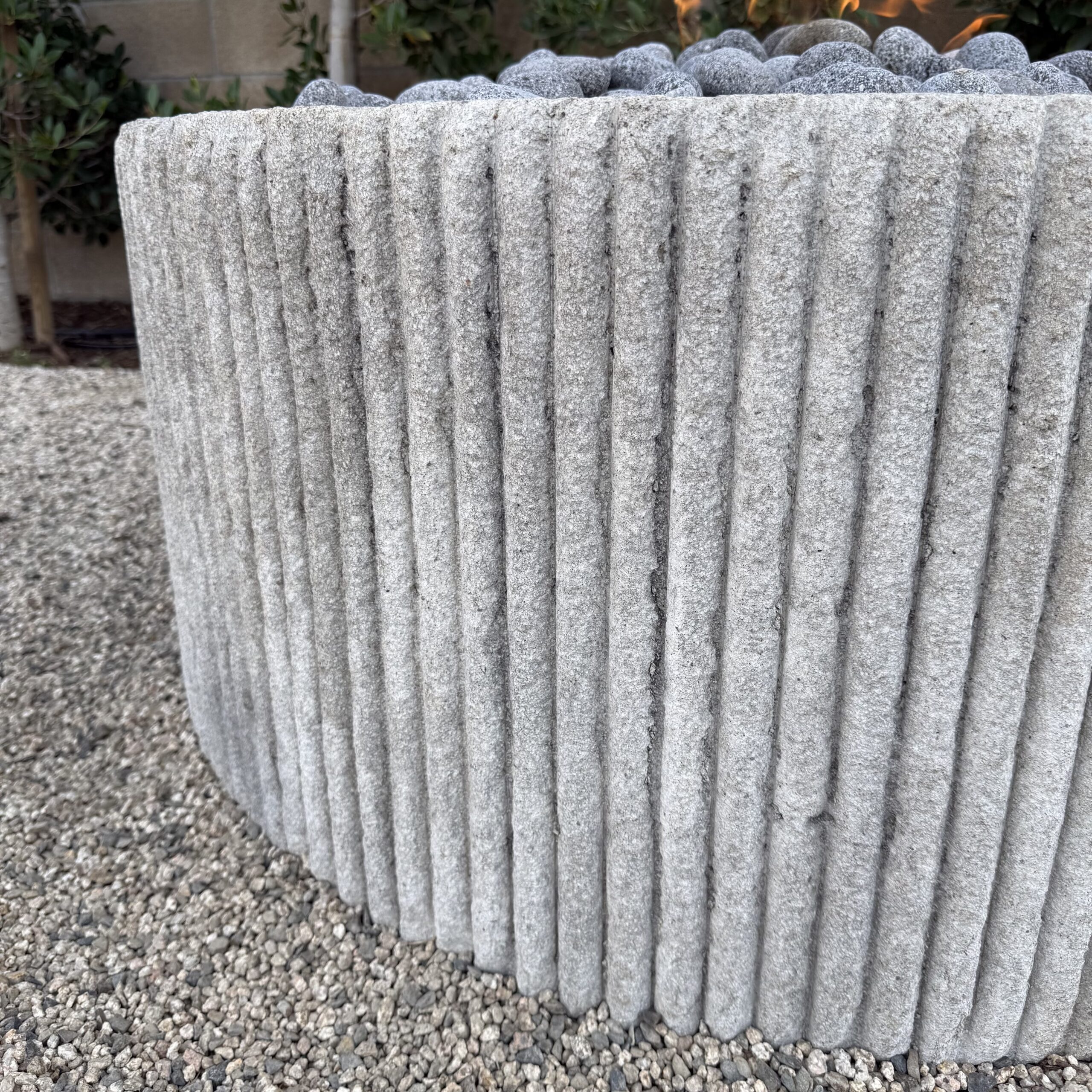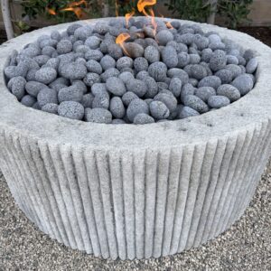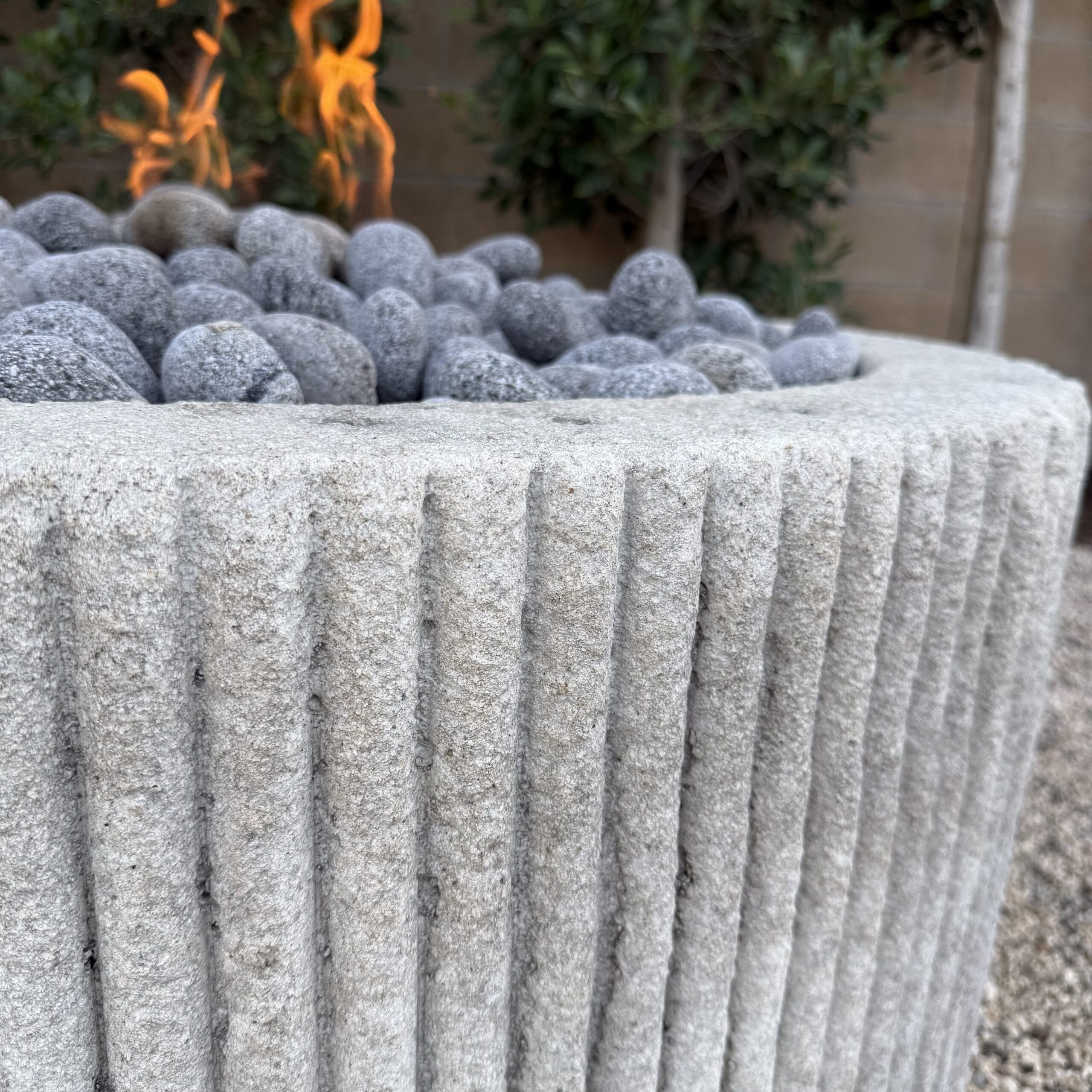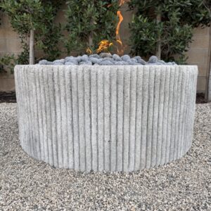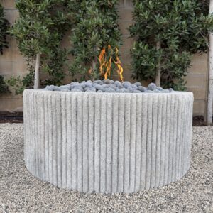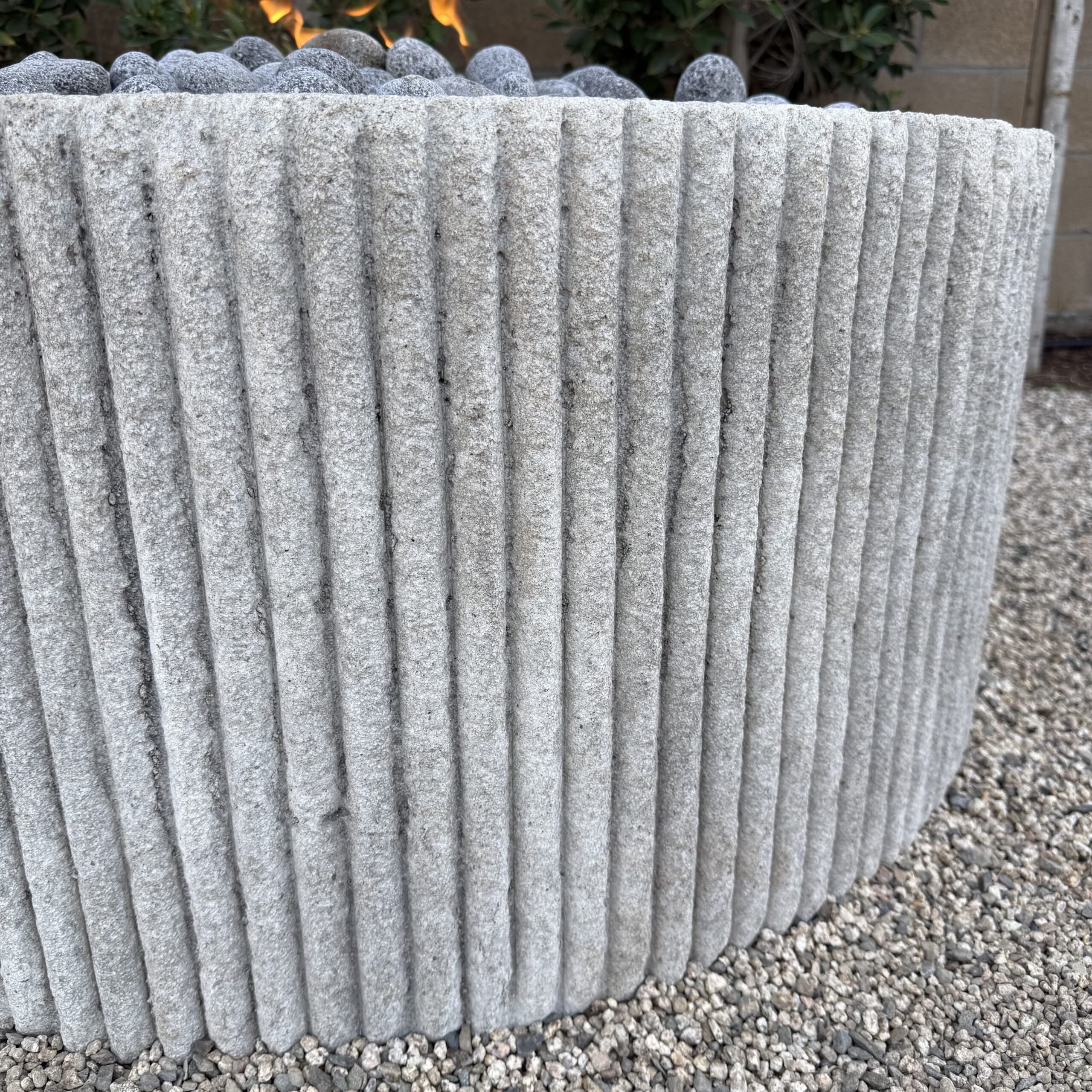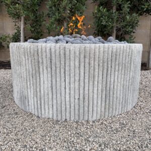 Custom Limestone Texture Fire Pit with Fluted Edges with Fire Pebbles - Bloom Home Inc
