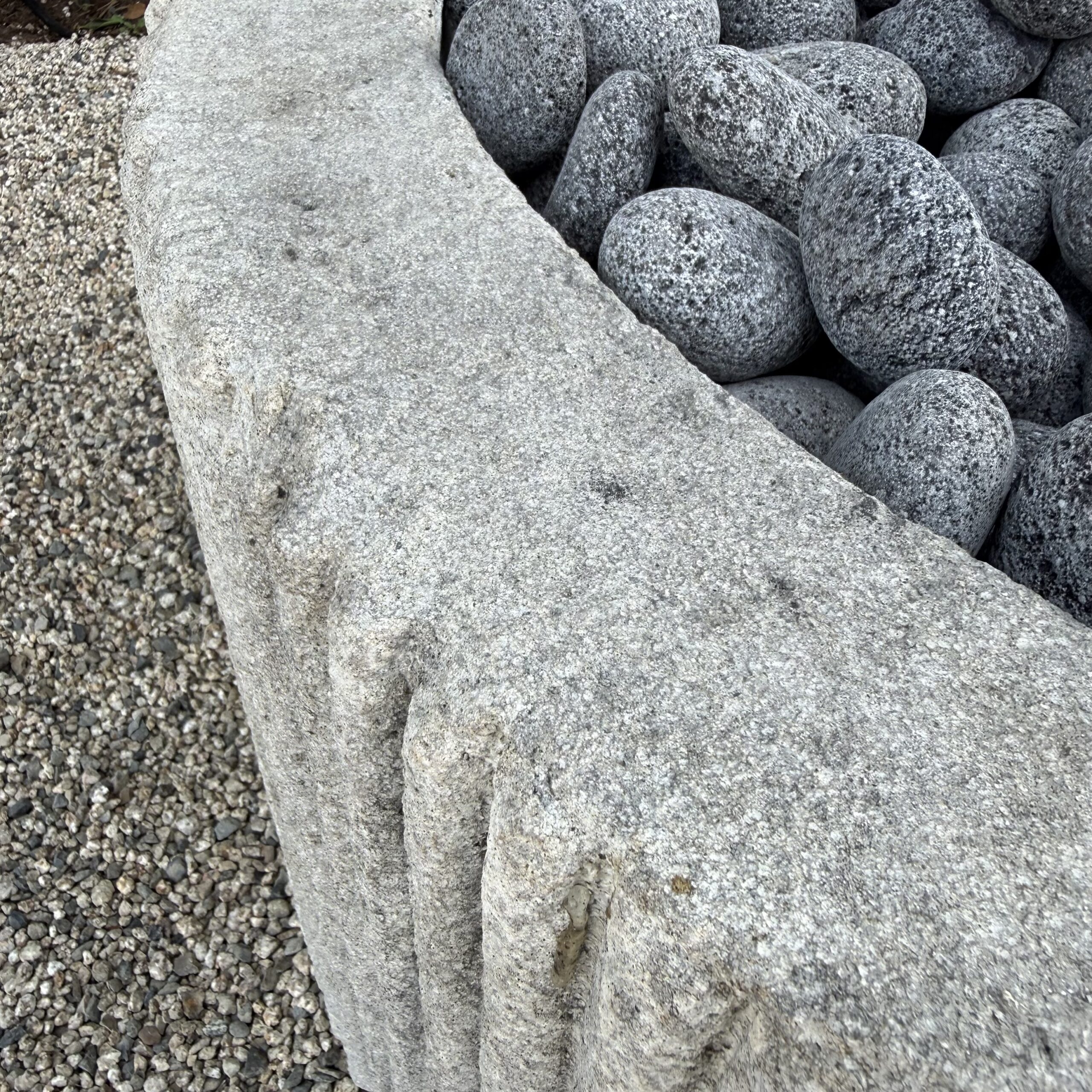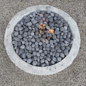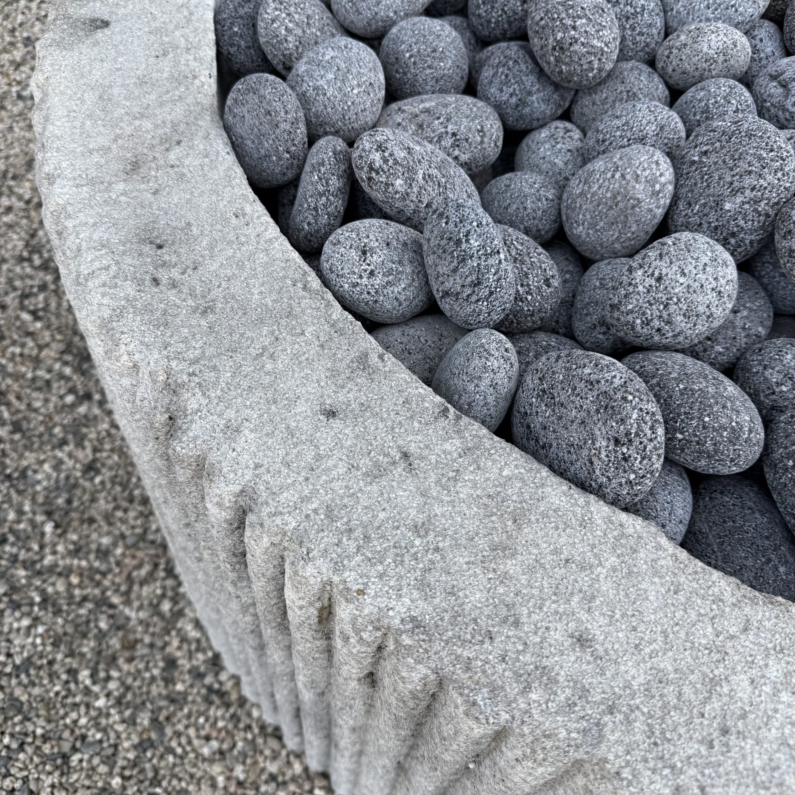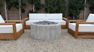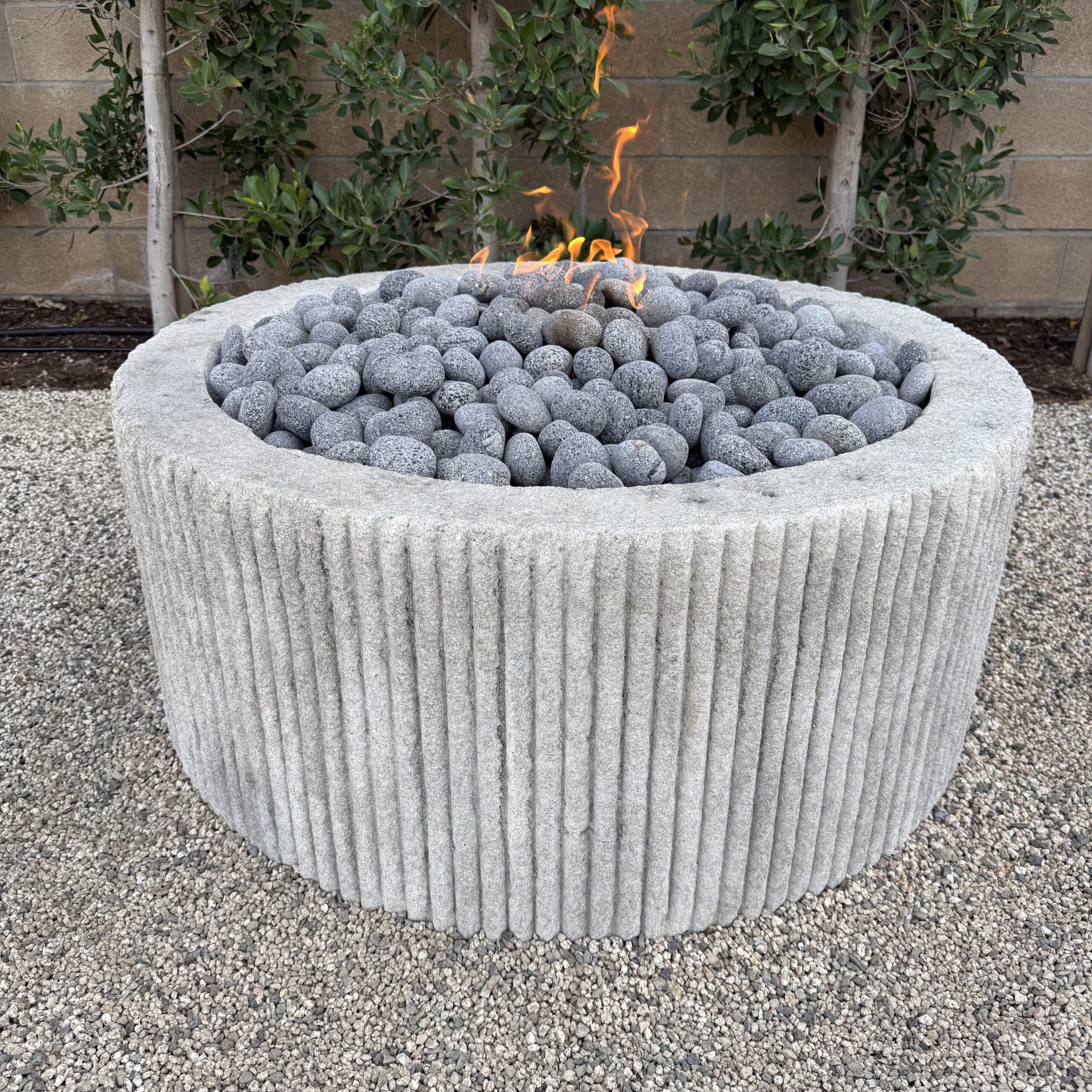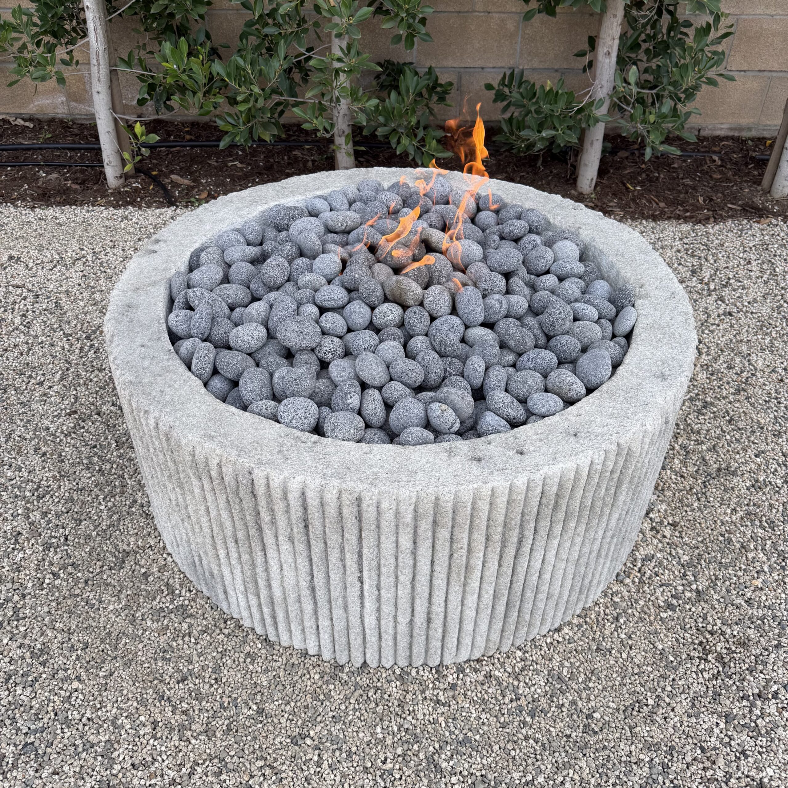 Custom Limestone Texture Fire Pit with Fluted Edges with Fire Pebbles - Bloom Home Inc