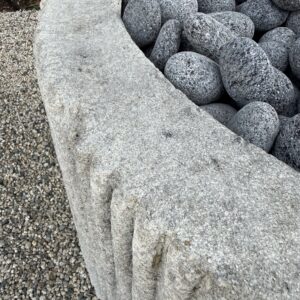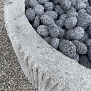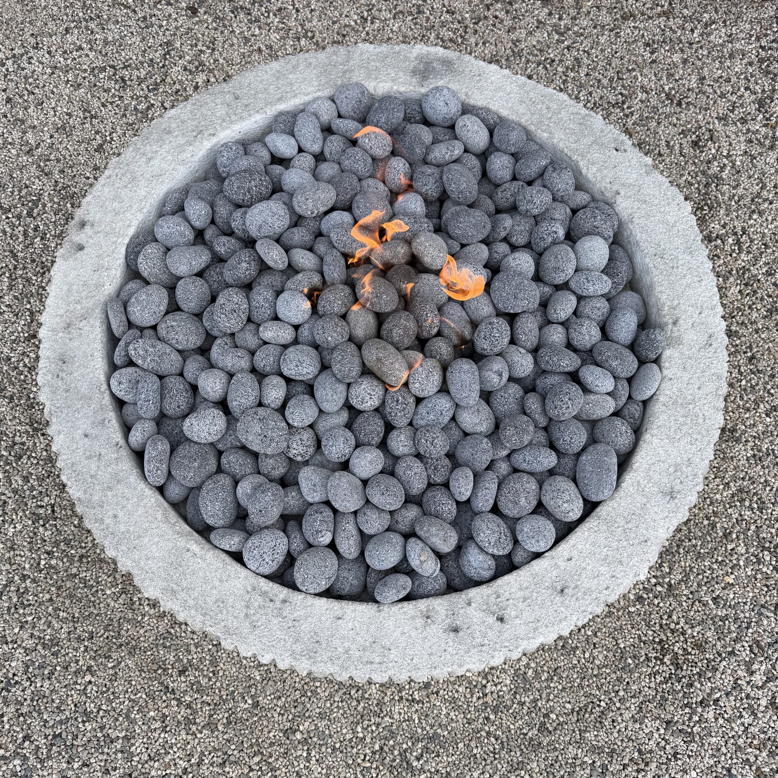 Custom Limestone Texture Fire Pit with Fluted Edges with Fire Pebbles