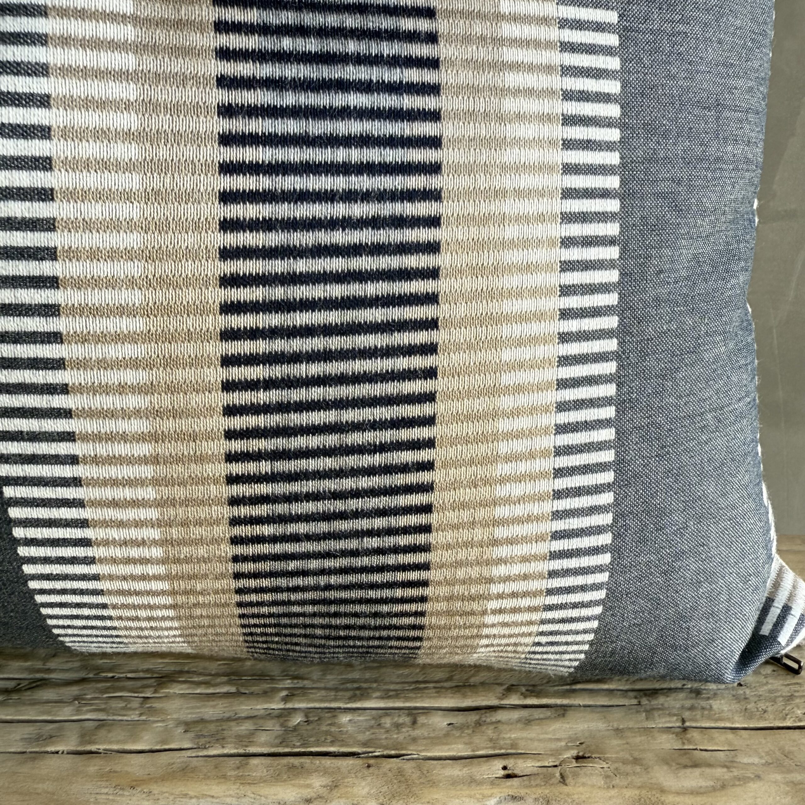 Designer Lumber Pillow in Blue Tan & White Stripe