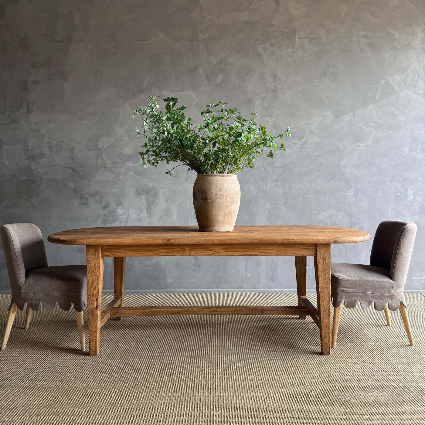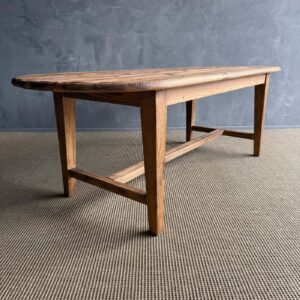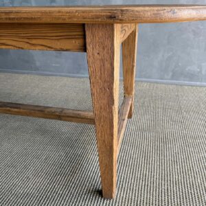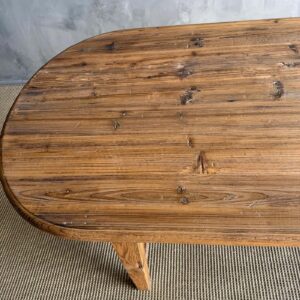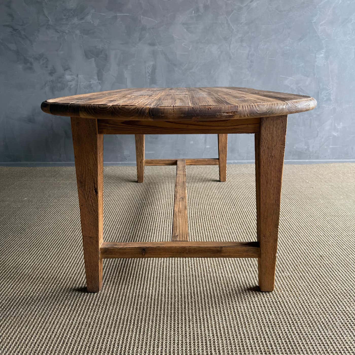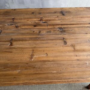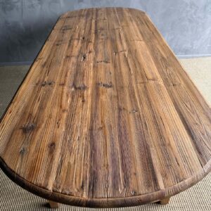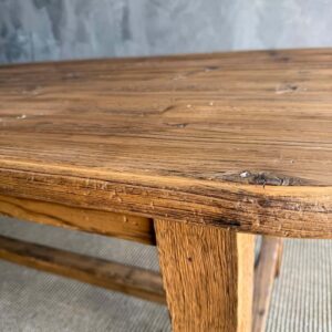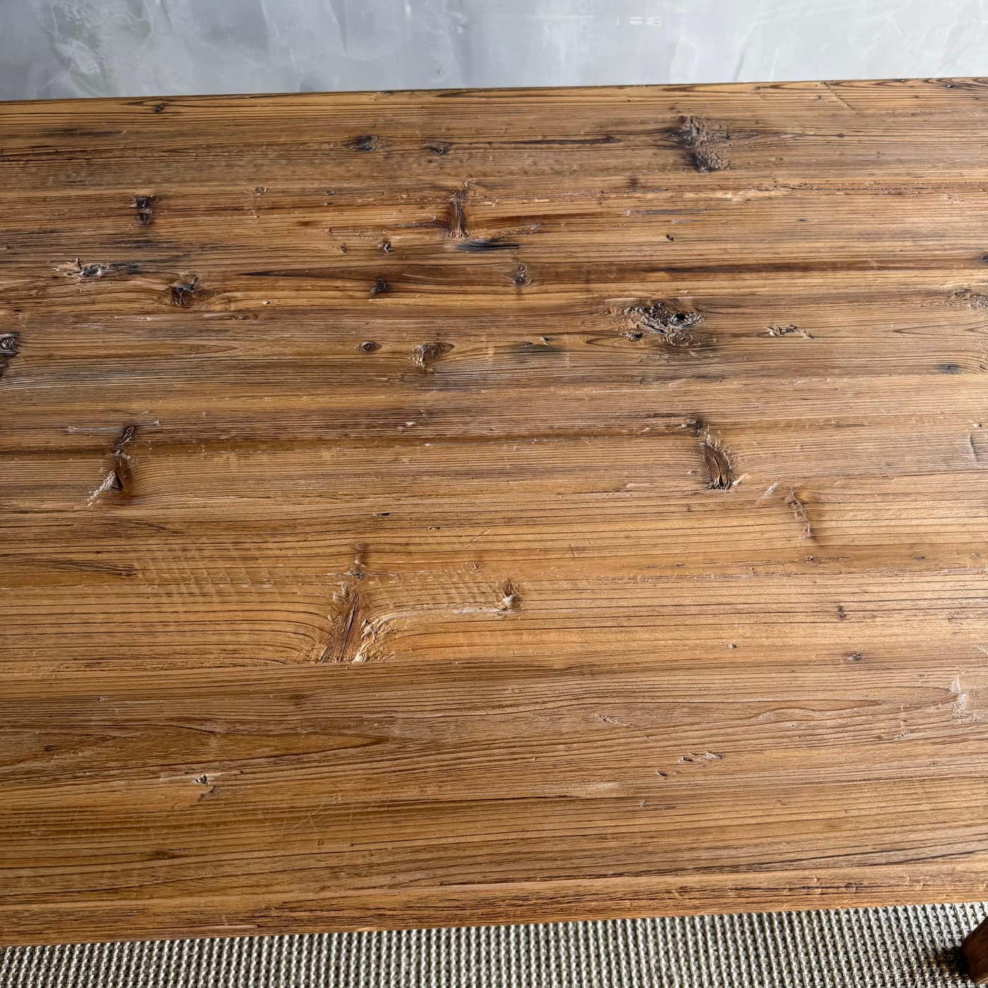 This reclaimed pine dining table exudes antique charm with its solid and sturdy construction. The warm honey tone of the wood adds a touch of elegance to any dining room.