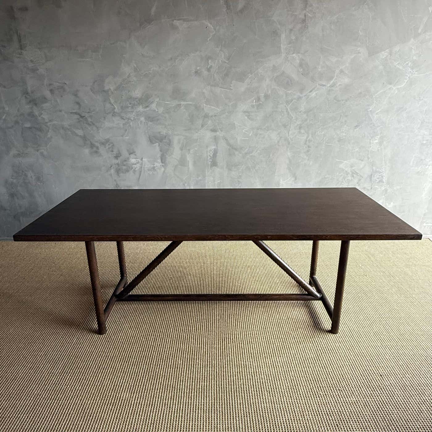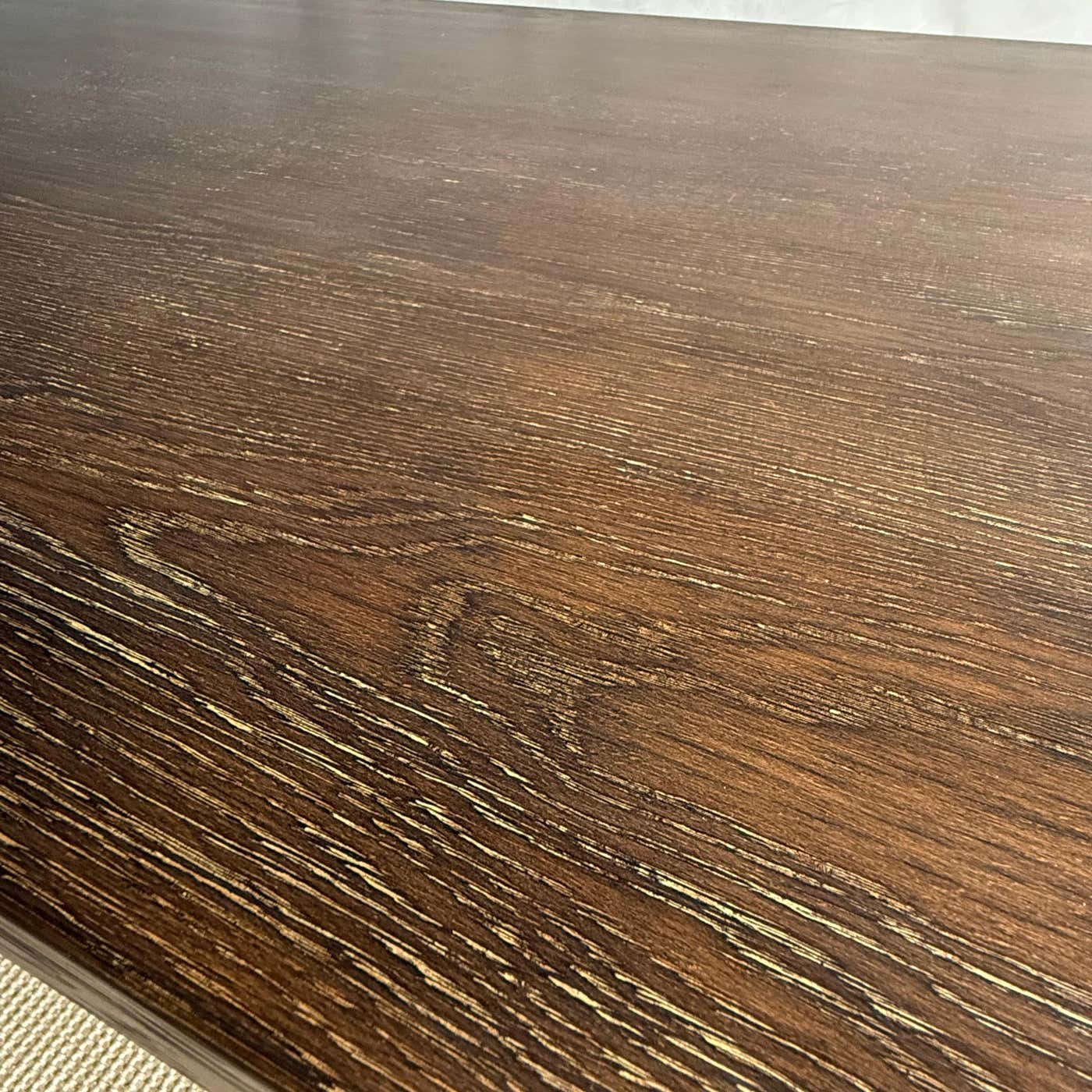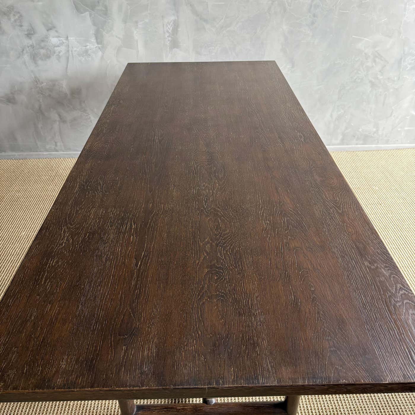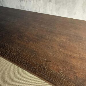 Introducing the modern Oak Dining Table, designed with clean lines and a stunning wire brush finish for a contemporary touch. Crafted with solid oak legs for durability and stability, this table comfortably seats up to 6 people, making it ideal for cozy gatherings or family meals.