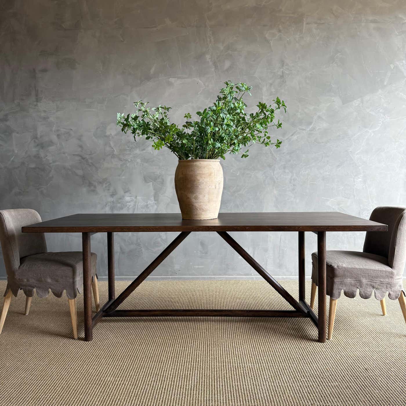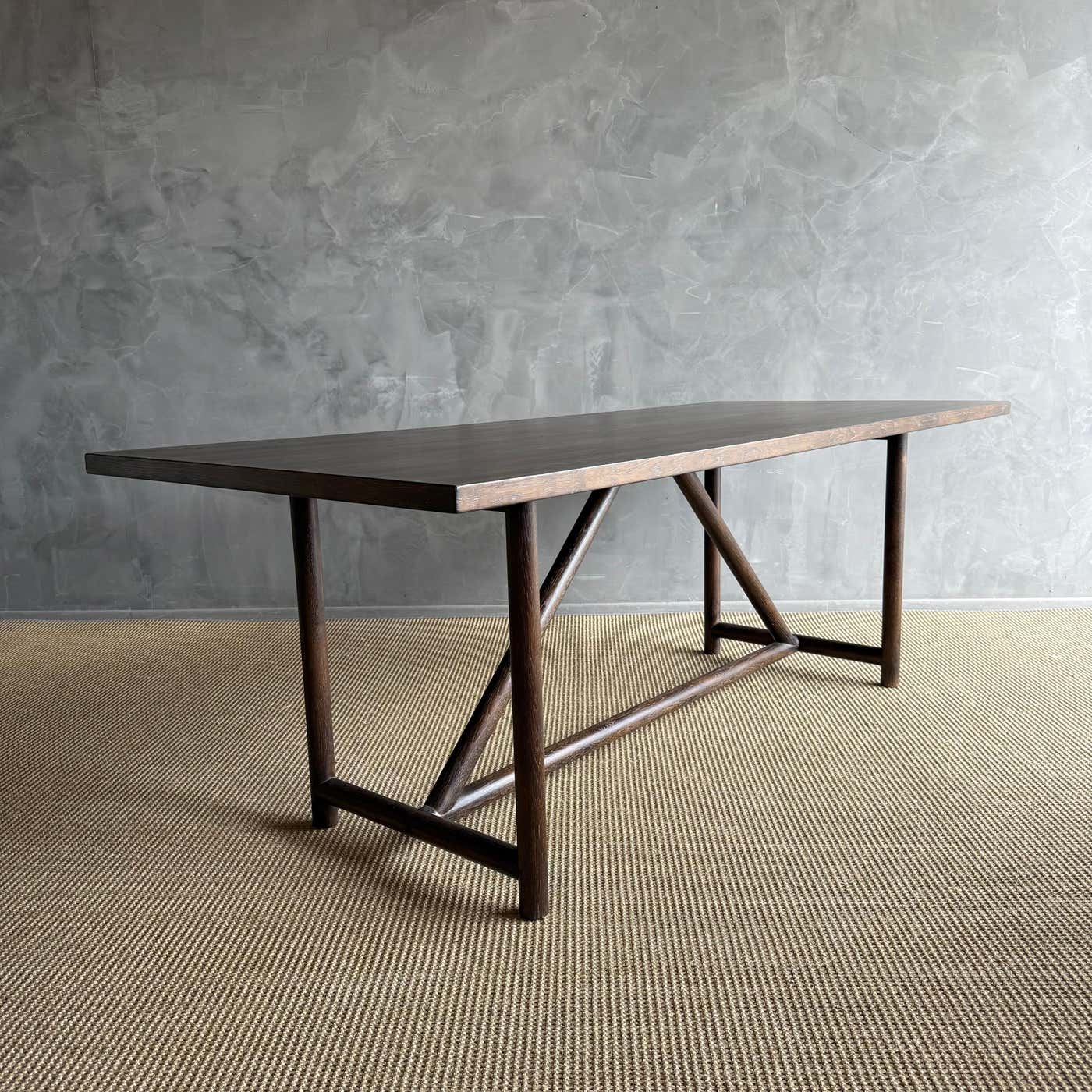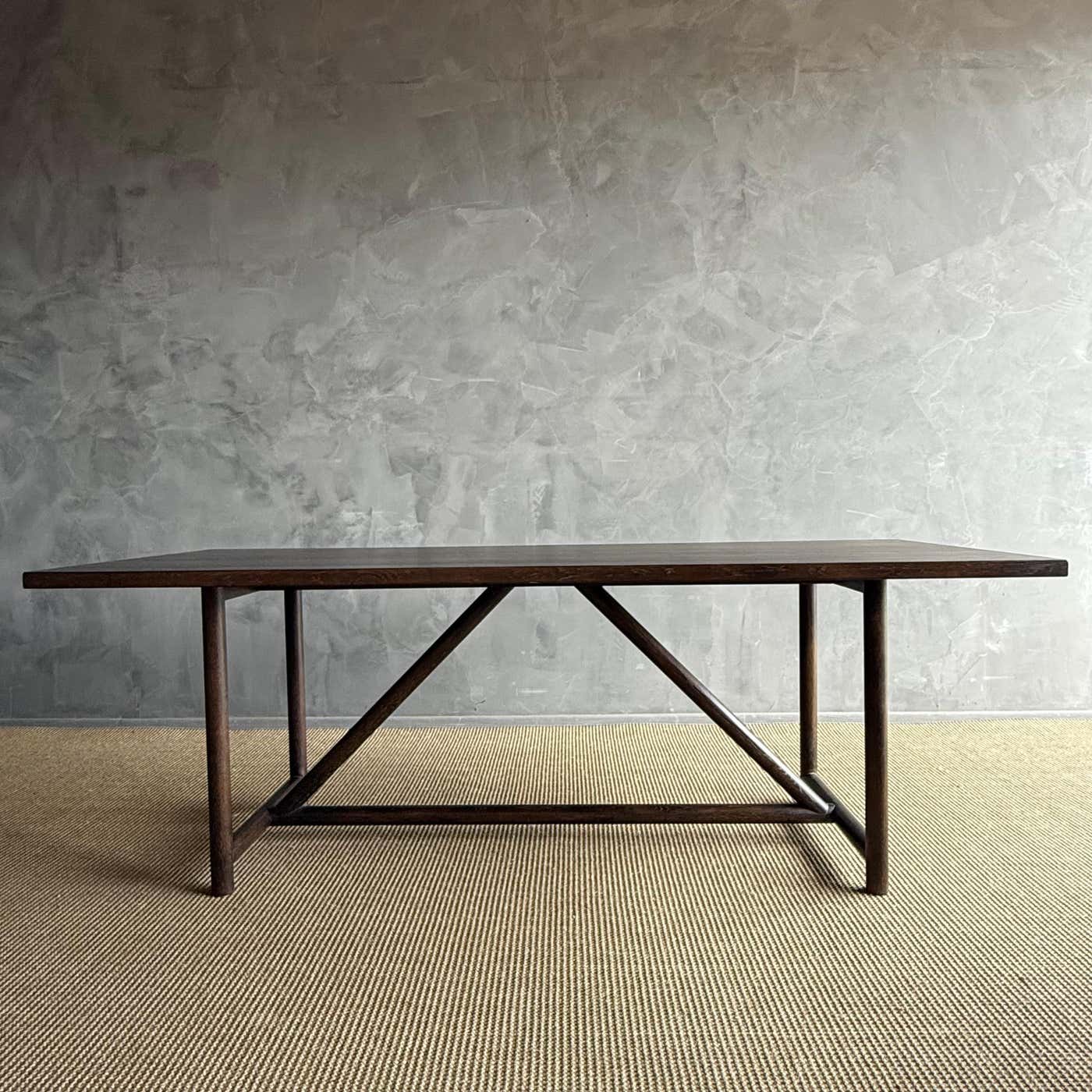 Introducing the modern Oak Dining Table, designed with clean lines and a stunning wire brush finish for a contemporary touch. Crafted with solid oak legs for durability and stability, this table comfortably seats up to 6 people, making it ideal for cozy gatherings or family meals.