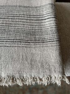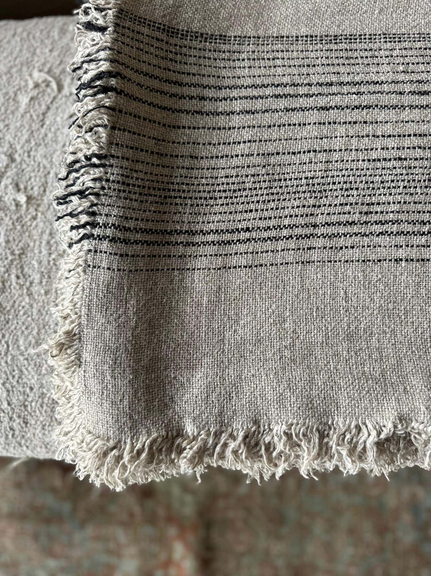 Naturel linen flax thick woven natural and black with fringe edges.