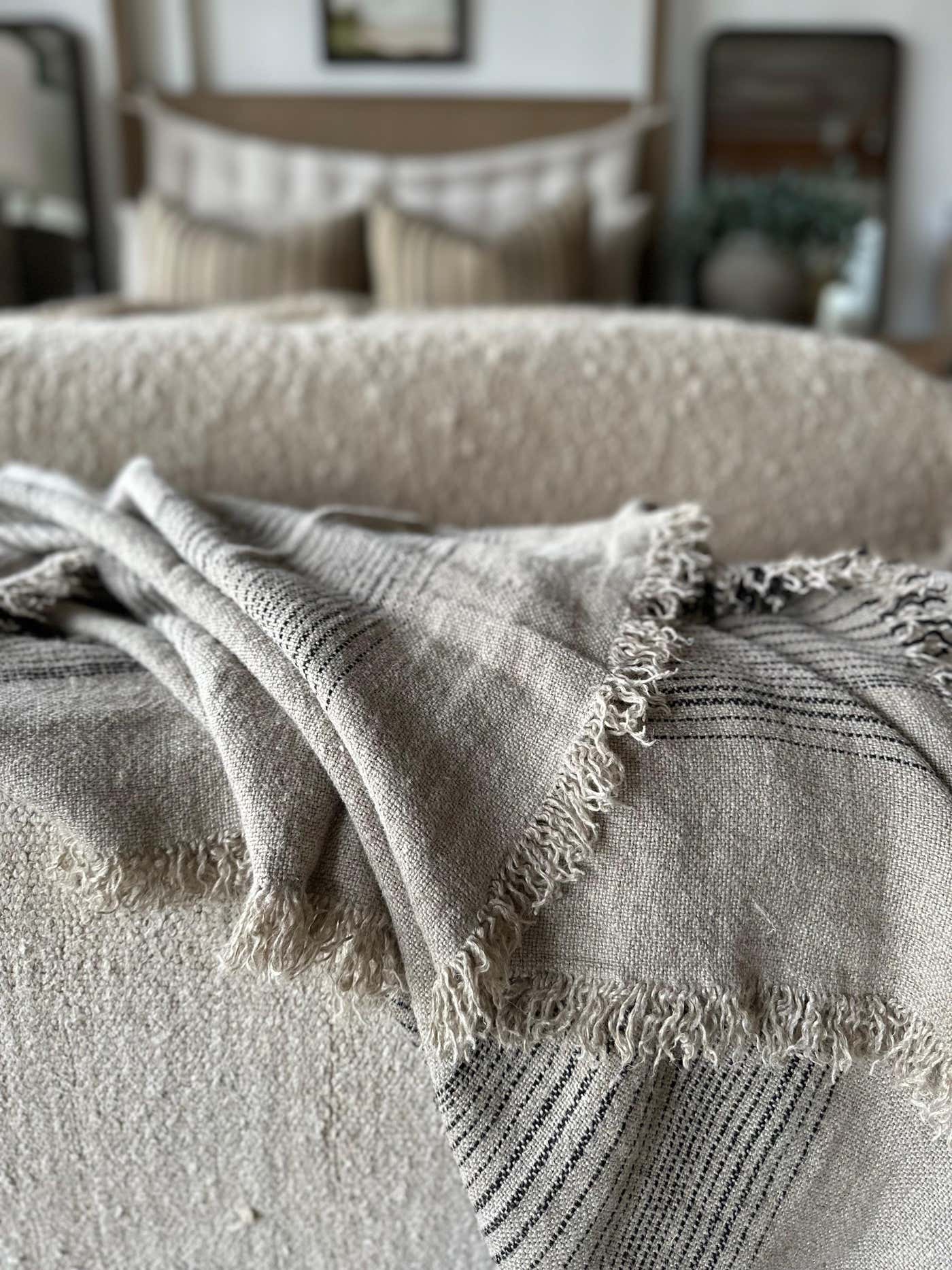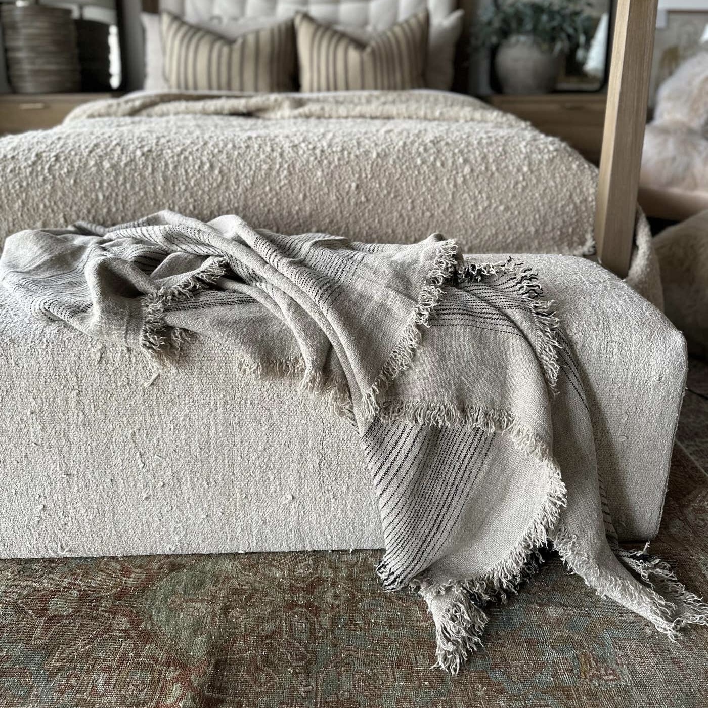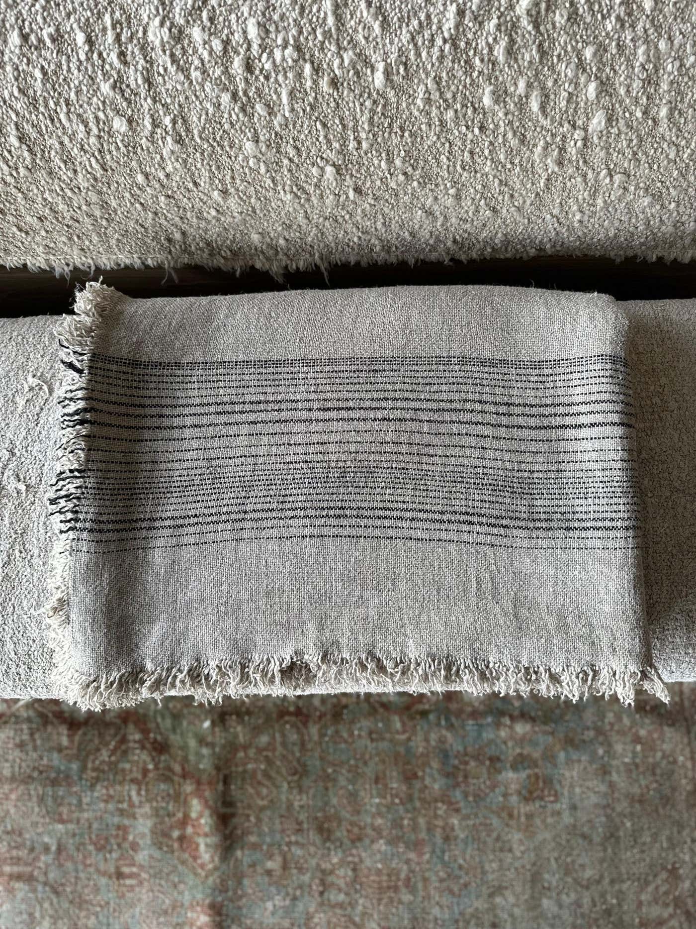 French Flax Linen Throw with Stripes - Bloom Home Inc