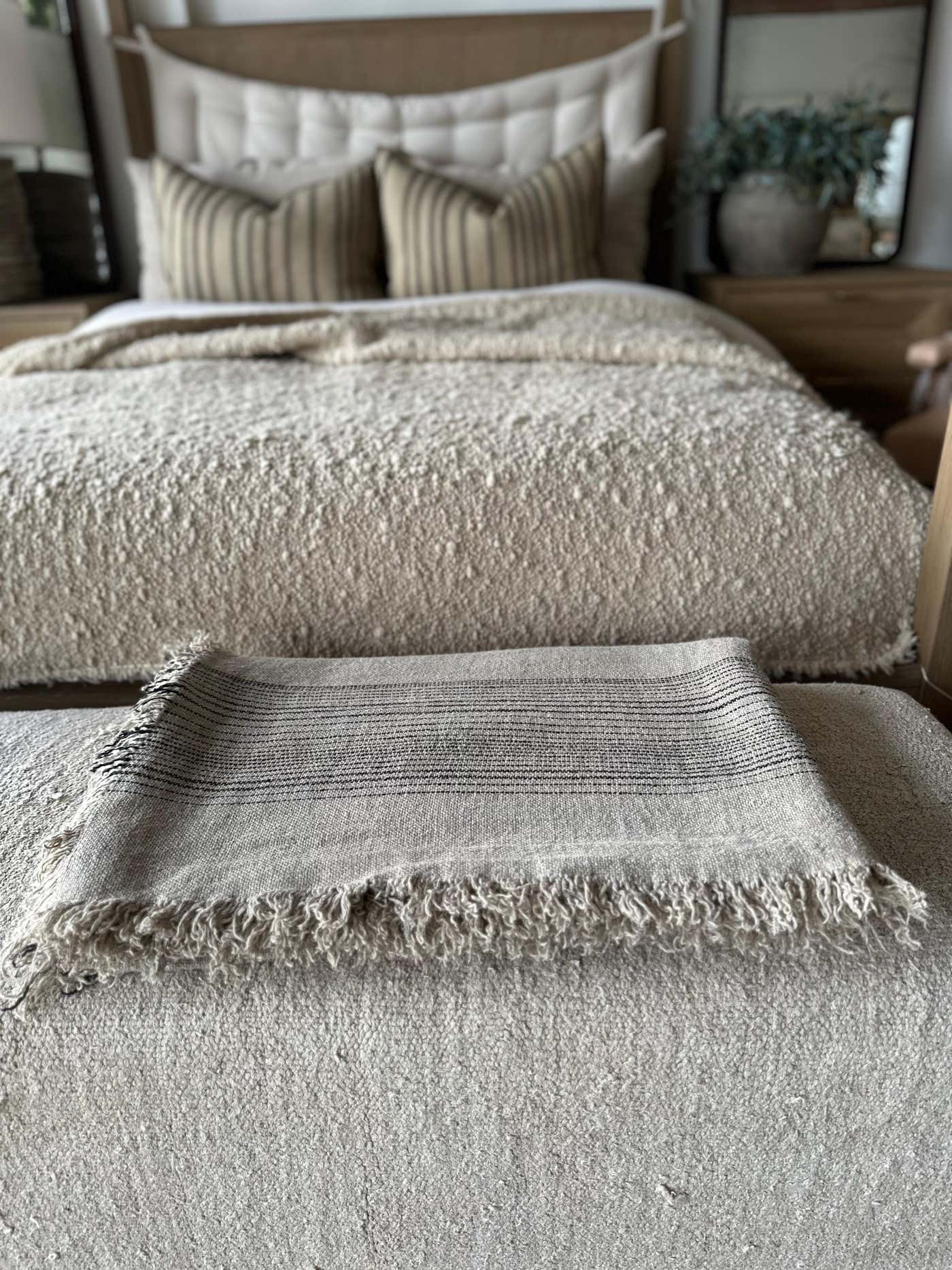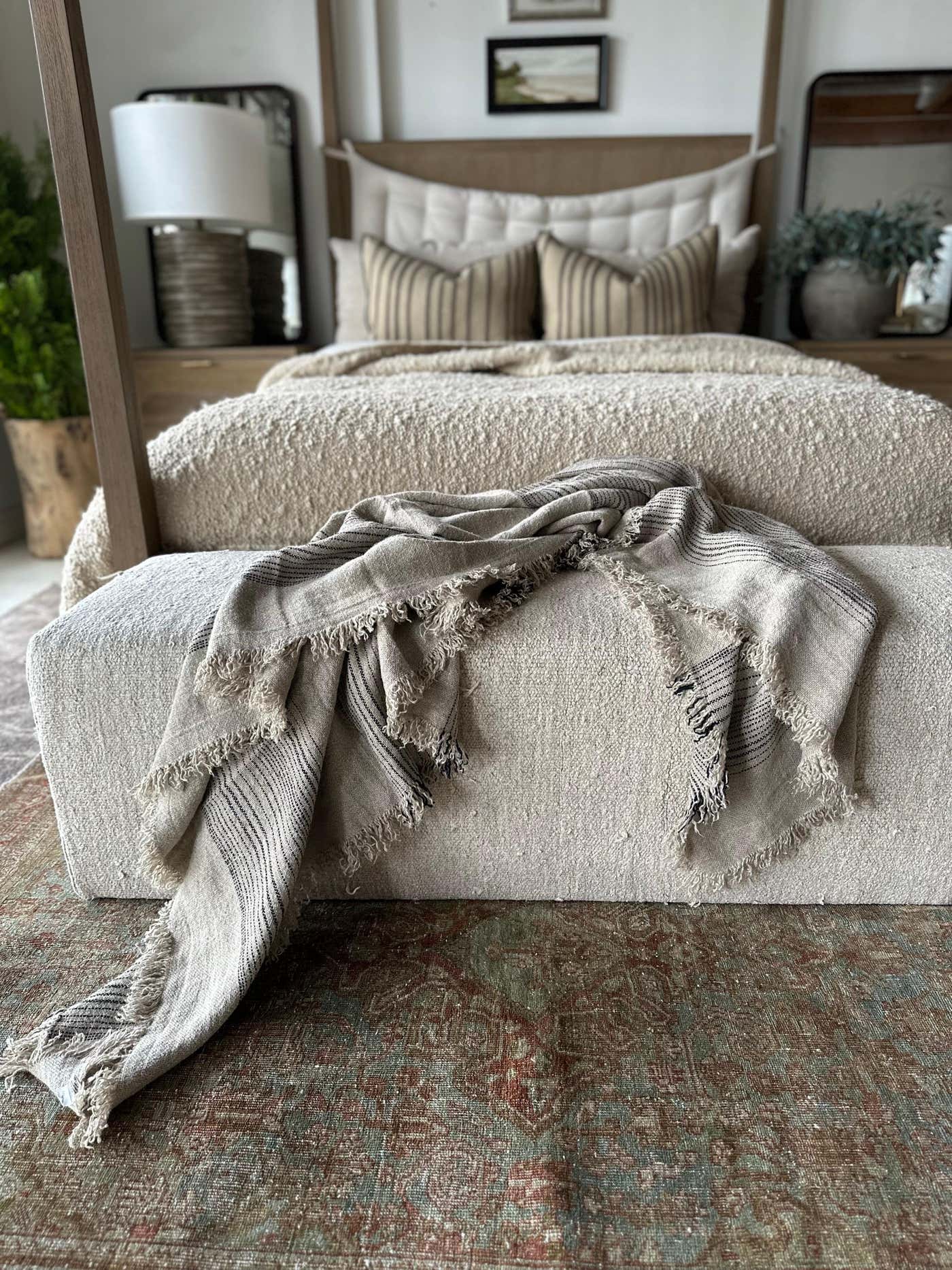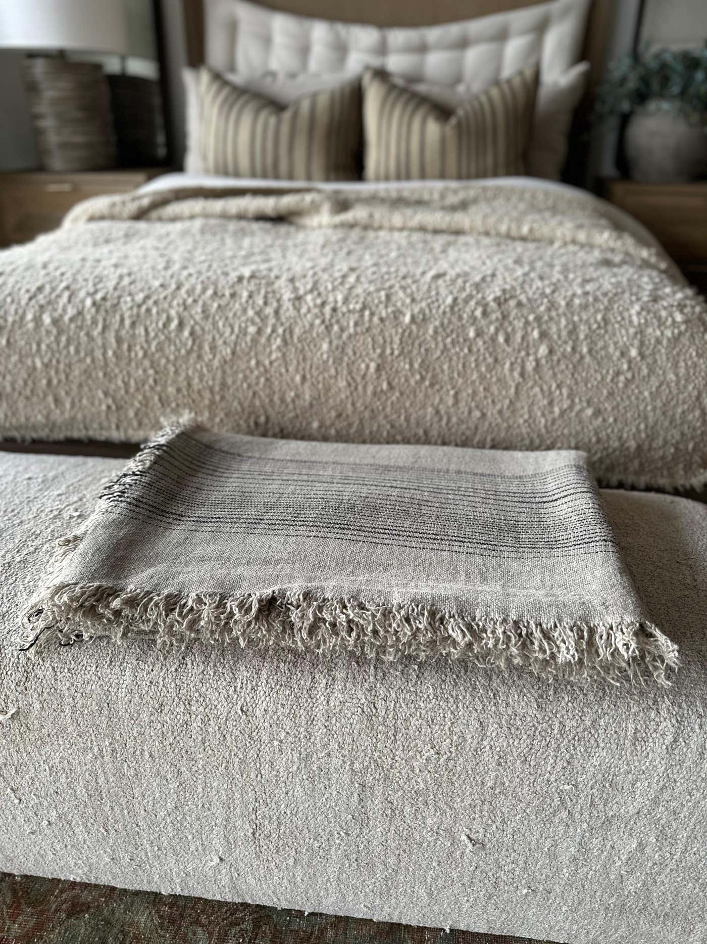 French Flax Linen Throw with Stripes - Bloom Home Inc