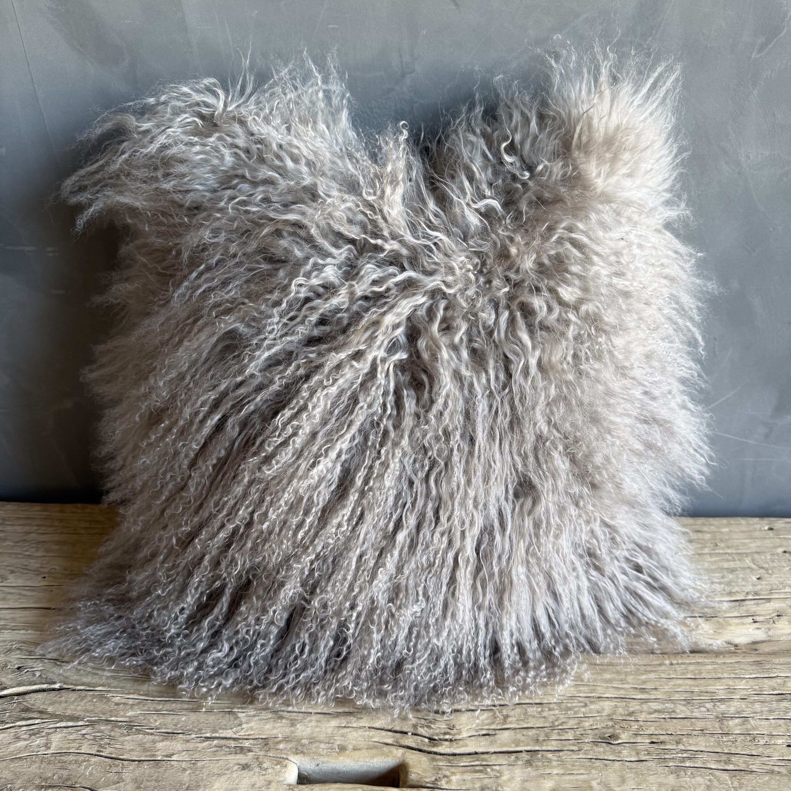 Genuine Sheep Long Hair Pillow in Taupe