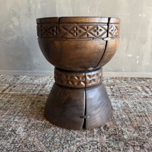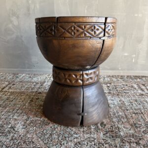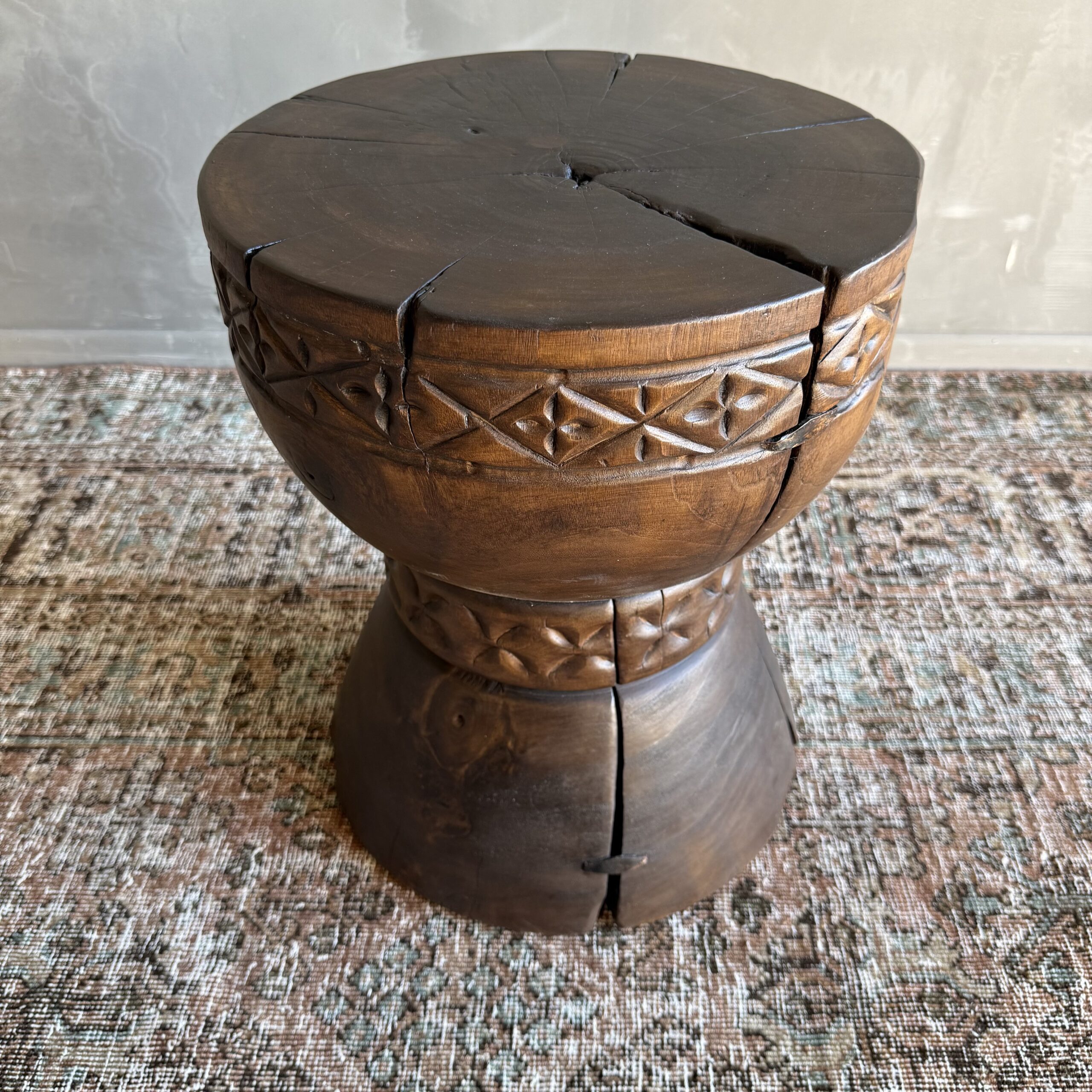 Hilo Carved Walnut Stump Table -Walnut - Bloom Home Inc