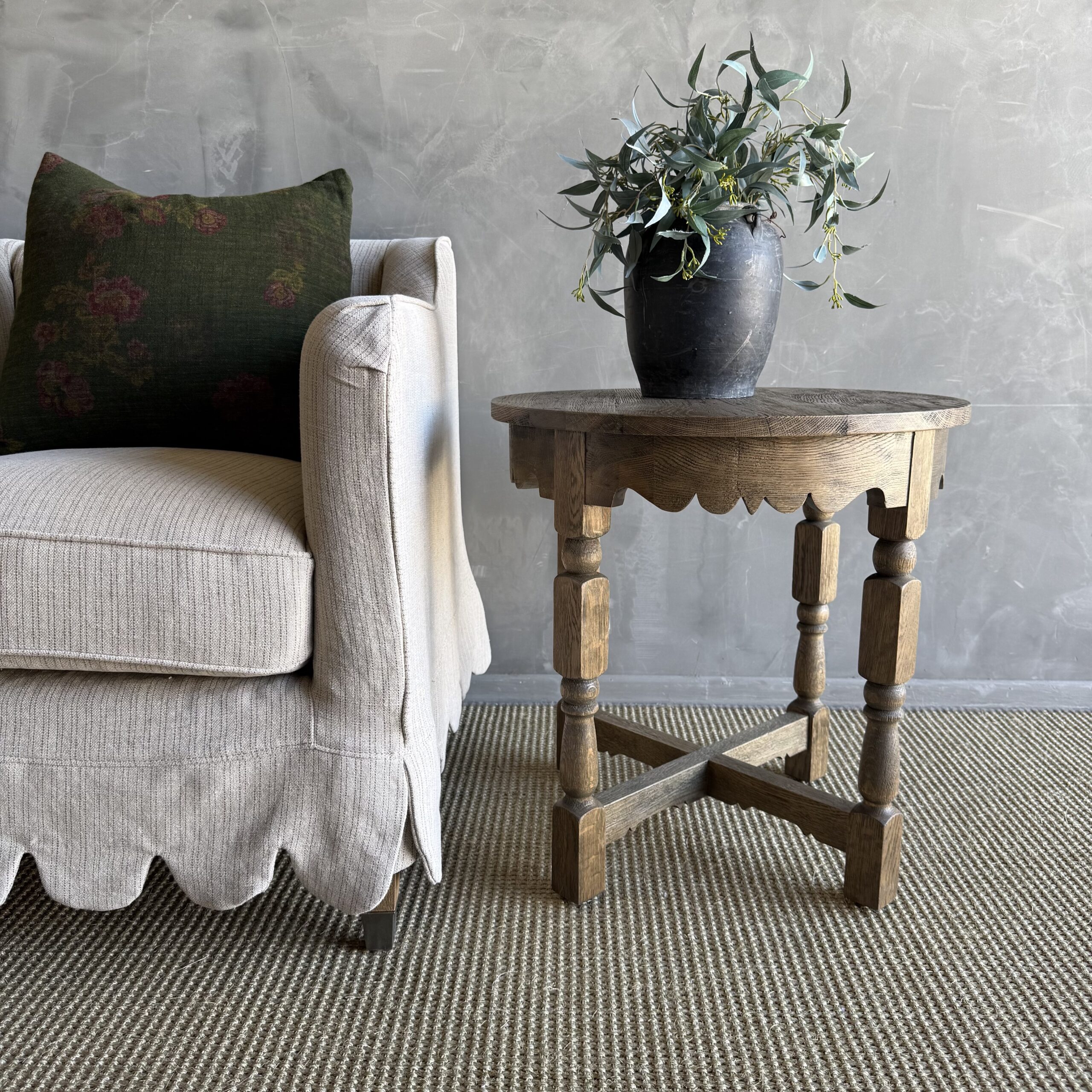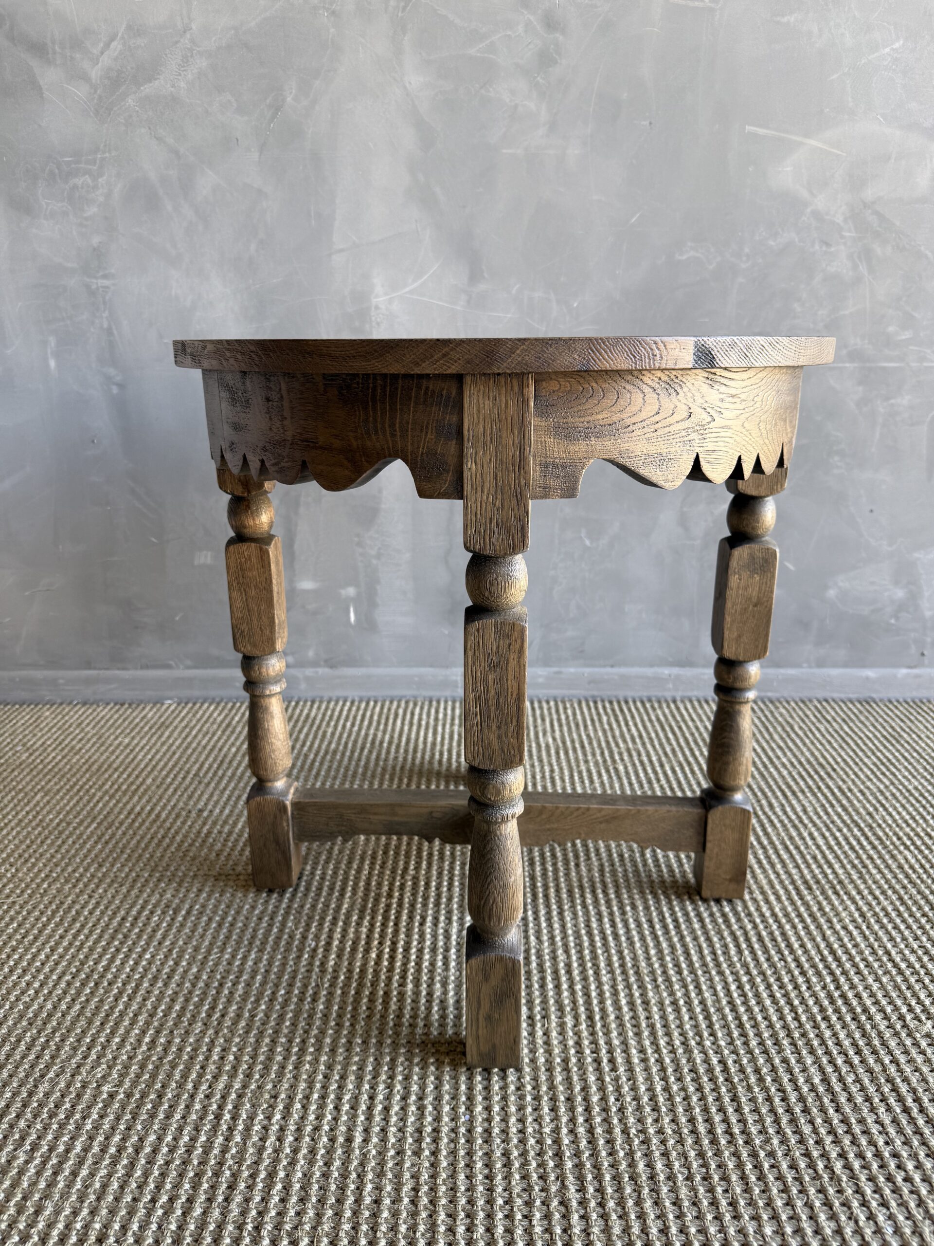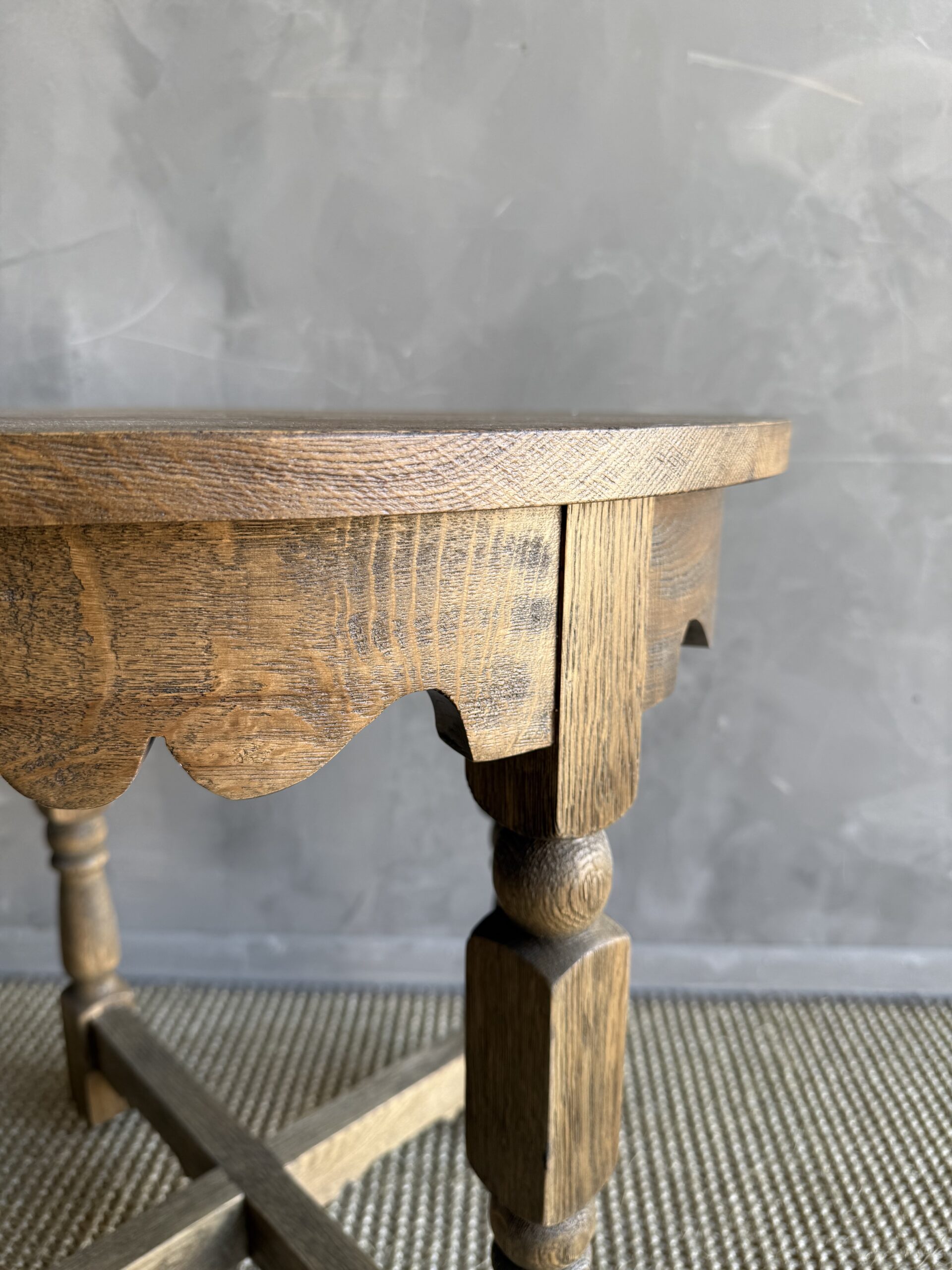 The Hollins Side Table is a timeless antique reproduction inspired by classic European craftsmanship. Handcrafted from solid white oak, this elegant piece showcases beautifully carved apron and turned legs.