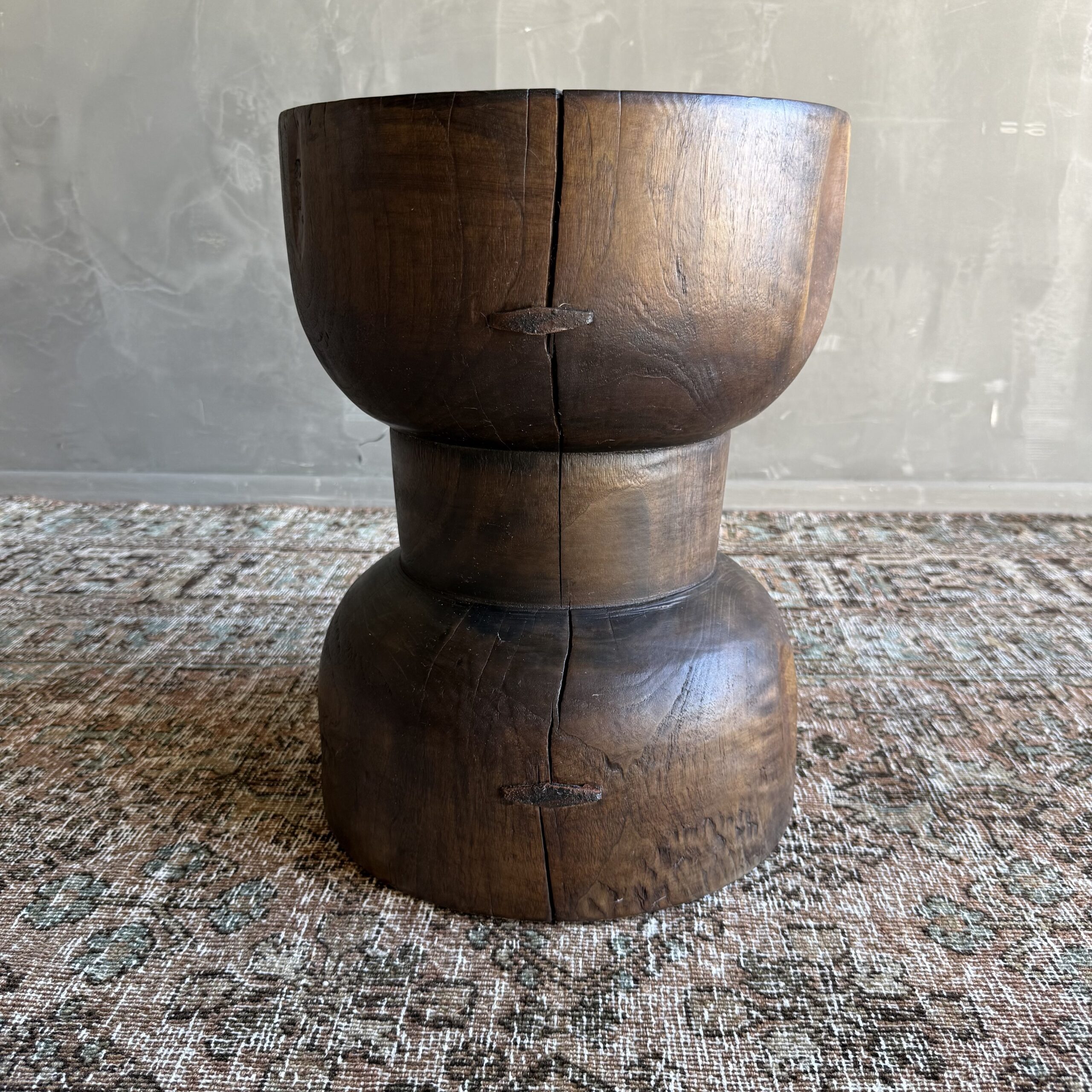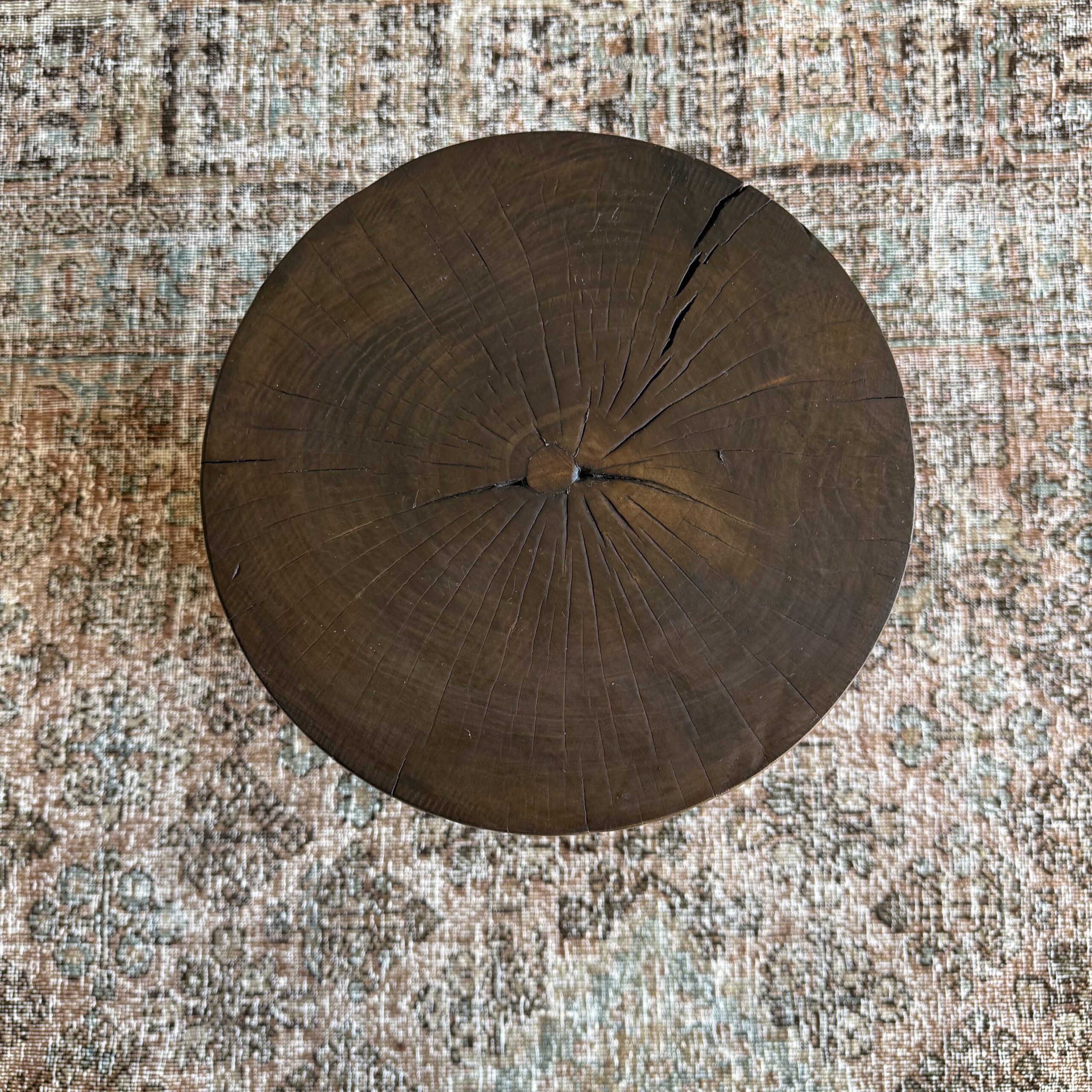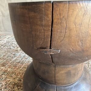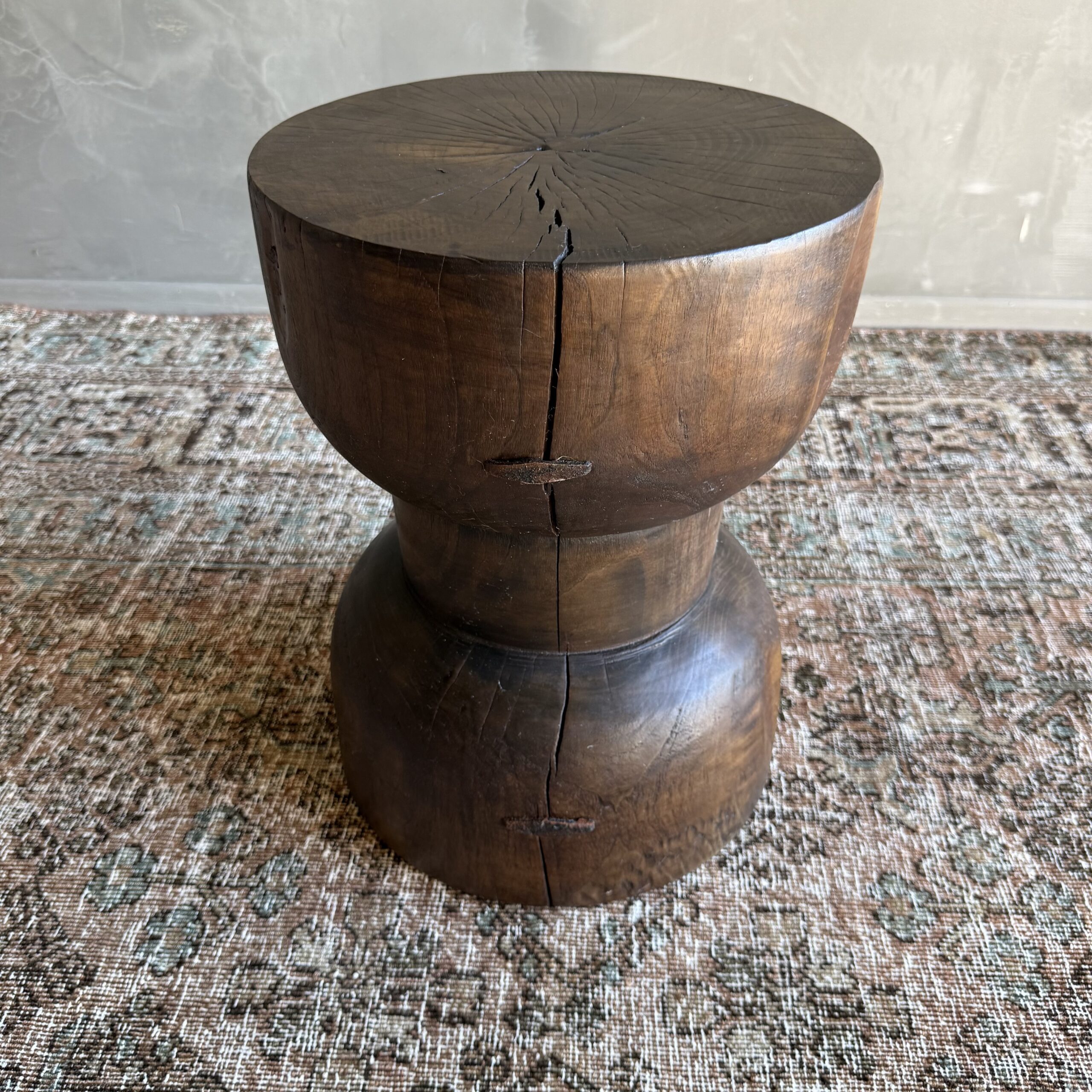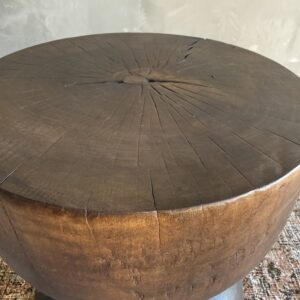 This stunning reclaimed wood stump table, crafted from rich walnut, features a unique hourglass shape that adds an artistic flair to any space. Its organic form showcases the natural beauty of the wood, with varying tones of deep browns and warm hues that highlight the tree’s original grain and texture. Each table is a one-of-a-kind piece, preserving the character and imperfections that tell a story of its history. Perfect as a statement piece in your living room or as an elegant accent in a hallway, this table combines rustic charm with modern design, making it a versatile addition to both contemporary and traditional interiors. Ideal for those who appreciate sustainable furniture, this table not only stands out visually but also embodies an eco-friendly ethos.