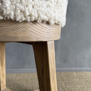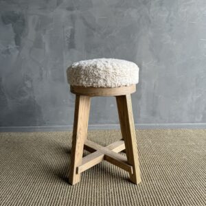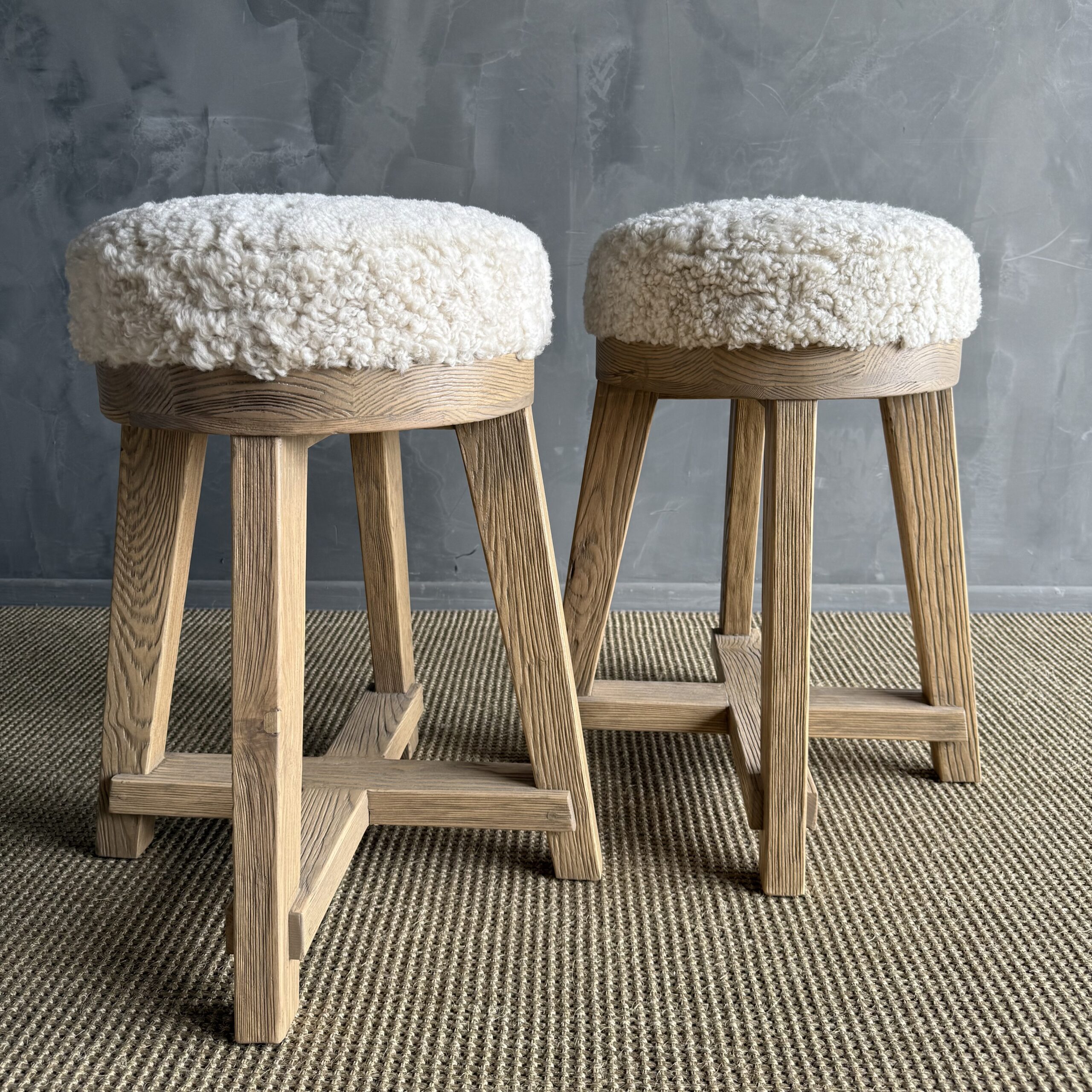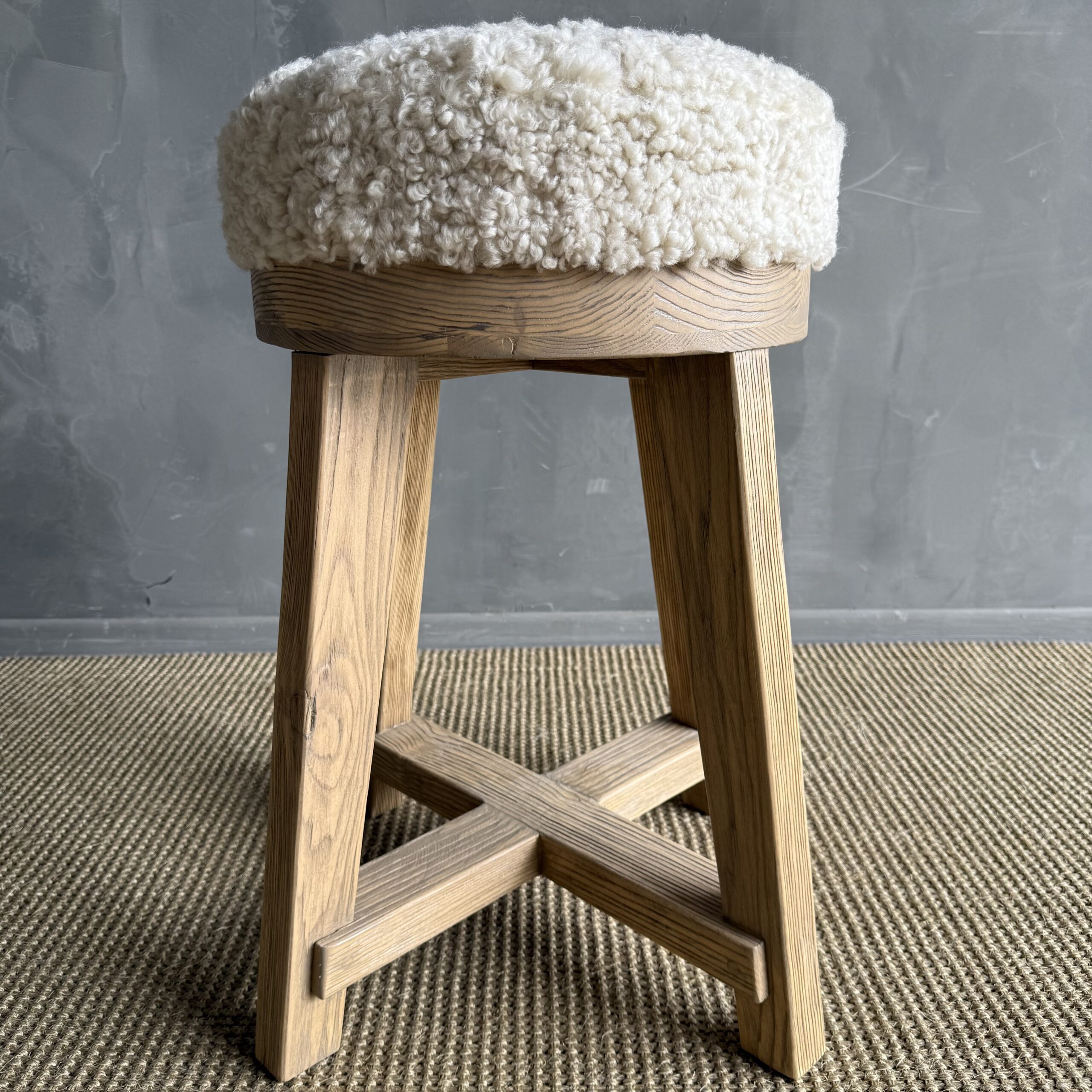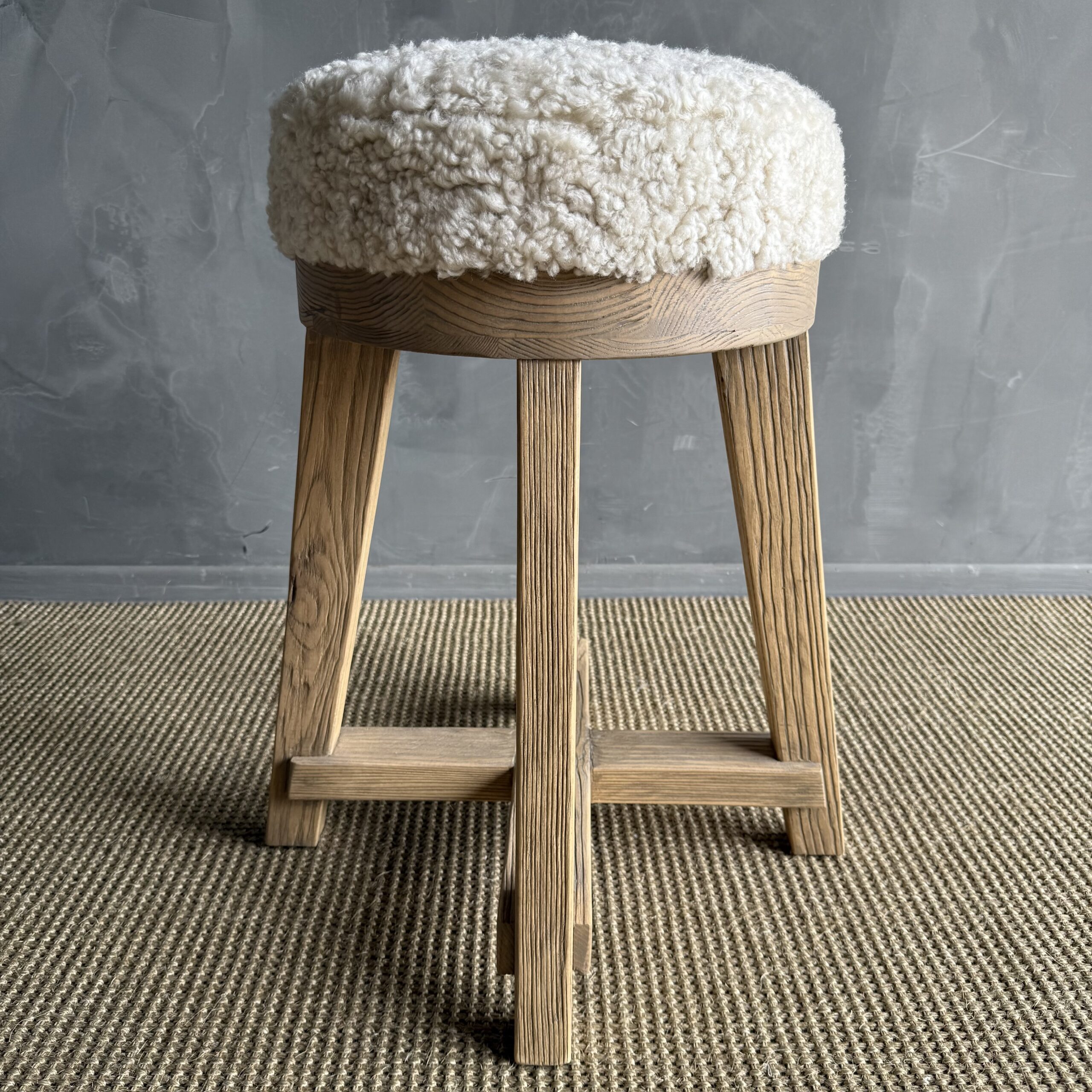 Jasper Counter Stool Made from reclaimed elm wood timbers, this counter stool has a unique vintage feel. Upholstered in 100% lambs sheep, we also offer C.O.M. & our Libeco Linen colors in oyster white, oatmeal and vintage flax. Finish: Natural