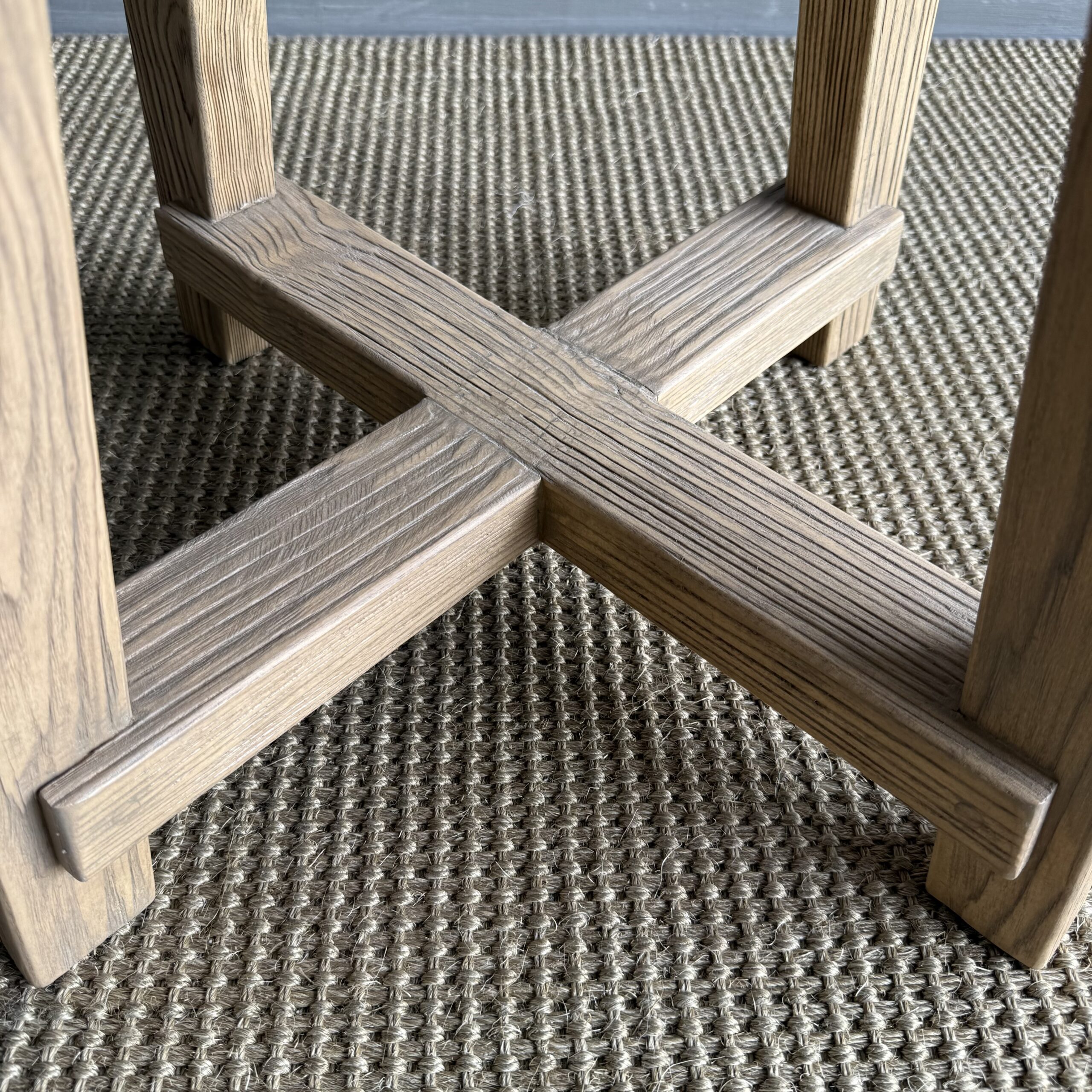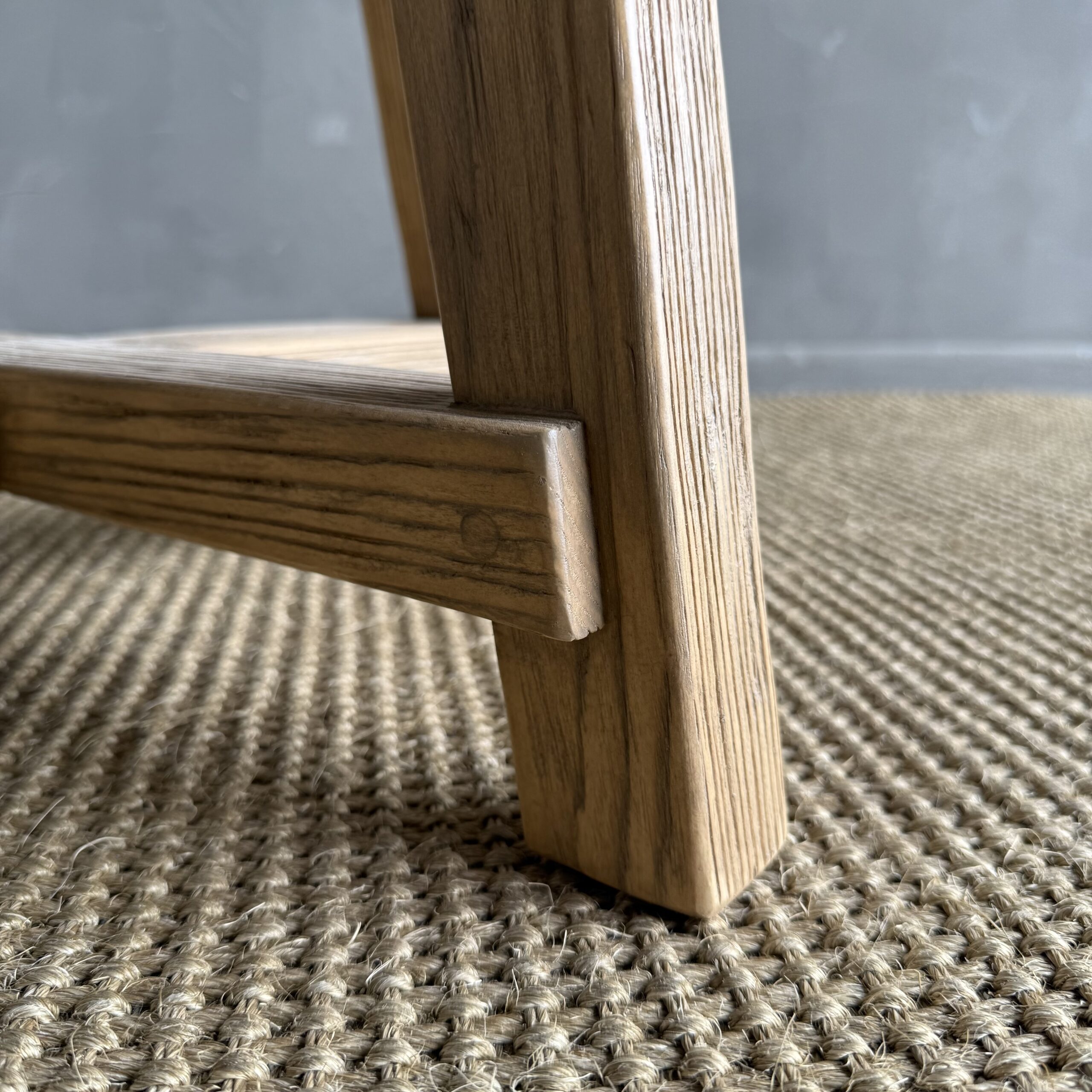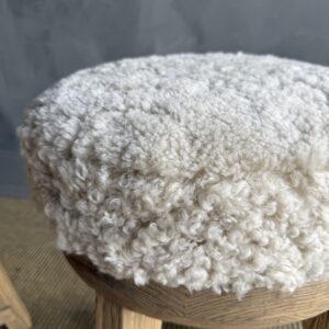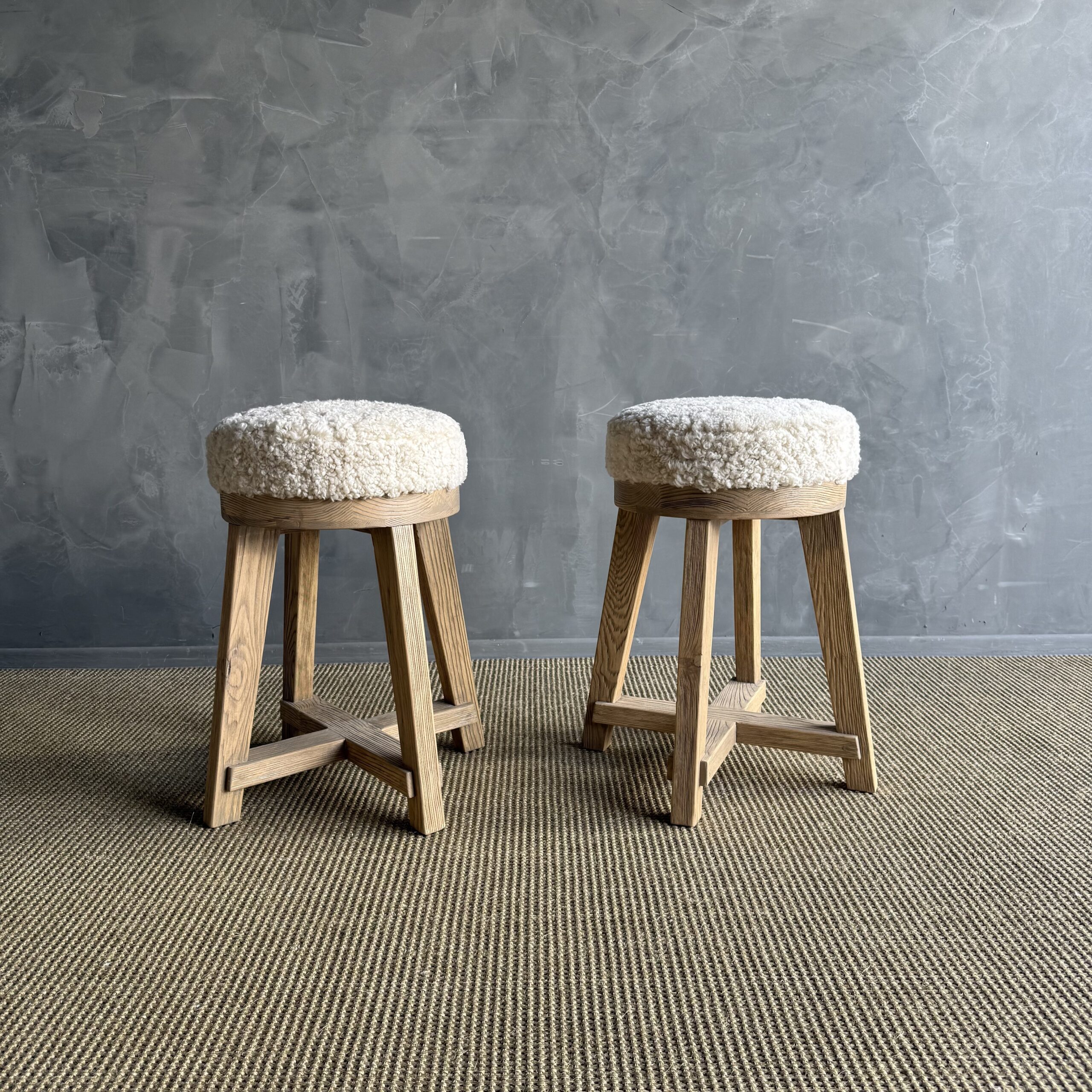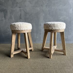 Jasper Counter Stool Made from reclaimed elm wood timbers, this counter stool has a unique vintage feel. Upholstered in 100% lambs sheep, we also offer C.O.M. & our Libeco Linen colors in oyster white, oatmeal and vintage flax. Finish: Natural