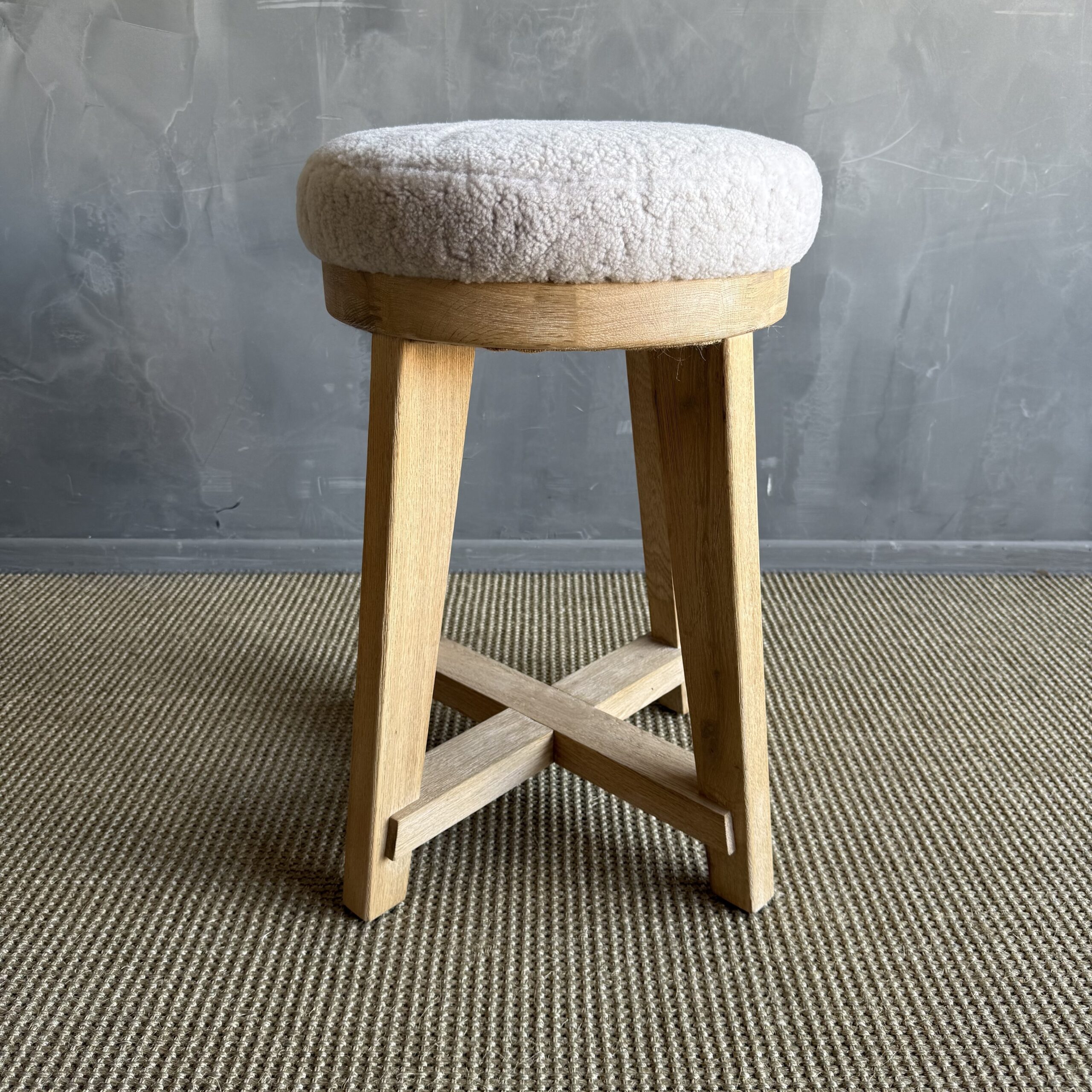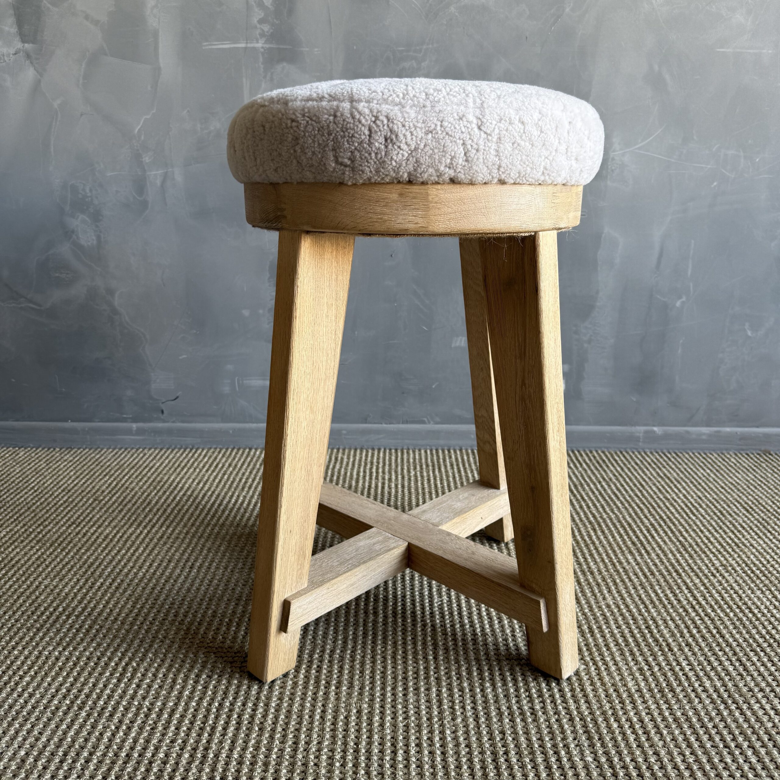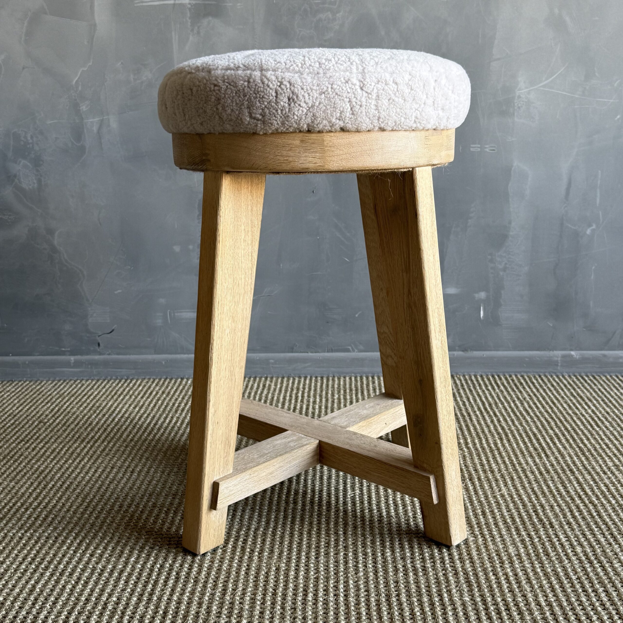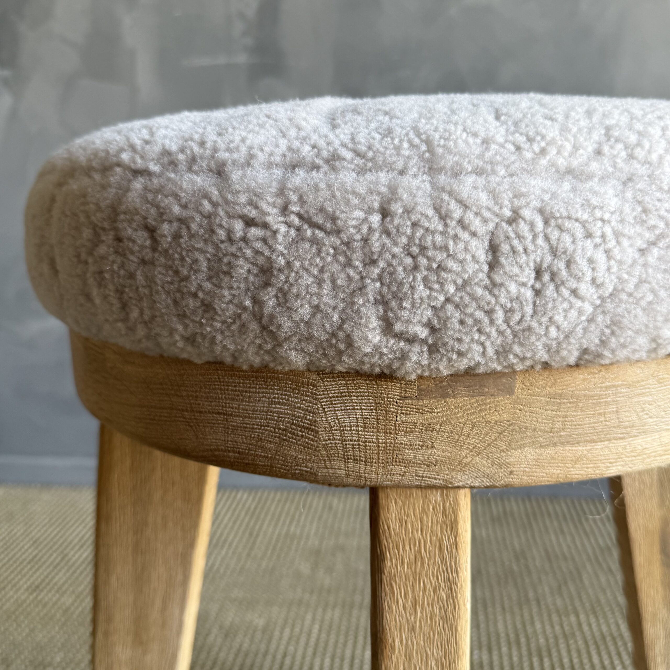 The Jasper Stool is a perfect blend of natural materials and modern functionality. Crafted from solid white oak, its sturdy frame is complemented by a swivel seat upholstered in 100% genuine shearling in a natural tone. Soft, plush, and luxuriously tactile, the shearling adds warmth and texture, while each seat varies subtly in shade and texture, making every stool uniquely one of a kind. Stylish, versatile, and comfortable, the Jasper Stool brings organic charm and thoughtful design to any space.