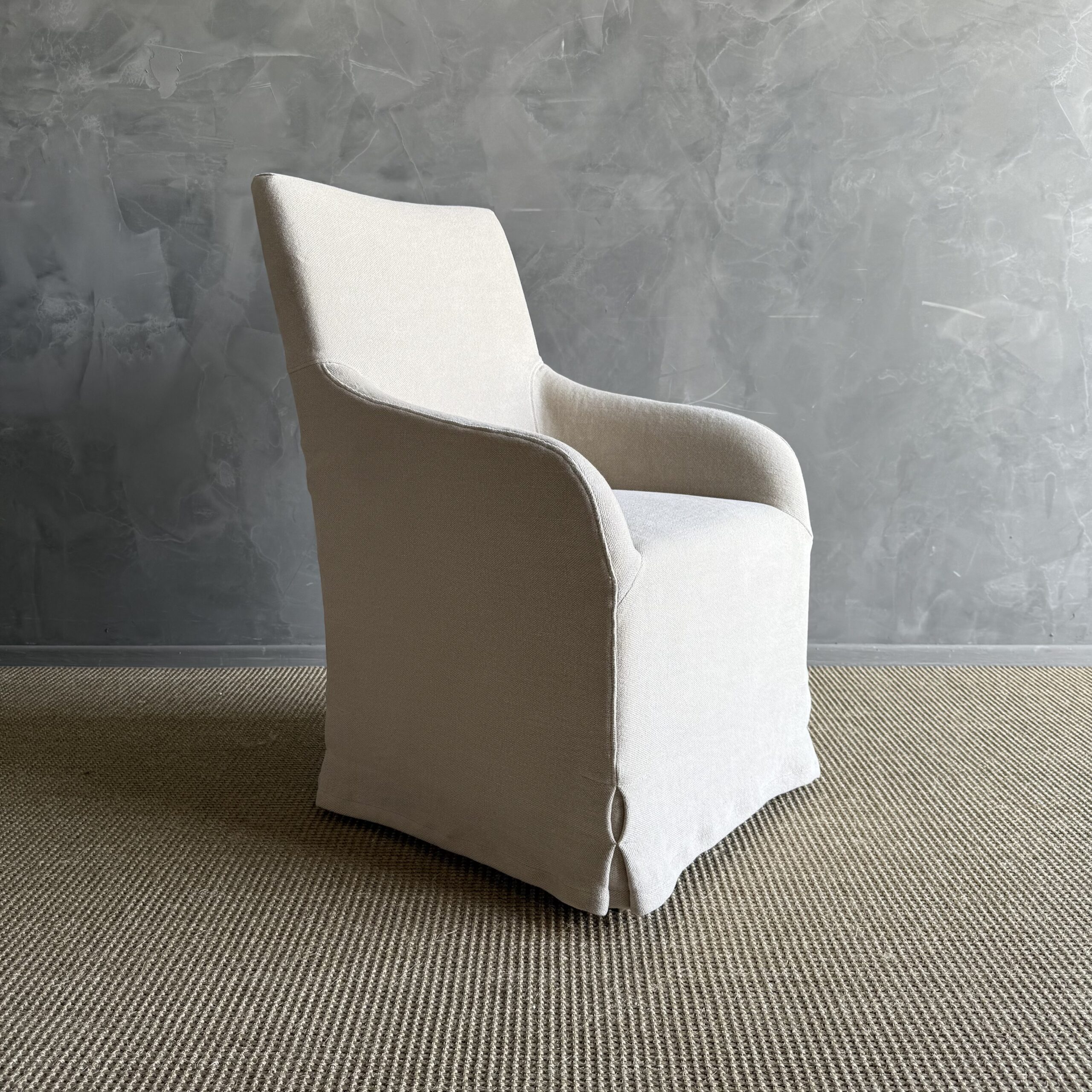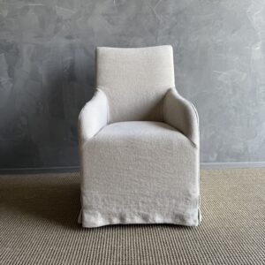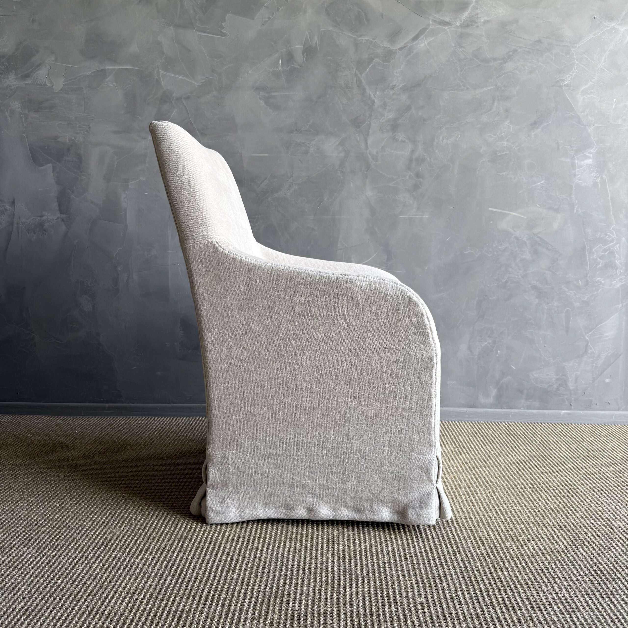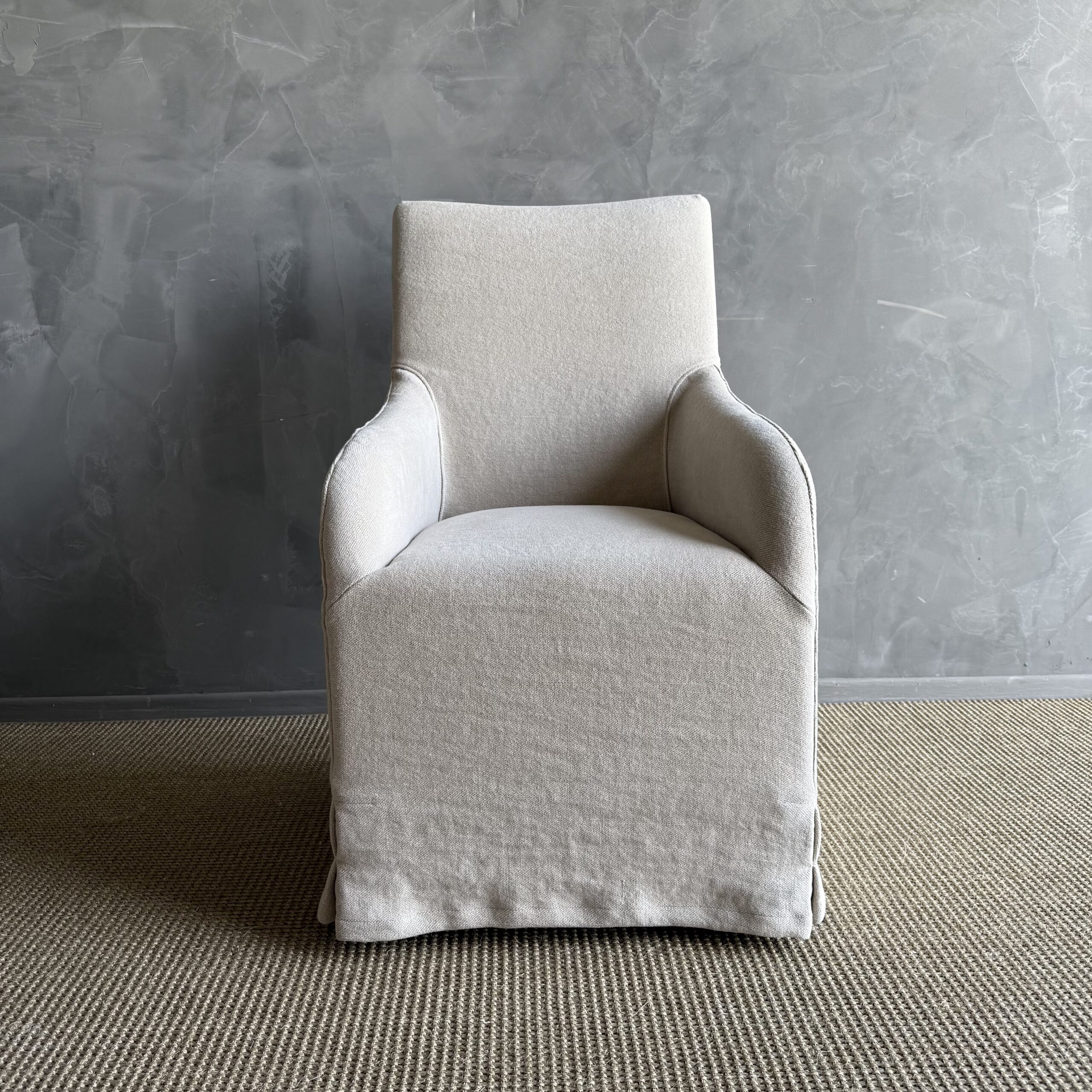 Introducing the Jess Dining Chair, slip-covered in heavy stone-washed Hemp for a relaxed, natural look. With white oak legs, this chair not only adds a touch of elegance but also provides durability. The Jess Dining Chair is designed to offer exceptional comfort, making it ideal for extended sitting periods. For easy maintenance, the slipcover can be spot cleaning or dry cleaning is recommended for best results. Also available in various linen colors, simply inquire for options to match your style and decor. Elevate your dining experience with the Jess Dining Chair – a perfect blend of style, comfort, and practicality. Comes with the Oak leg & Antique Brass and rubber caster wheel, can be locked into a stationary position by turning the knob. These legs can be switched out easily.