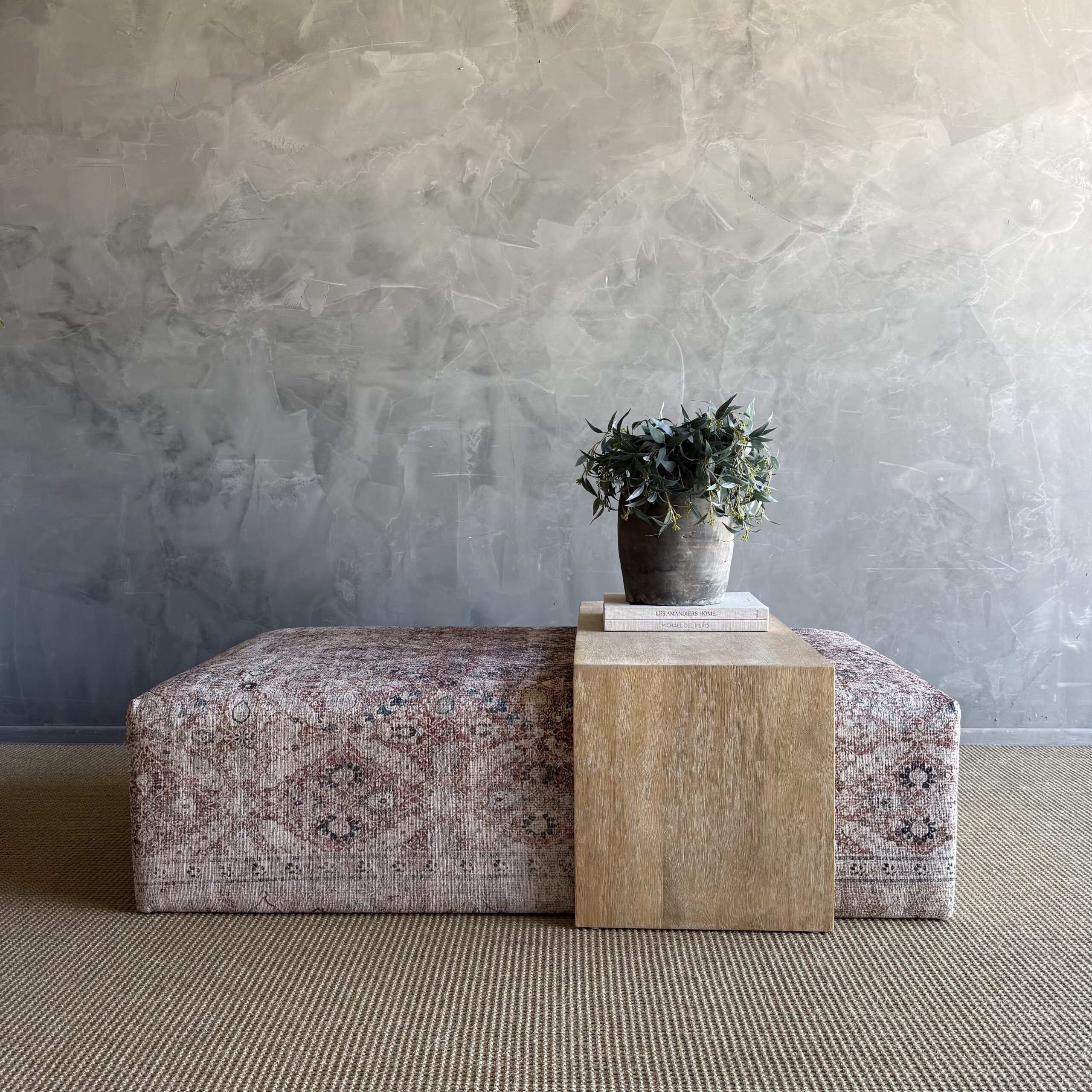 Because the textile has a vintage look, each piece is completely one of a kind—no two will be exactly the same. The white oak will also vary naturally in color and grain, making every ottoman feel unique, warm, and collected.