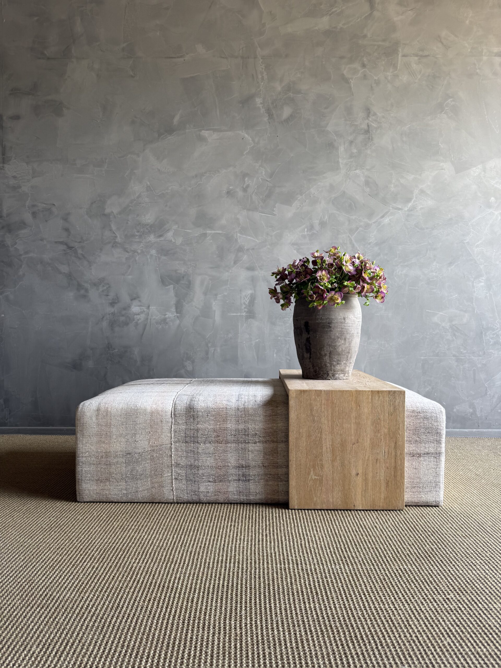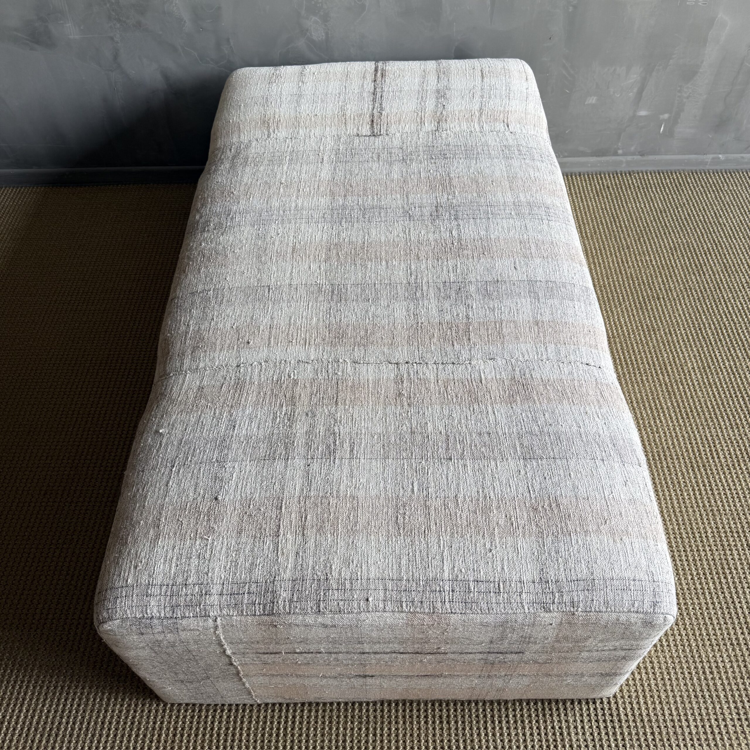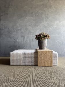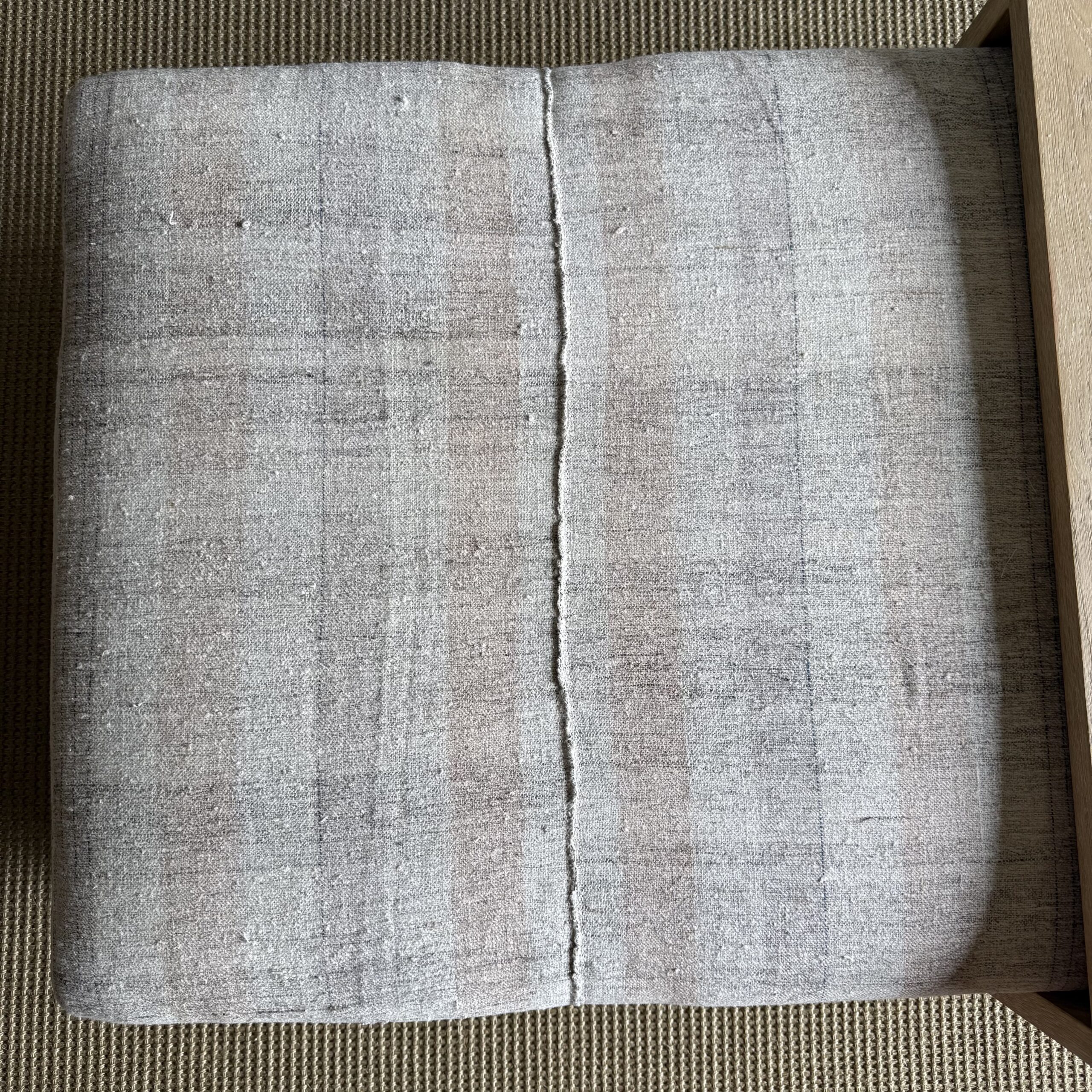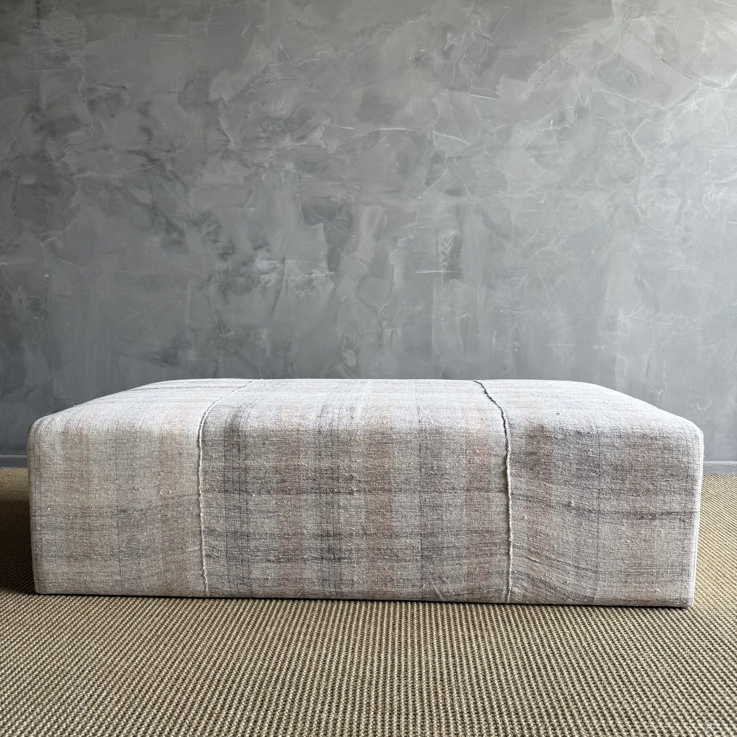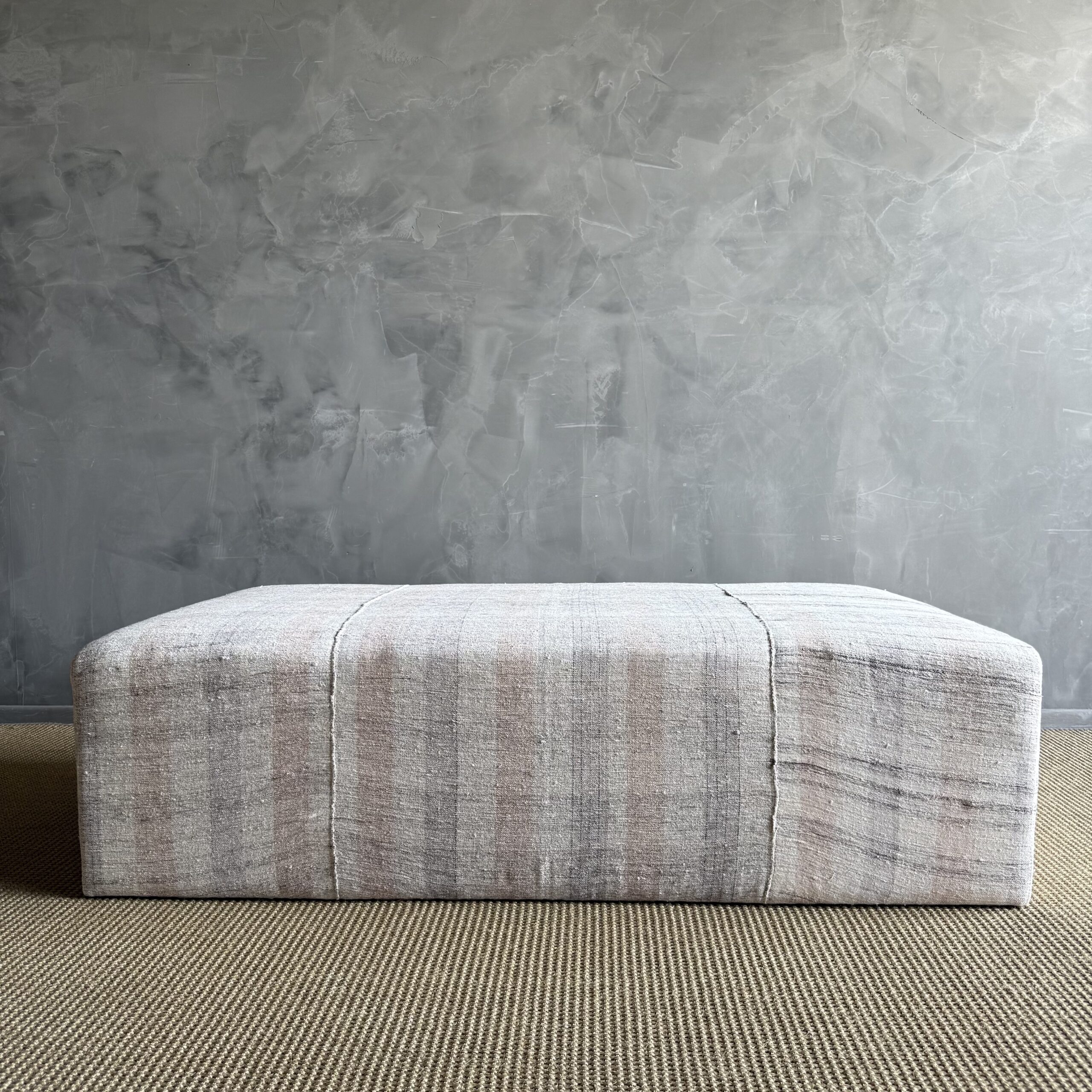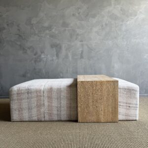 Because the textile is vintage, each piece is completely one of a kind—no two will be exactly the same. The white oak will also vary naturally in color and grain, making every ottoman feel unique, warm, and collected.