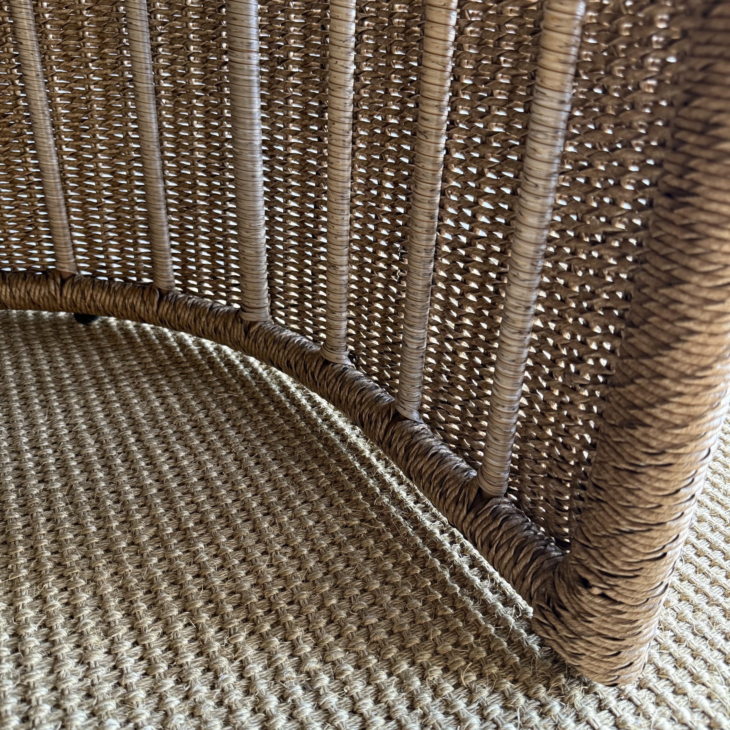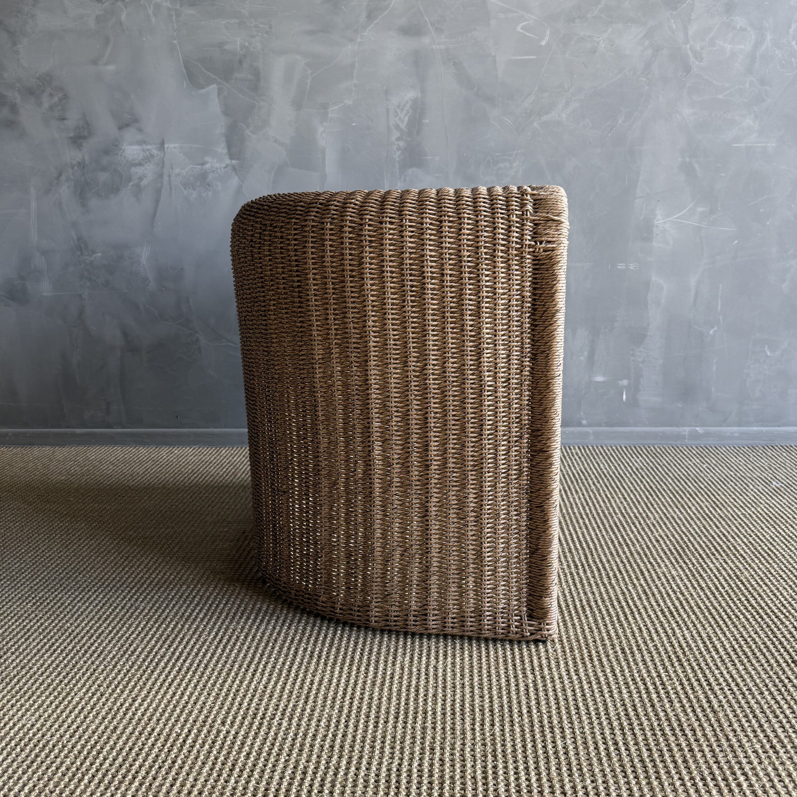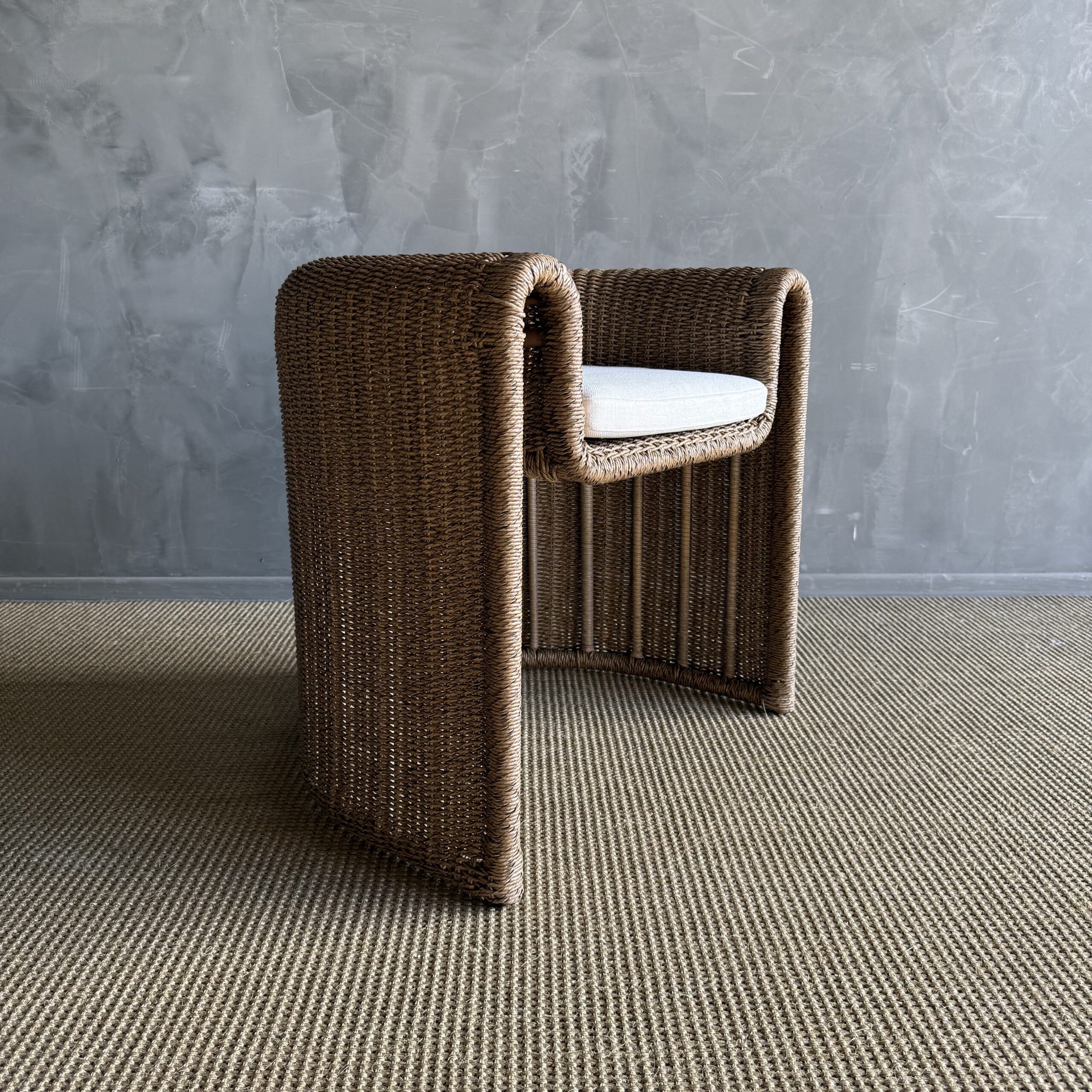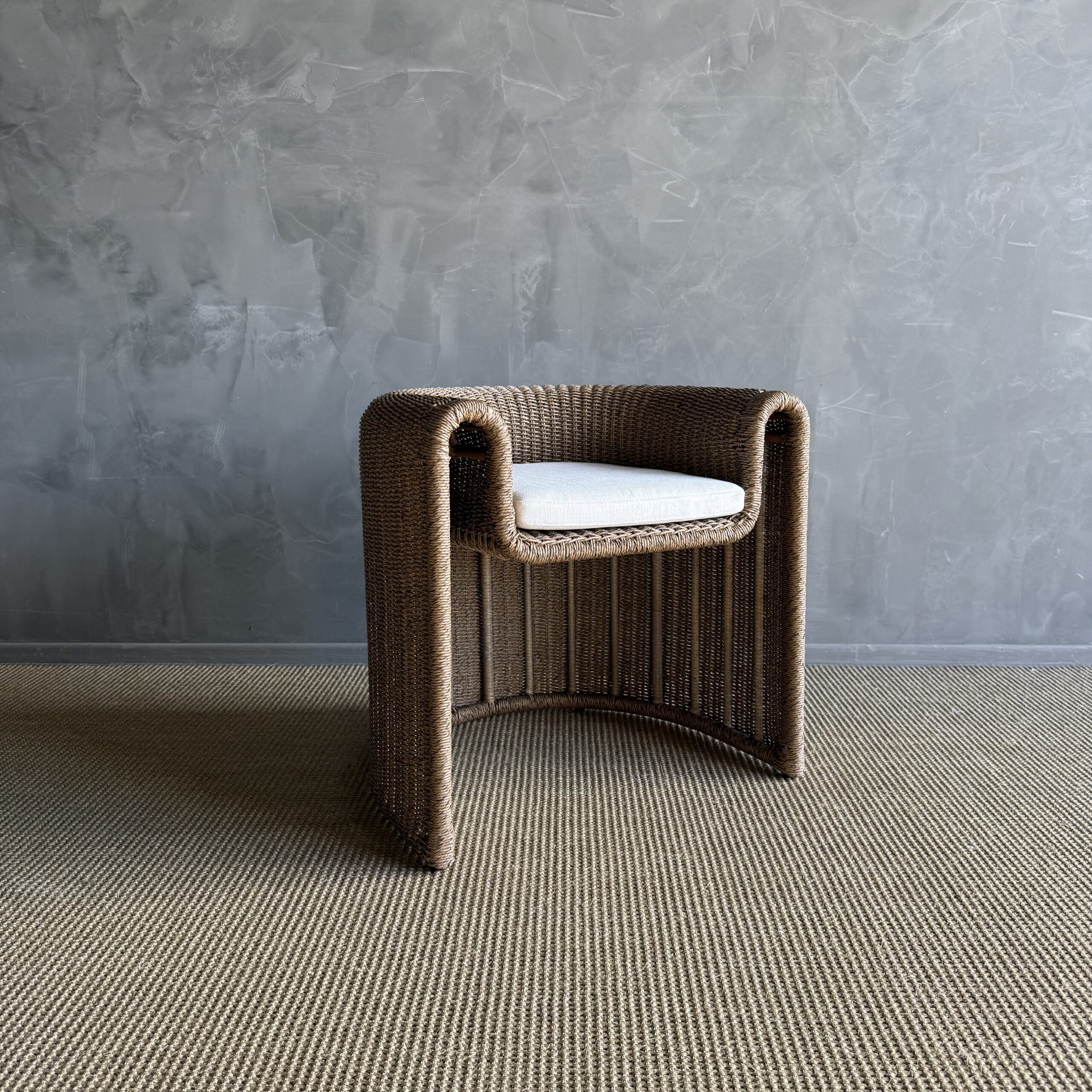 This outdoor woven rope dining chair combines comfort and style in a beautifully rounded design, perfect for enhancing your outdoor dining experience. The chair features a sturdy yet lightweight frame expertly crafted from durable materials, ensuring it withstands the elements while maintaining its elegant appearance. The intricately woven rope adds a touch of texture and sophistication, creating a chic yet relaxed vibe in any patio or garden setting.
