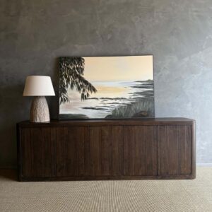 Beautiful curved corners, with push to open hardware, this sleek sideboard is a perfect addition to any room.