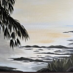 Hand Painted Acrylic on Canvas in a brown oak frame. Ready to hang. A beautiful large painting to accentuate your home.