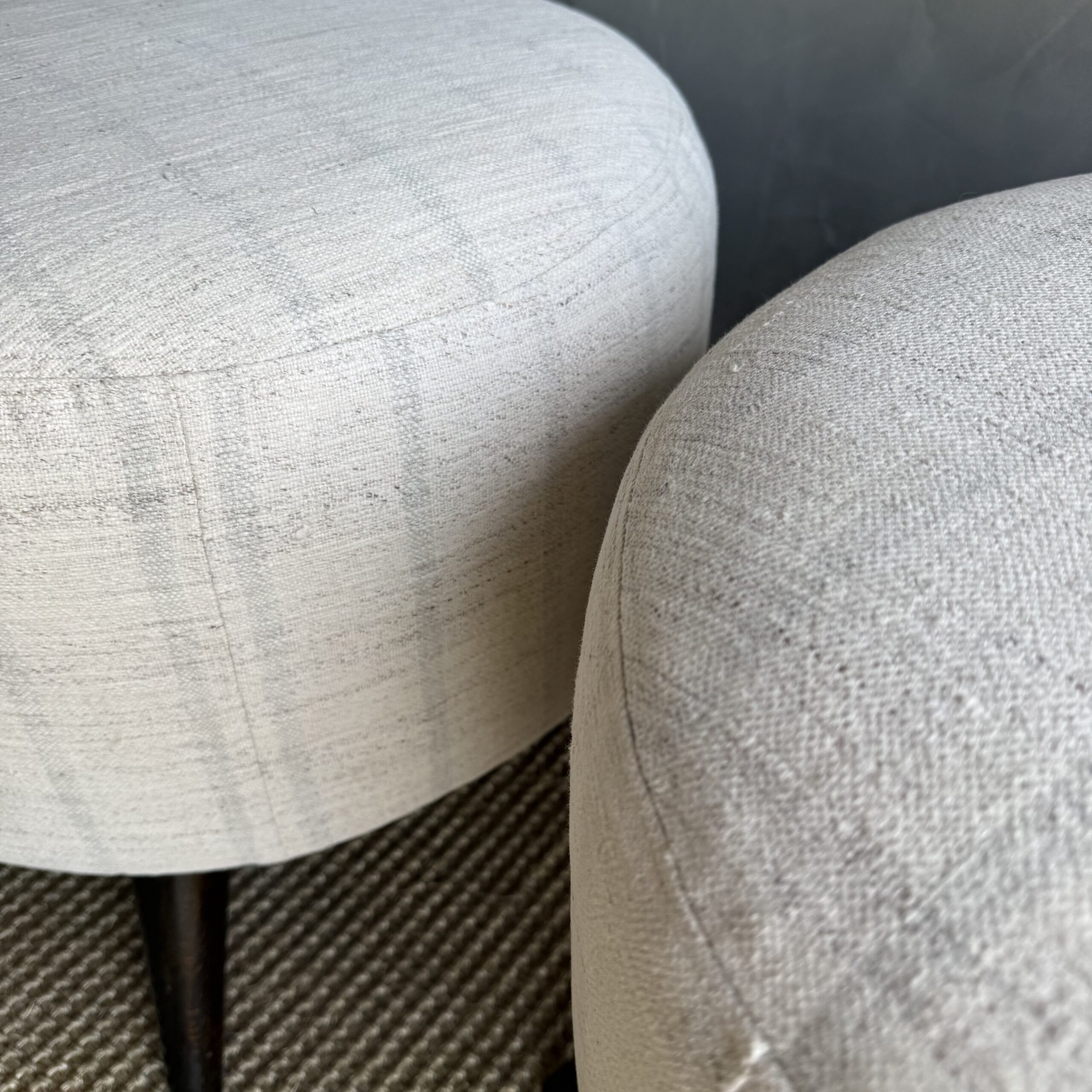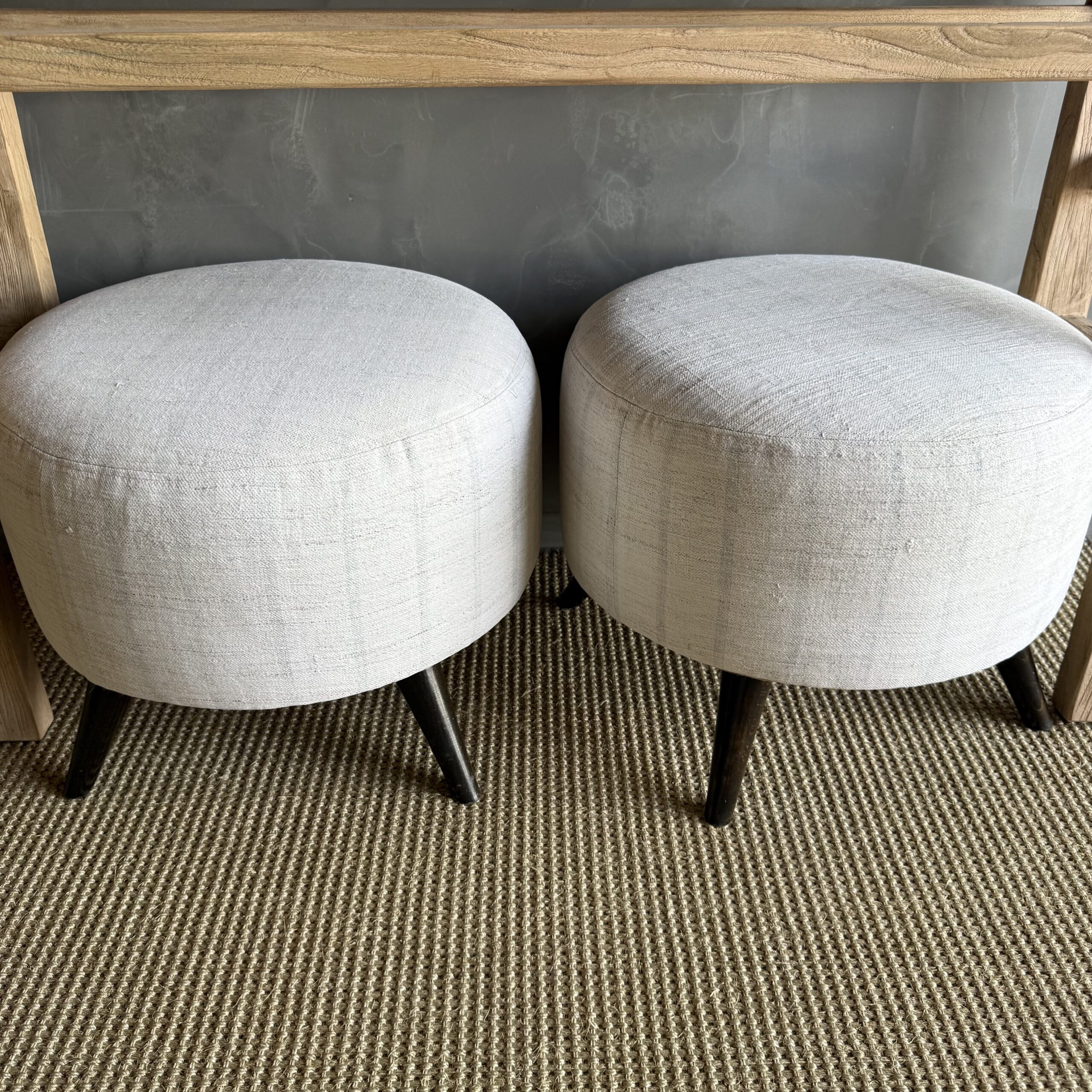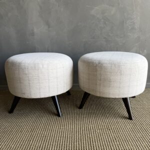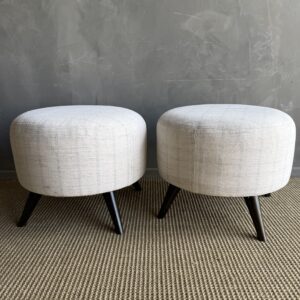 These vintage Turkish rug ottomans brings warmth, texture, and soul into your home. Made using an authentic, handwoven Turkish rug, no two are exactly alike. The beautifully worn fibers showcase subtle variations in color and pattern, paired with four solid wood legs for durability and balance. A charming accent for layered, lived-in interiors.