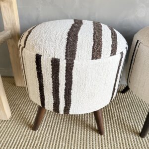 These vintage Turkish rug ottomans brings warmth, texture, and soul into your home. Made using an authentic, handwoven Turkish rug, no two are exactly alike. The beautifully worn fibers showcase subtle variations in color and pattern, paired with four solid wood legs for durability and balance. A charming accent for layered, lived-in interiors.