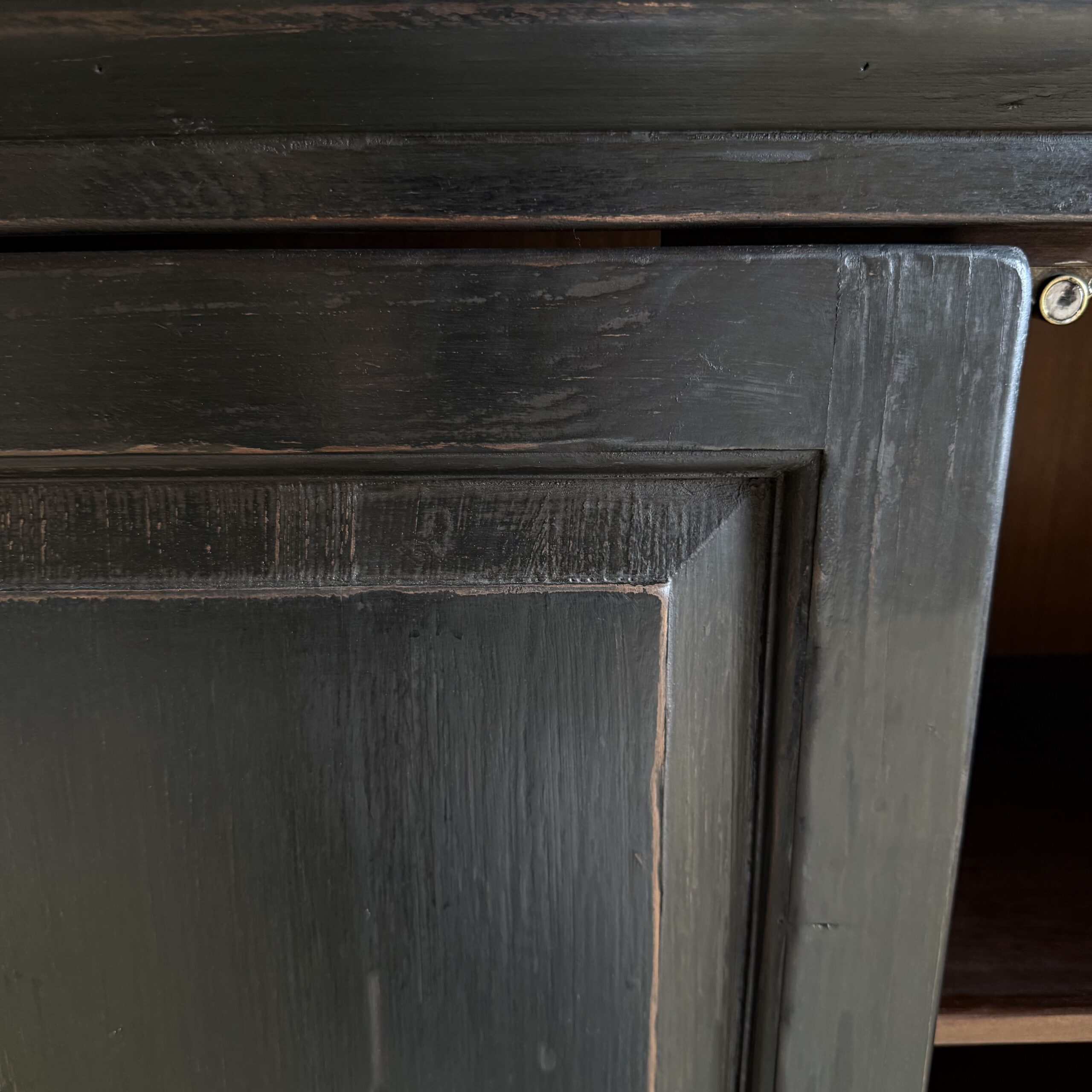 Great interior storage, finished in a black ebony paint with subtle distressed edges.
