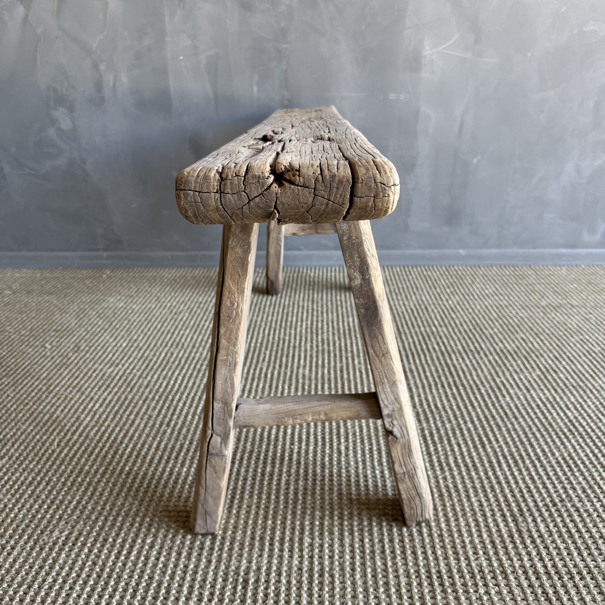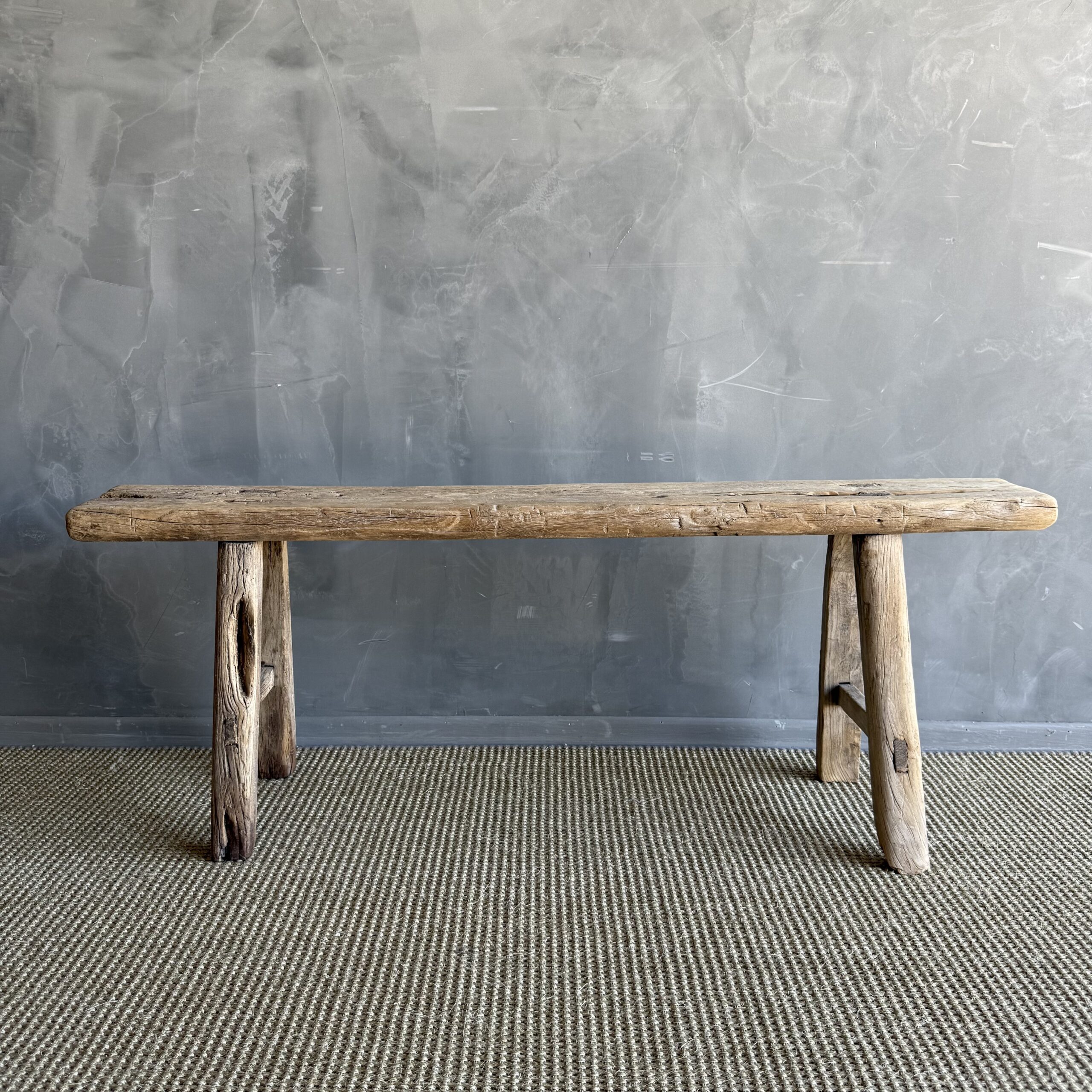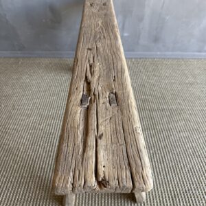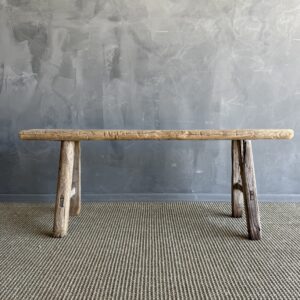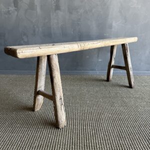 Vintage elm skinny bench. Crafted from reclaimed elm wood, this bench is not only solid and sturdy but also exudes a charming rustic charm. Perfect for adding character to any room, this bench is ideal for placing at the end of a bed, in the entryway, or in a hall space. The vintage elm wood gives it a unique character that will elevate the style of any room. Don’t miss out on the opportunity to bring a piece of history into your home with this stunning vintage find!