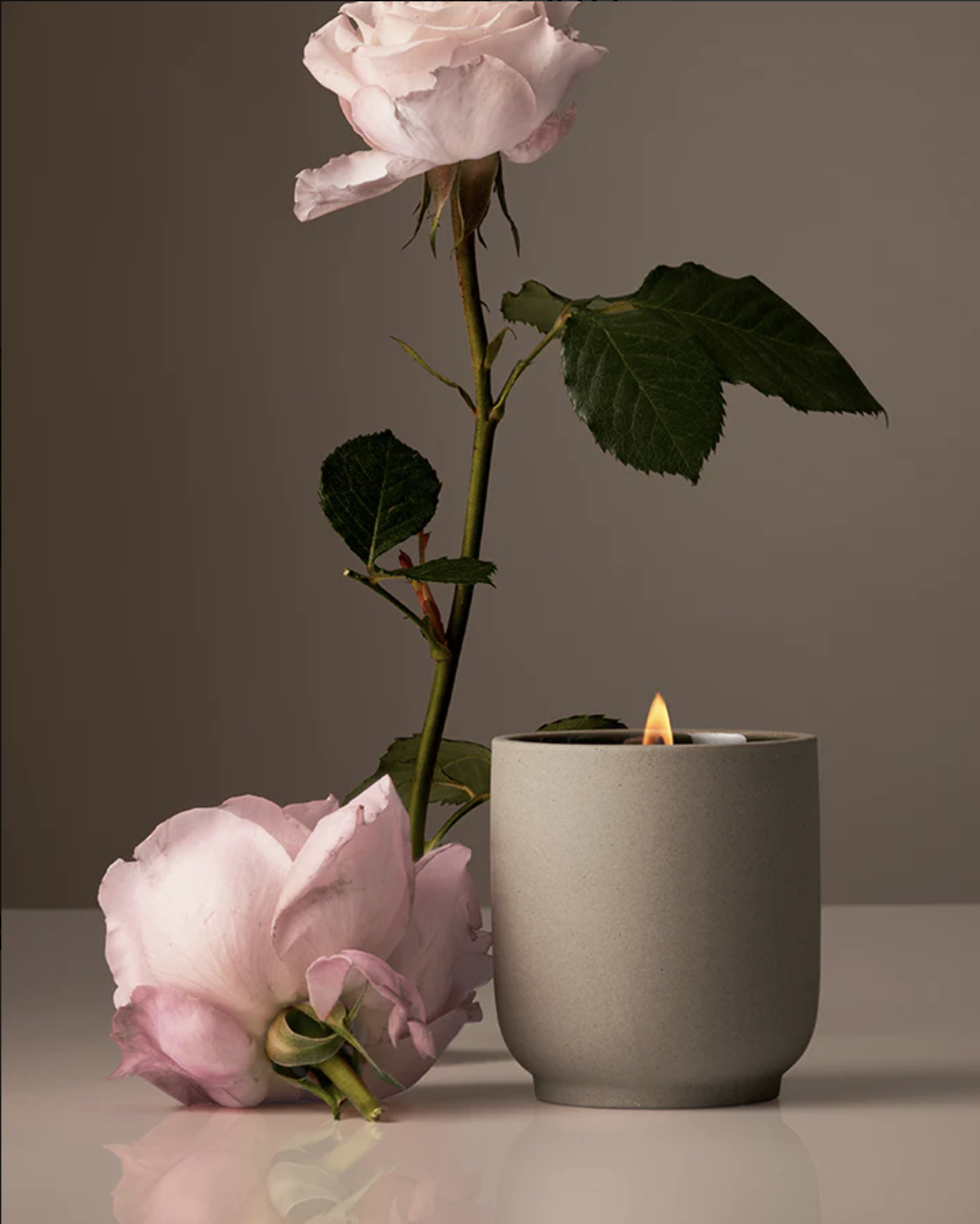 Steeped Rose: An unadulterated floral that captures the uplifting character of its namesake bloom. Instantly fill your space with dozens of freshly cut roses—stems, thorns, and all.