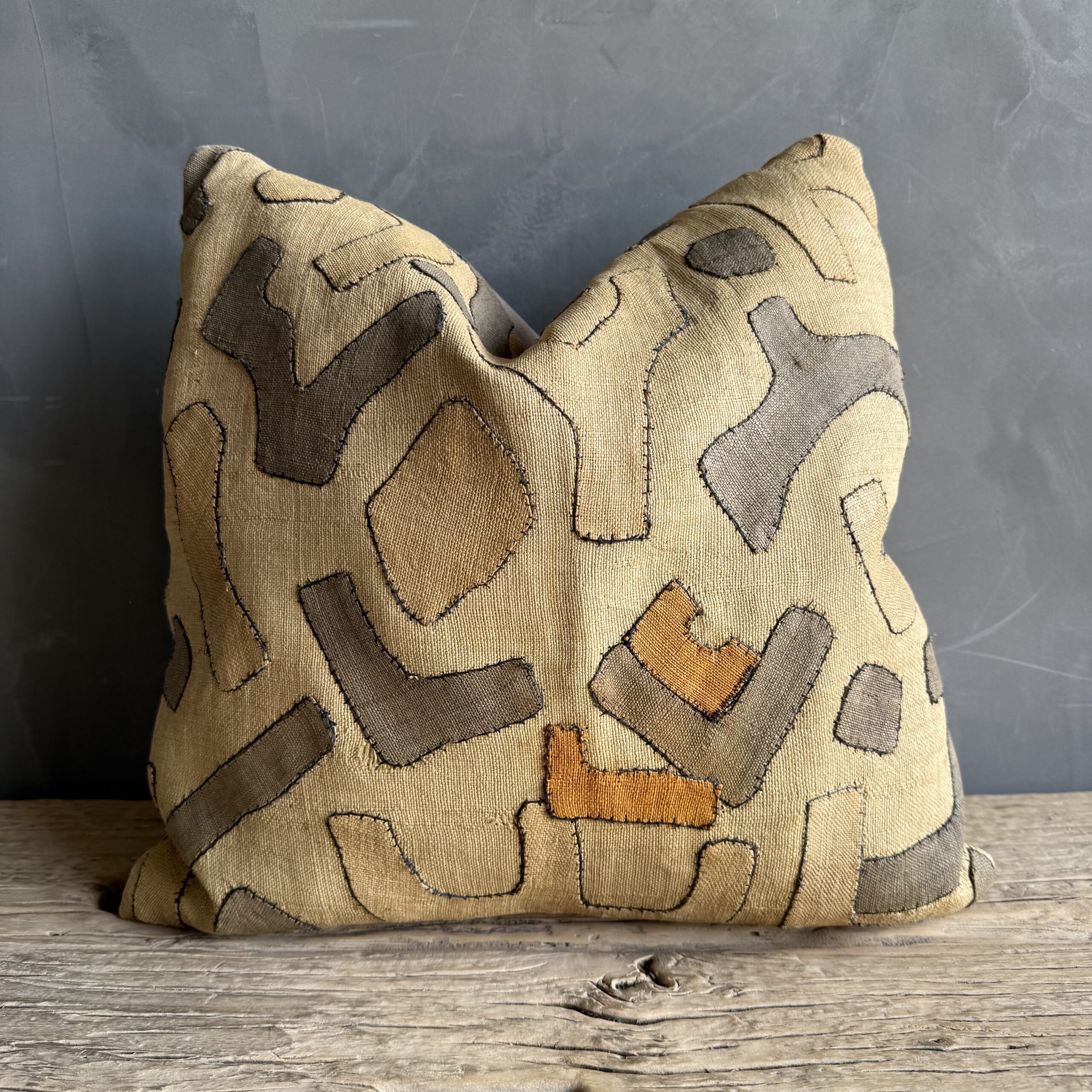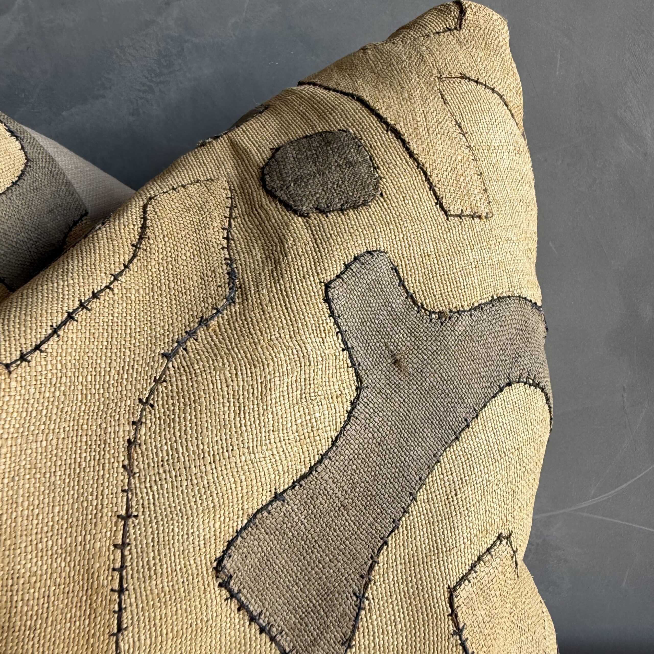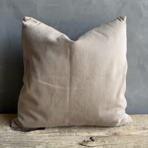 A truly one-of-a-kind pillow, thoughtfully handcrafted from a carefully curated selection of beautiful, unique fabrics. Each piece is composed of textiles chosen for their rich texture, subtle variation, and distinctive character—ranging from soft, timeworn weaves to more structured, tactile finishes. The combination of tones and materials creates a layered, collected look that feels both elevated and effortlessly lived-in.