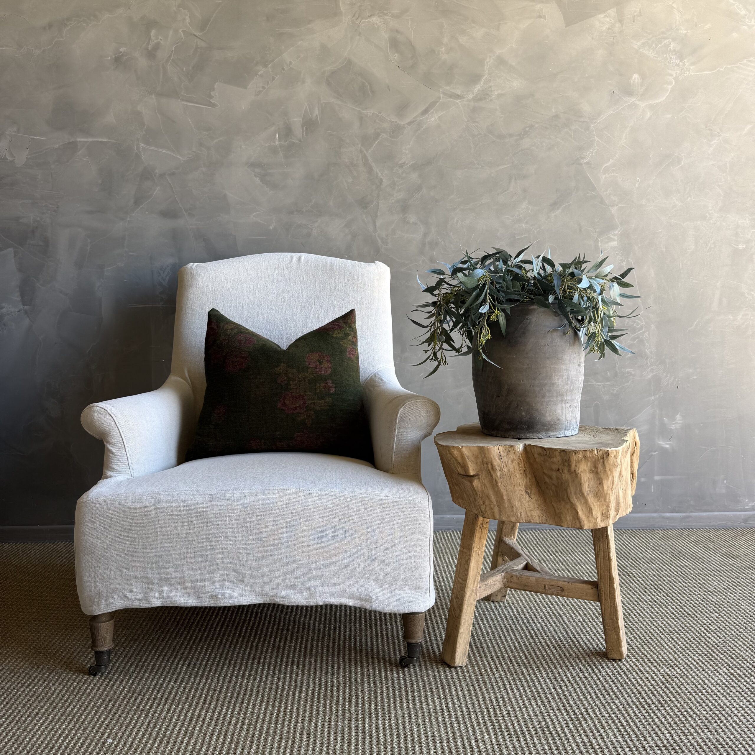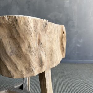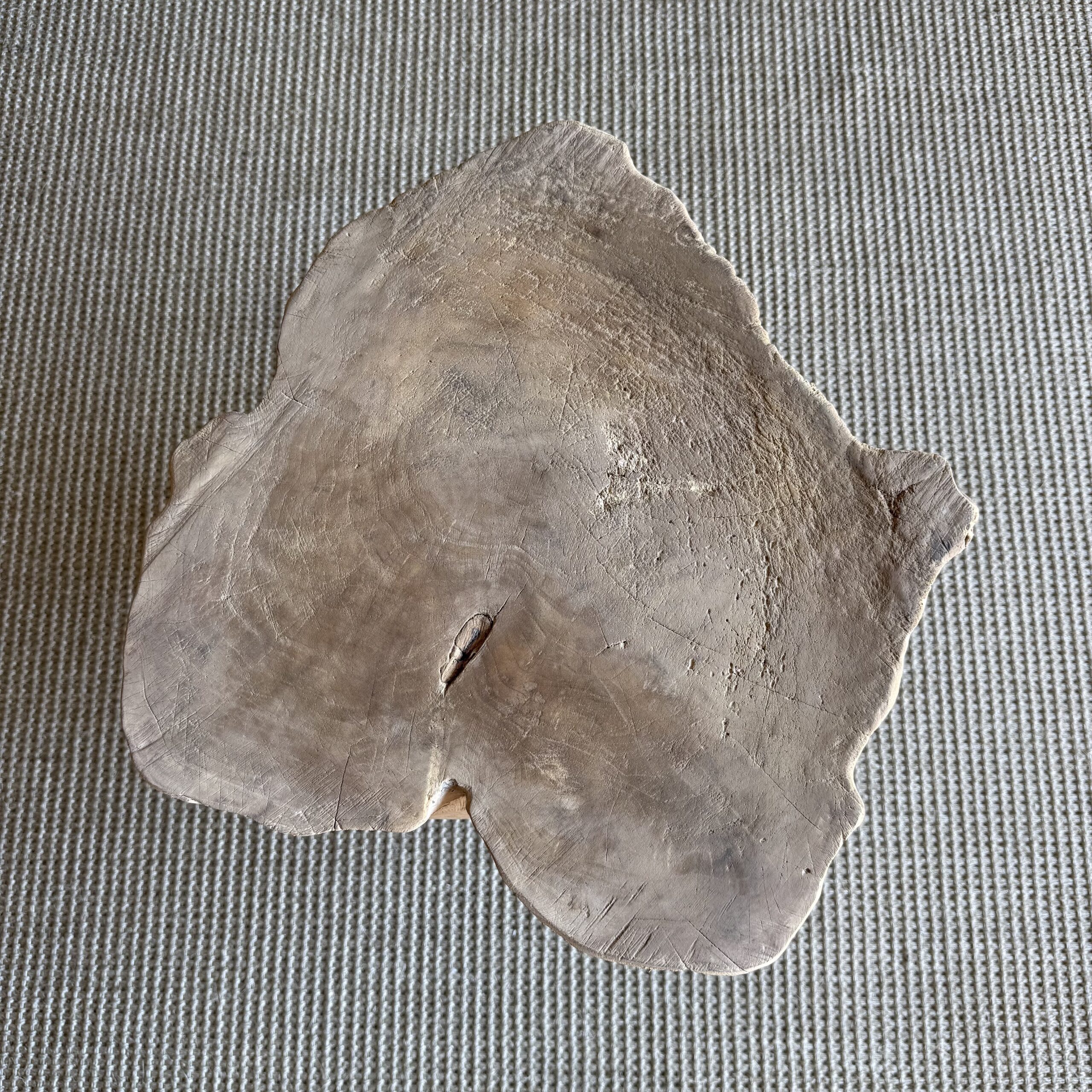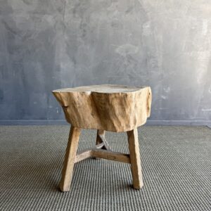 This solid stump slice was turned into a side table or stool. The solid thick top has a beautiful movement with unique characteristics. A natural live edge to show shape and form of what was. Solid and sturdy, perfect earthy organic piece to add to your home.