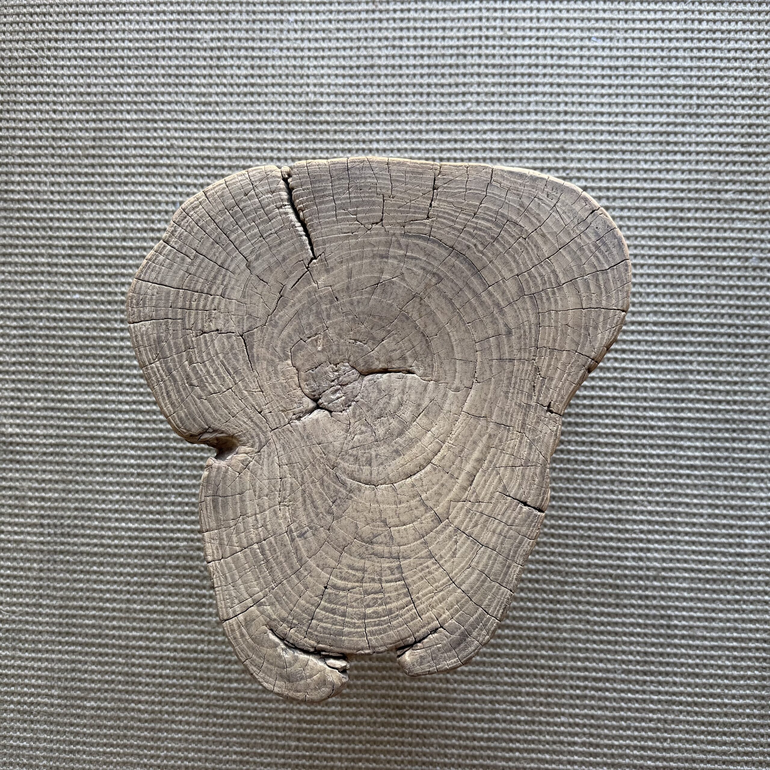 This solid stump slice was turned into a side table or stool. The solid thick top has a beautiful movement with unique characteristics. A natural live edge to show shape and form of what was. Solid and sturdy, perfect earthy organic piece to add to your home.