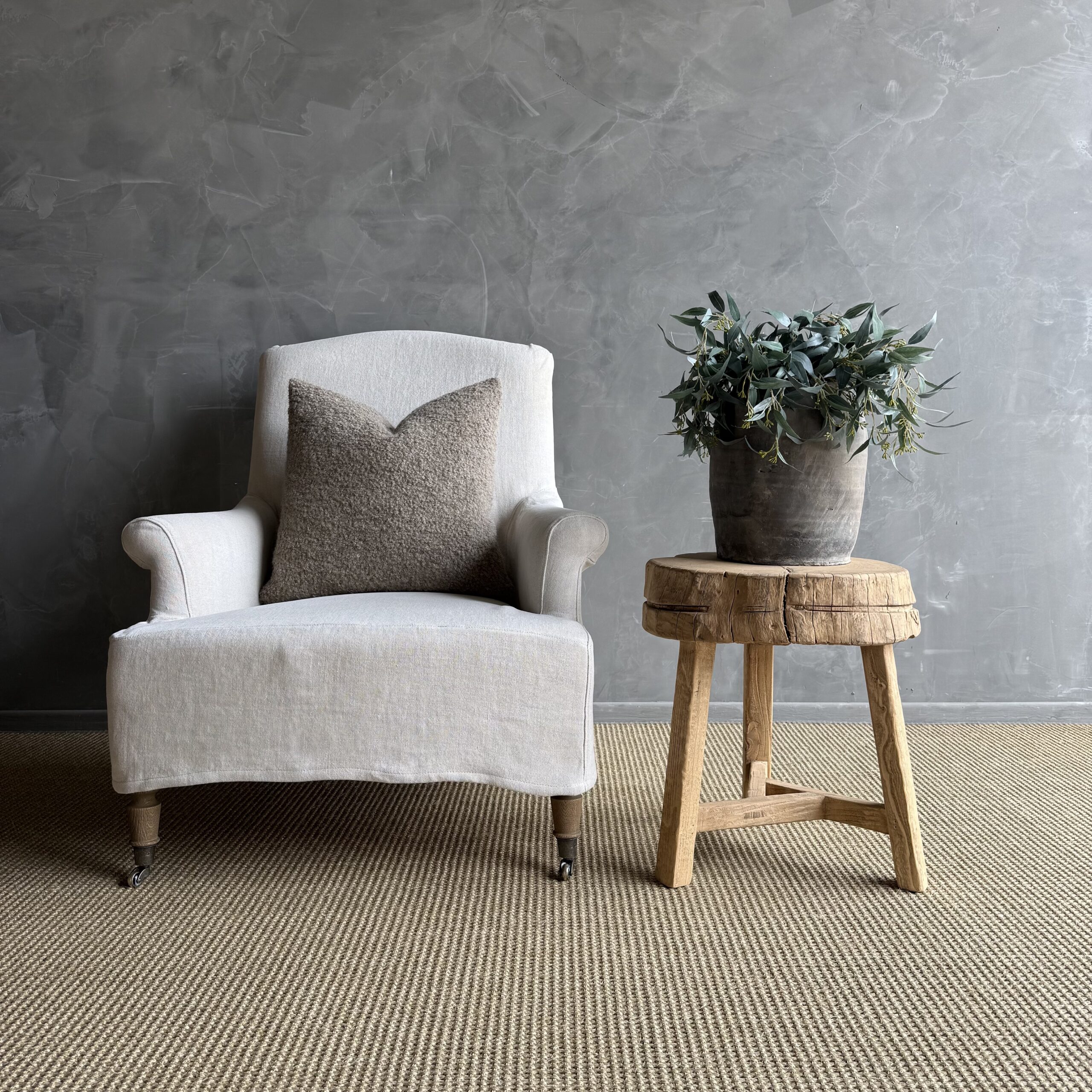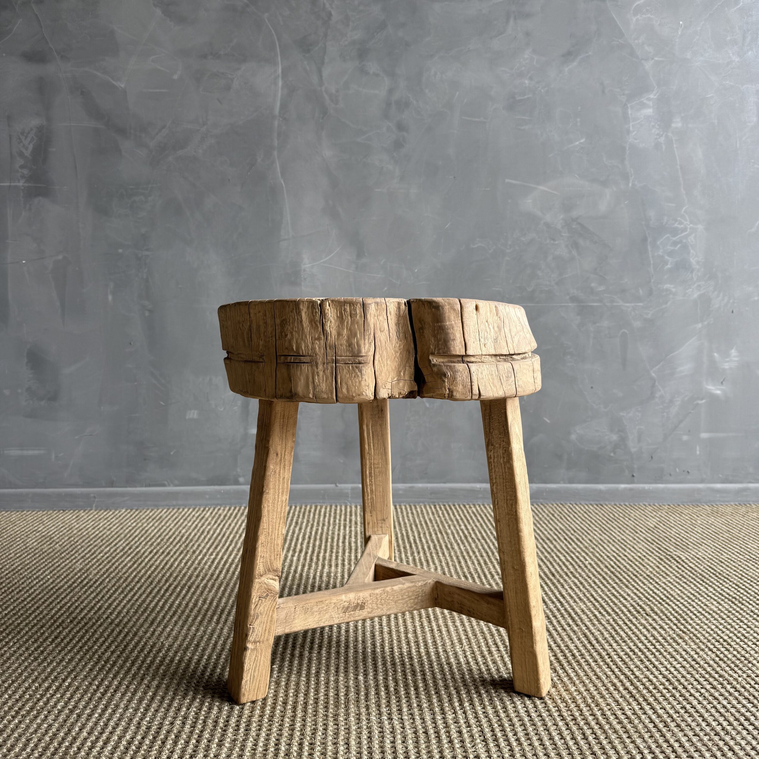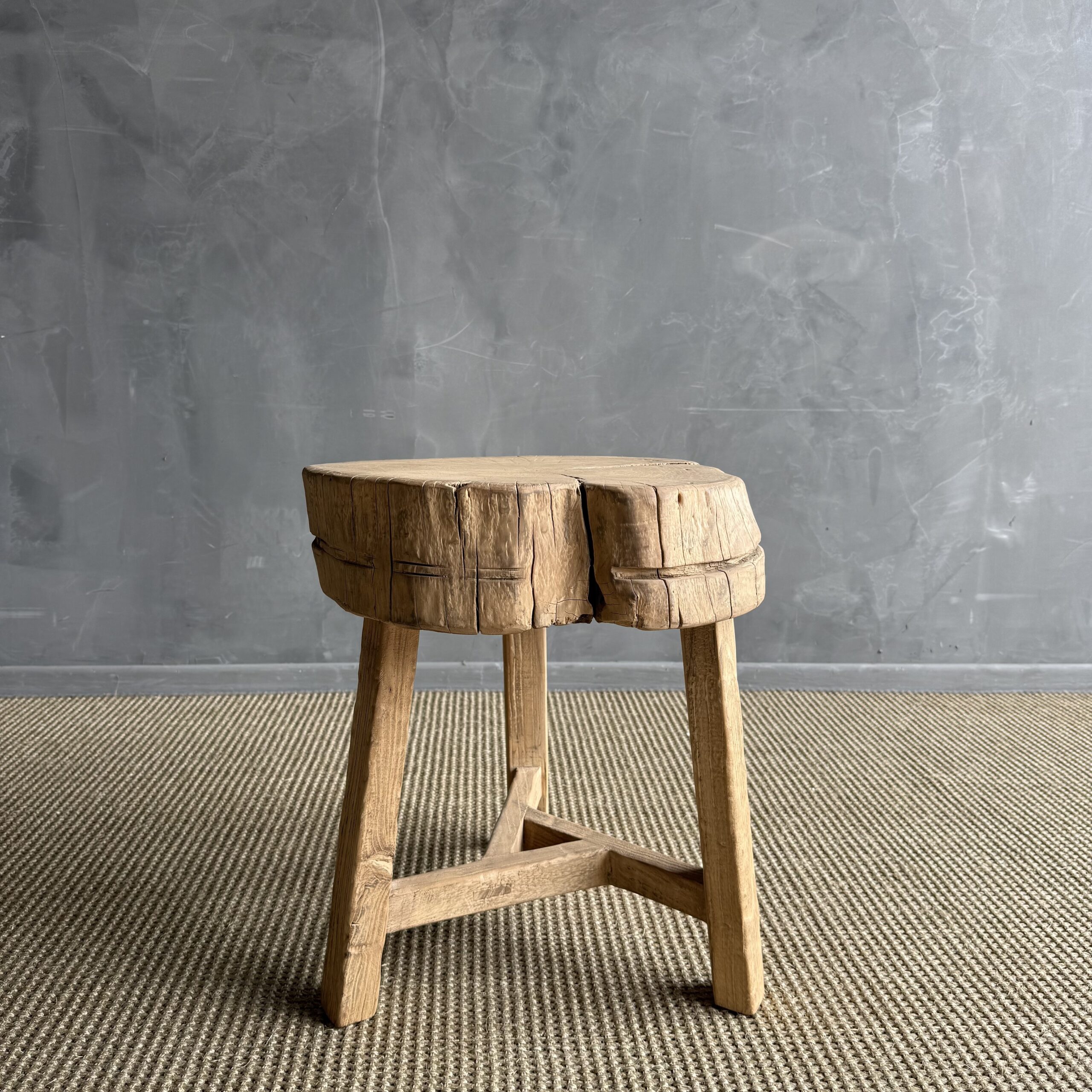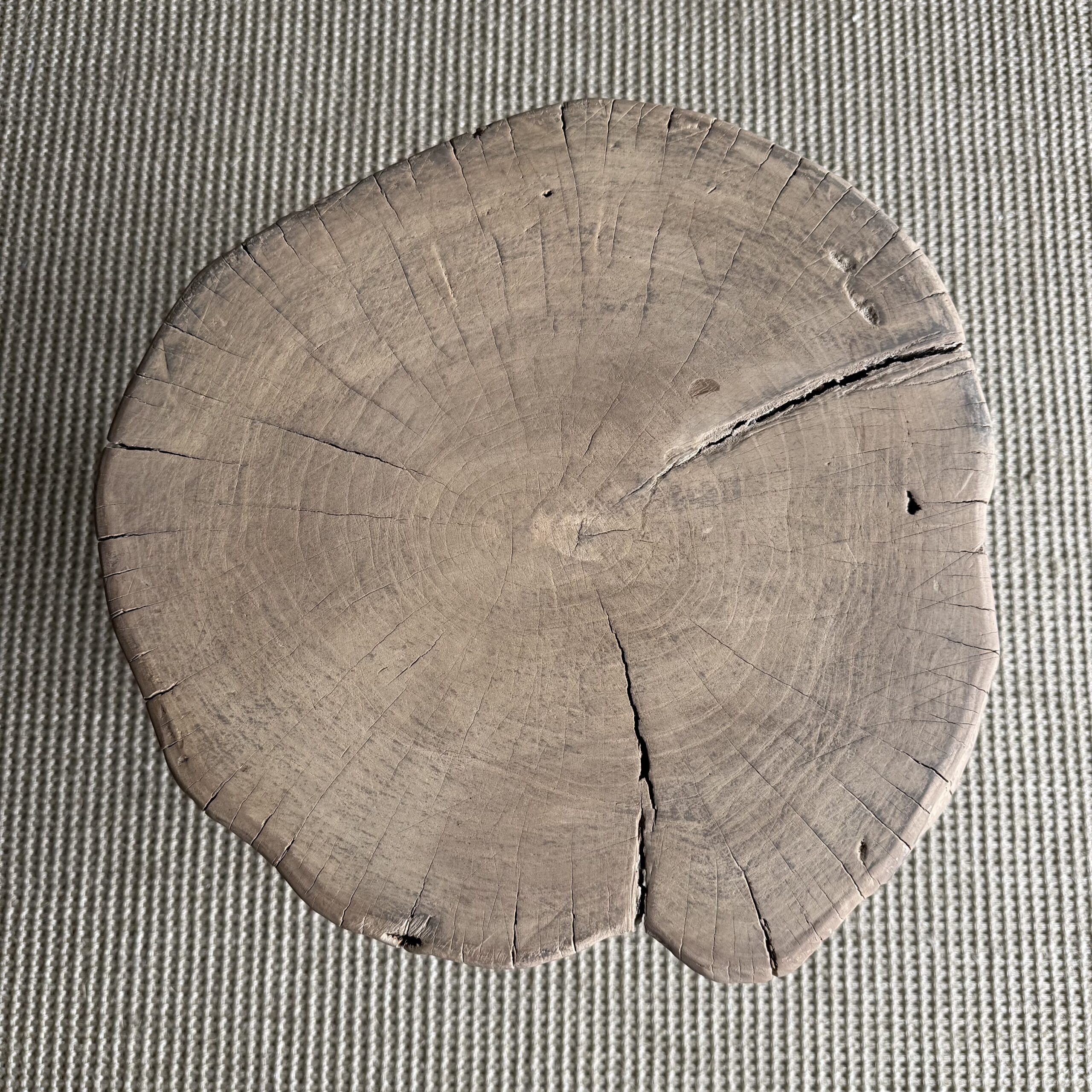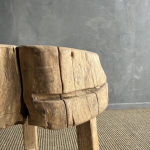 This solid stump slice was turned into a side table or stool. The solid thick top has a beautiful movement with unique characteristics. A natural live edge to show shape and form of what was. Solid and sturdy, perfect earthy organic piece to add to your home.