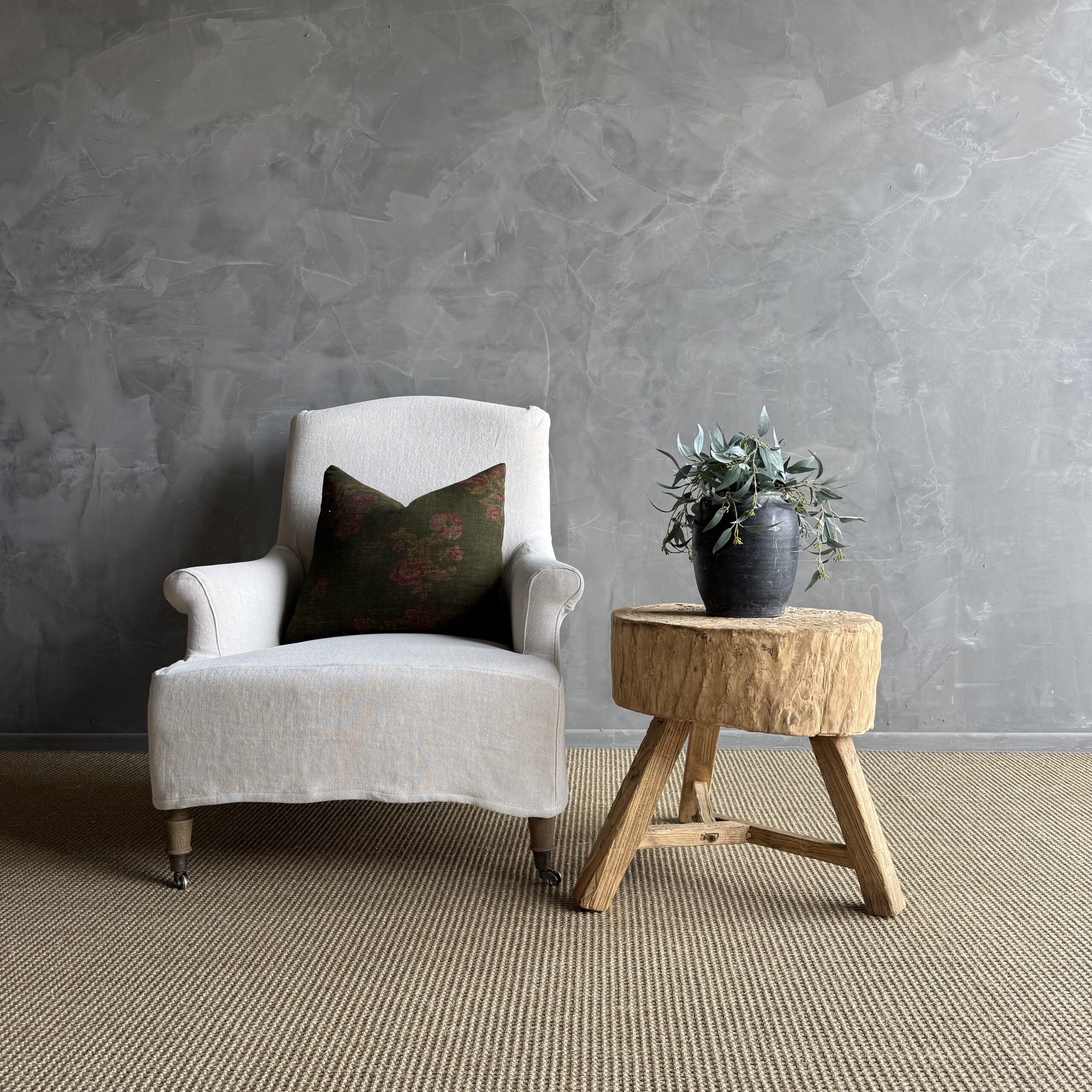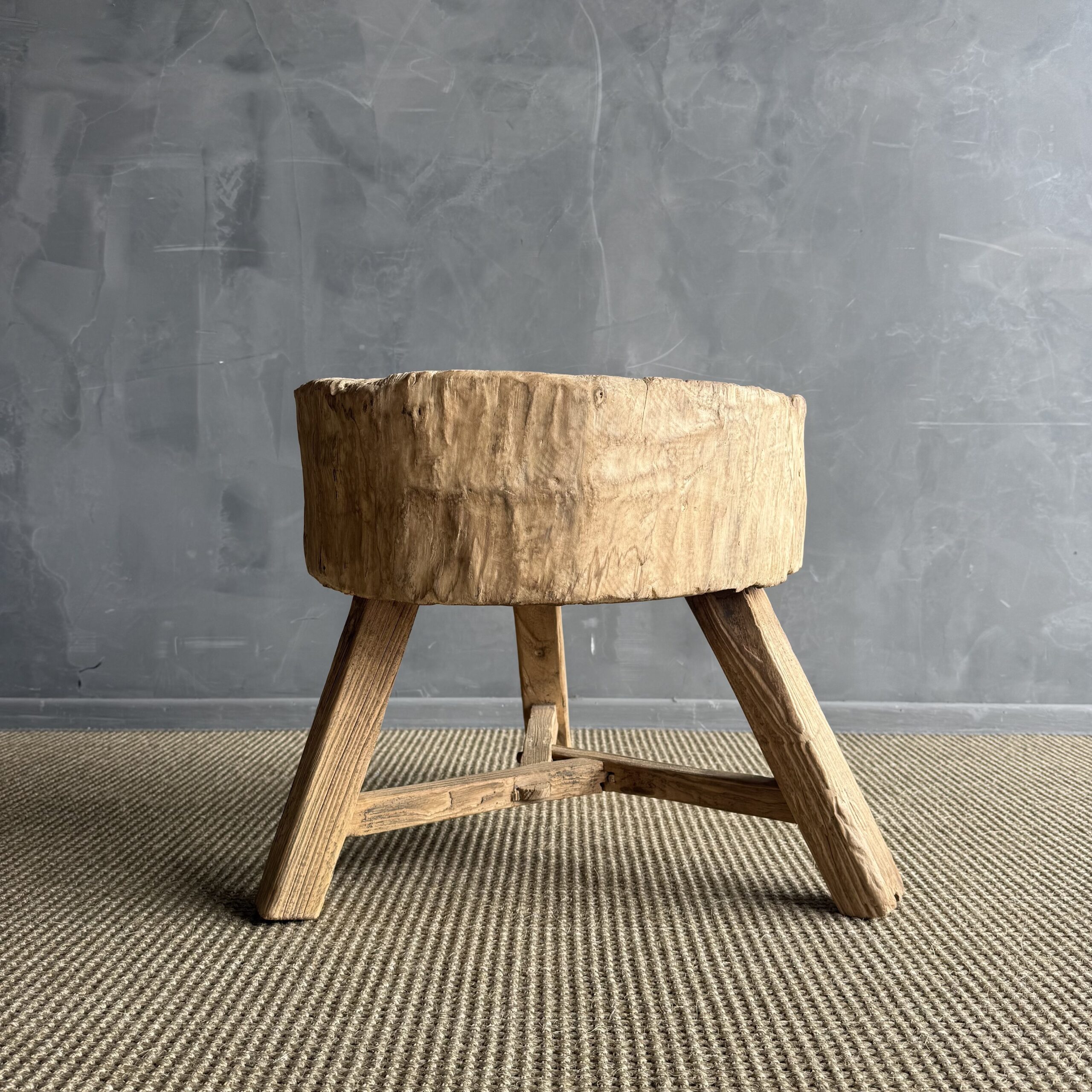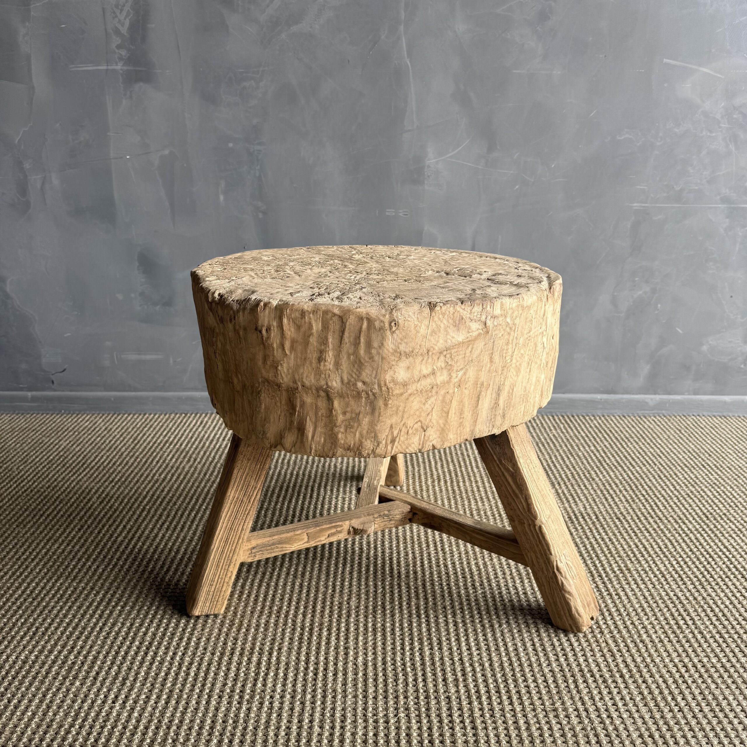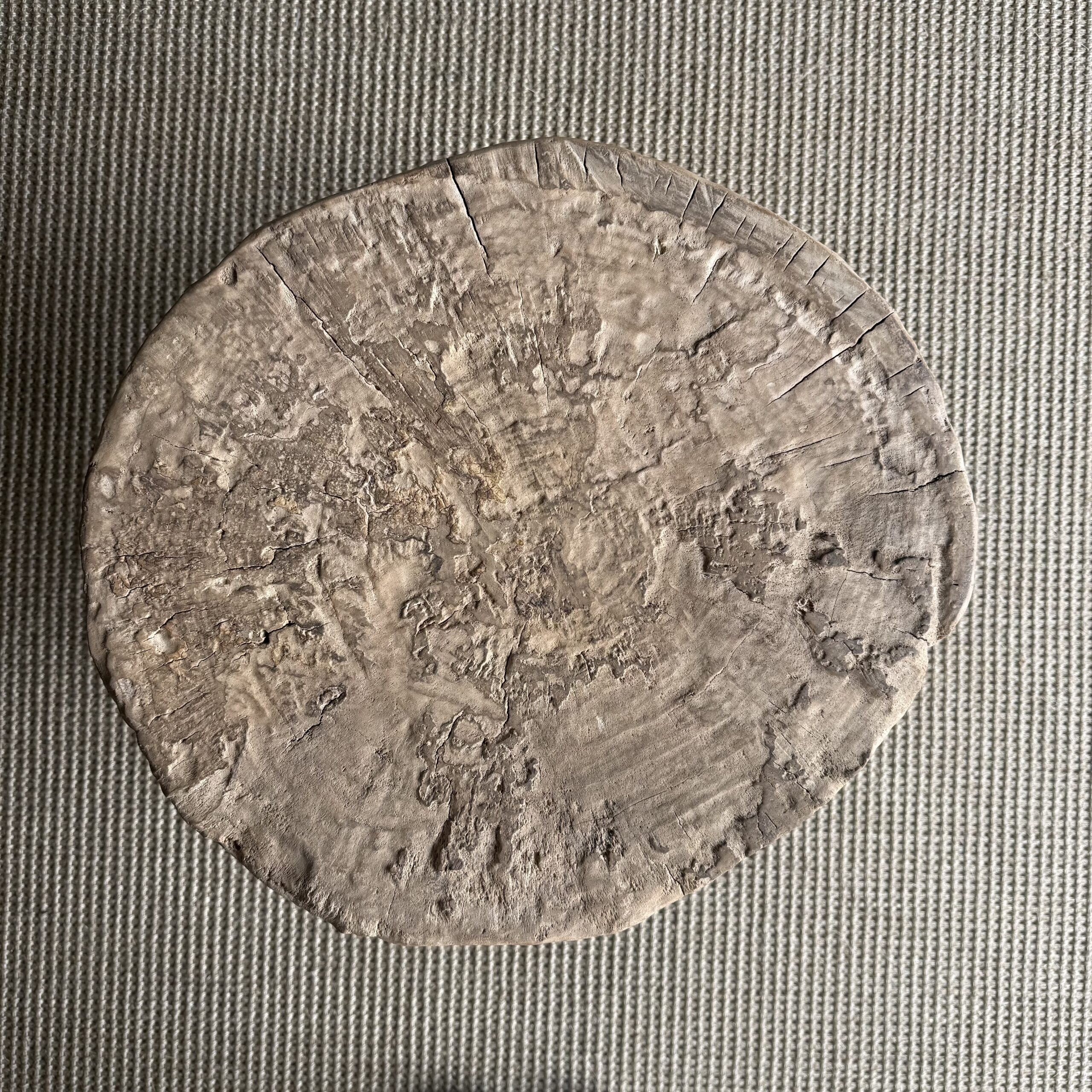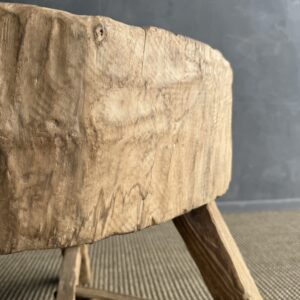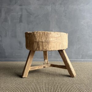 This solid stump slice was turned into a side table or stool. The solid thick top has a beautiful movement with unique characteristics. A natural live edge to show shape and form of what was. Solid and sturdy, perfect earthy organic piece to add to your home.
