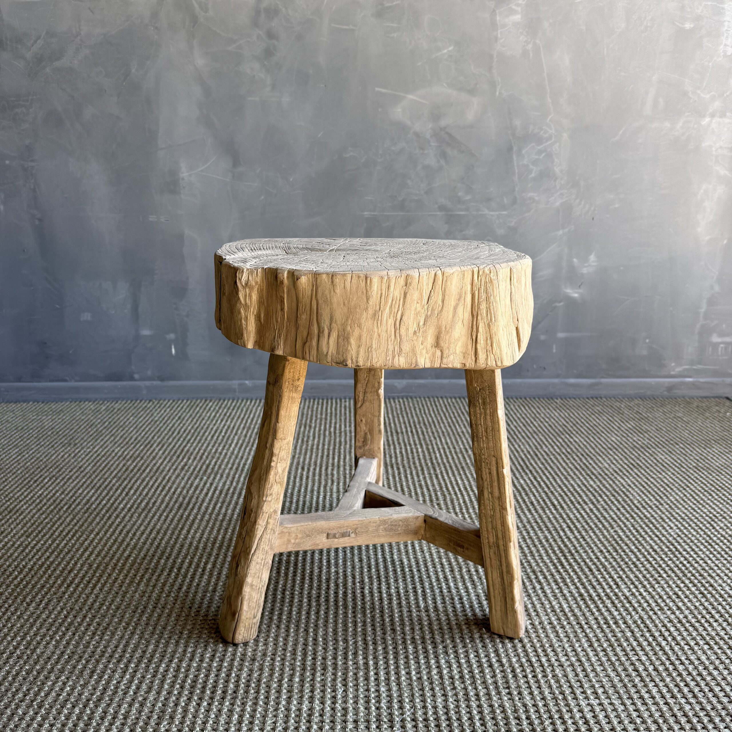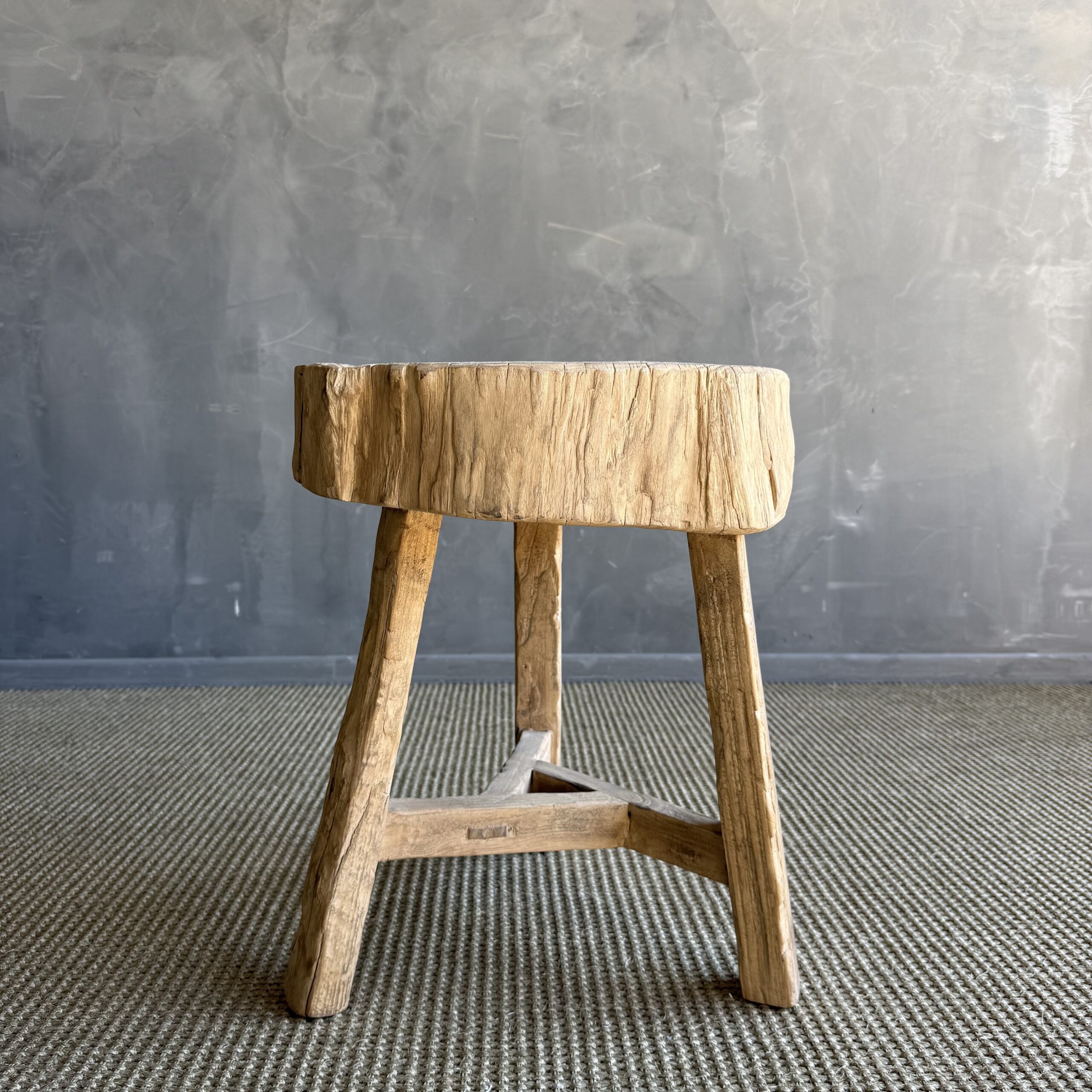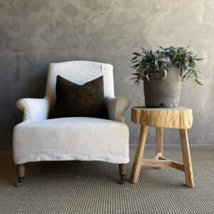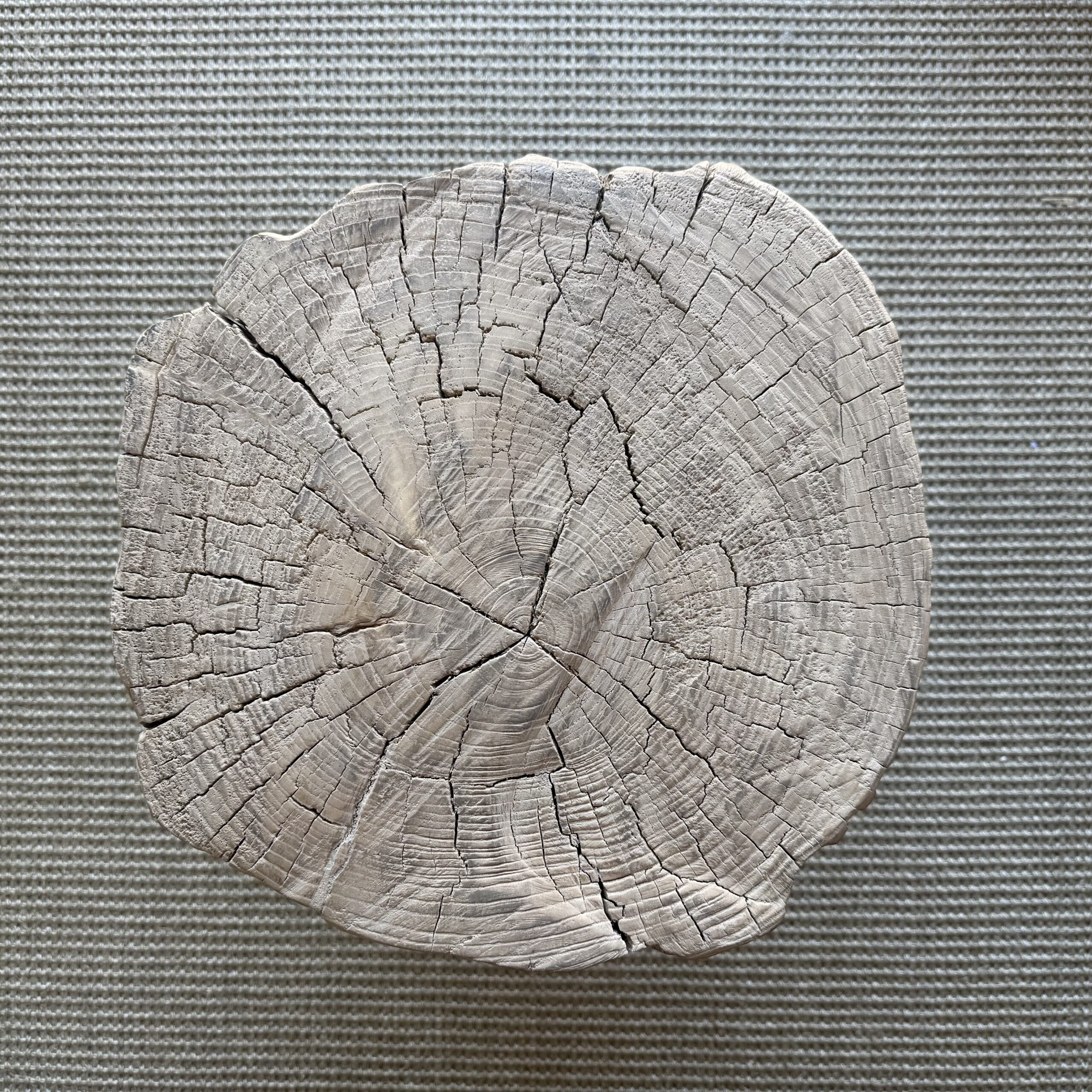 This solid stump slice was turned into a side table or stool. The solid thick top has a beautiful movement with unique characteristics. A natural live edge to show shape and form of what was. Solid and sturdy, perfect earthy organic piece to add to your home.