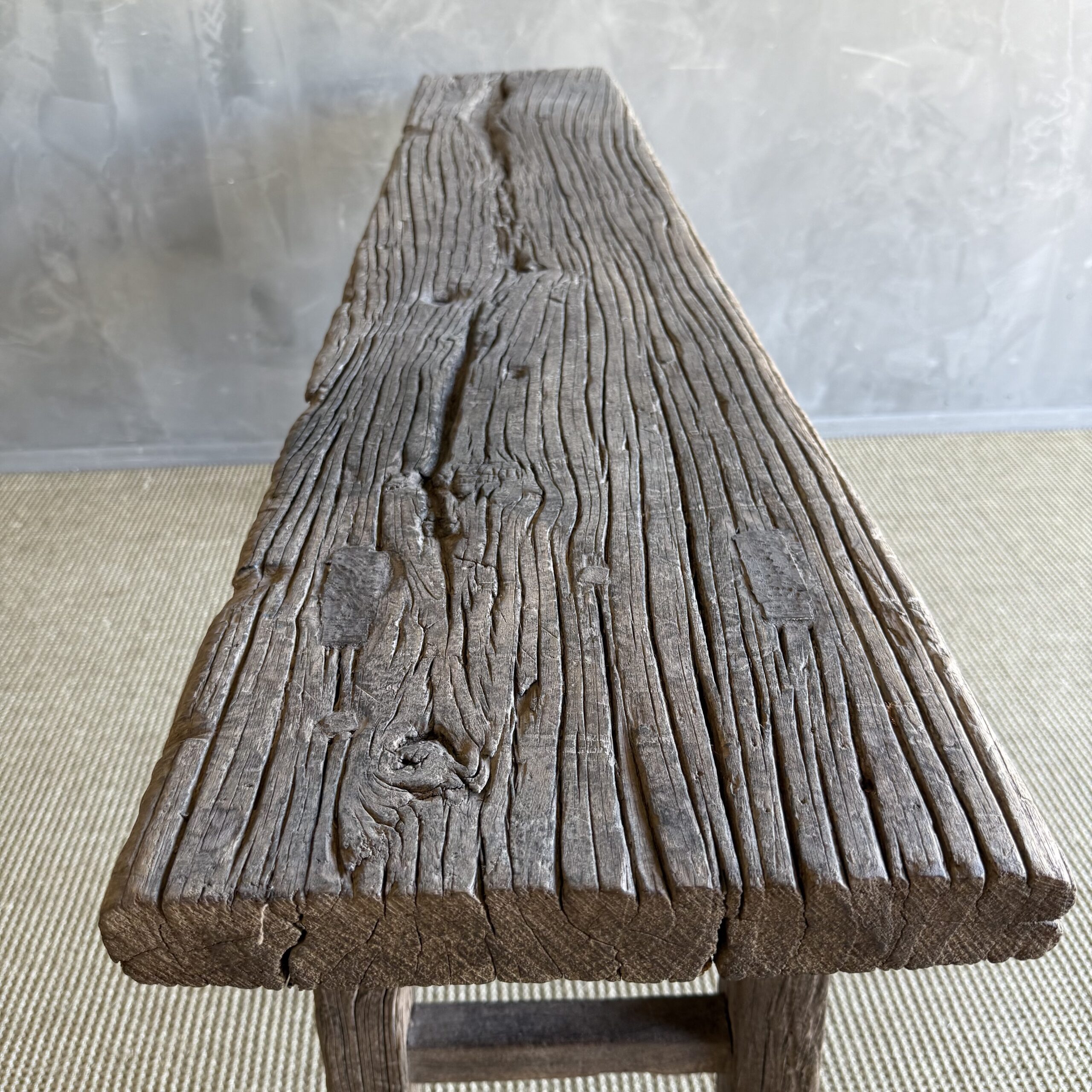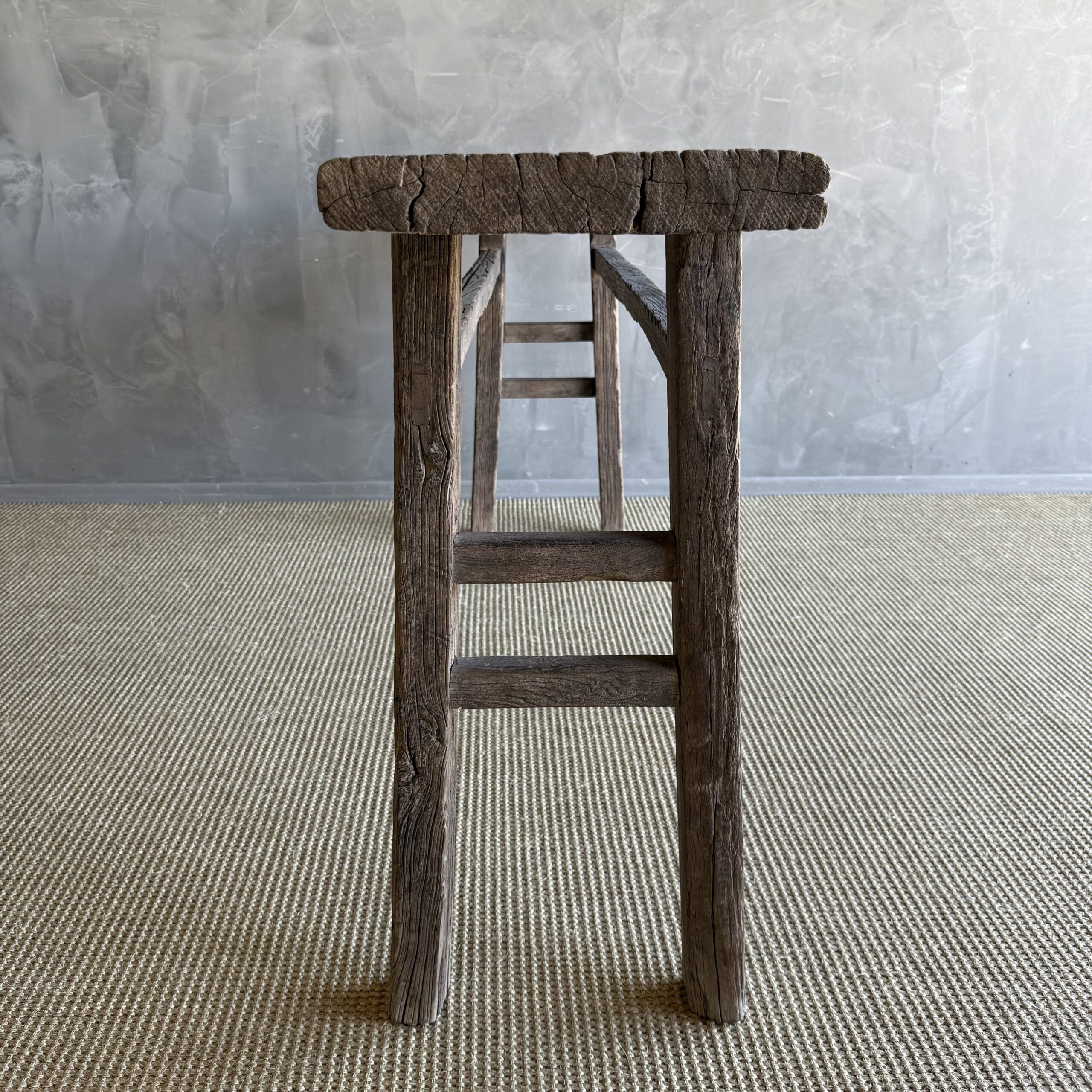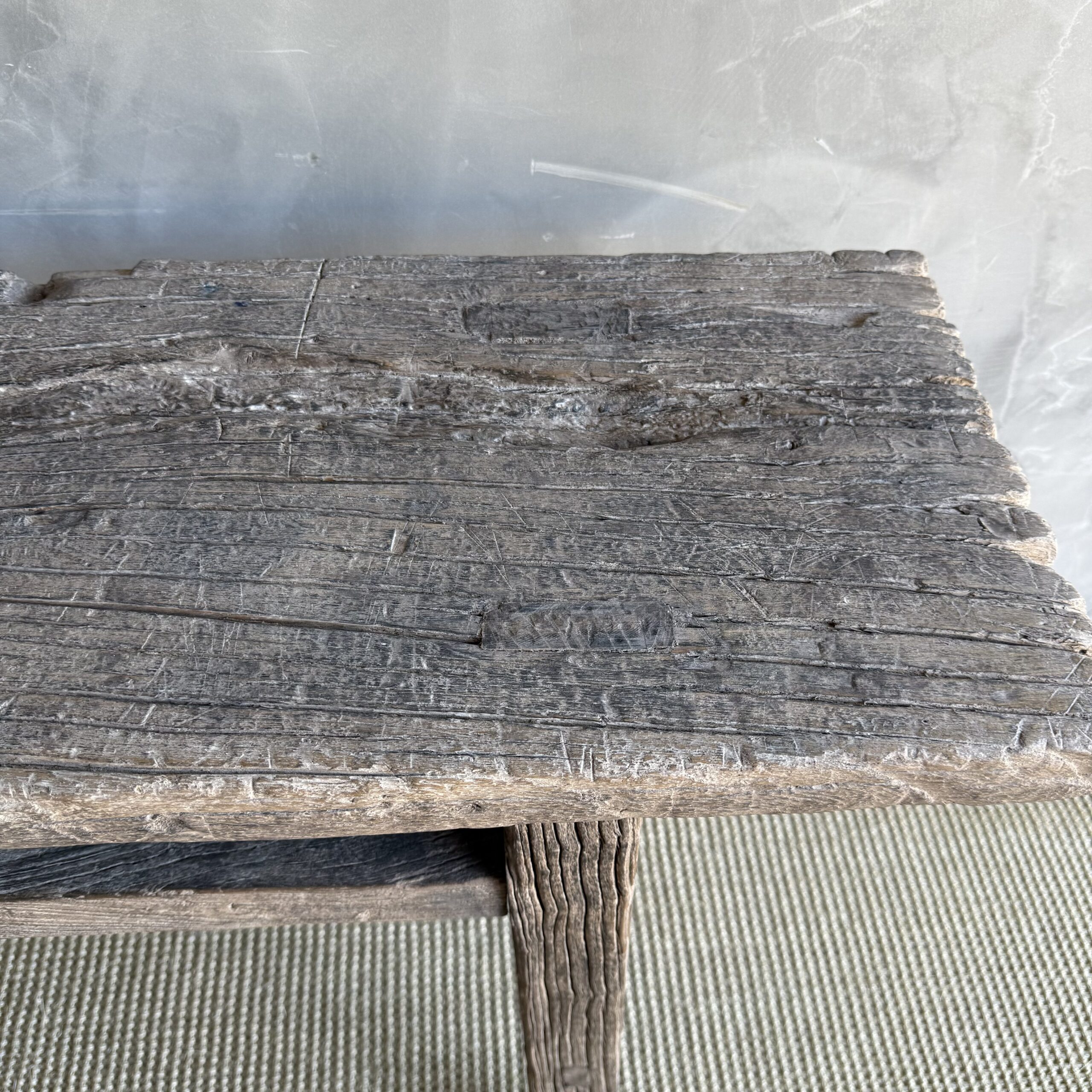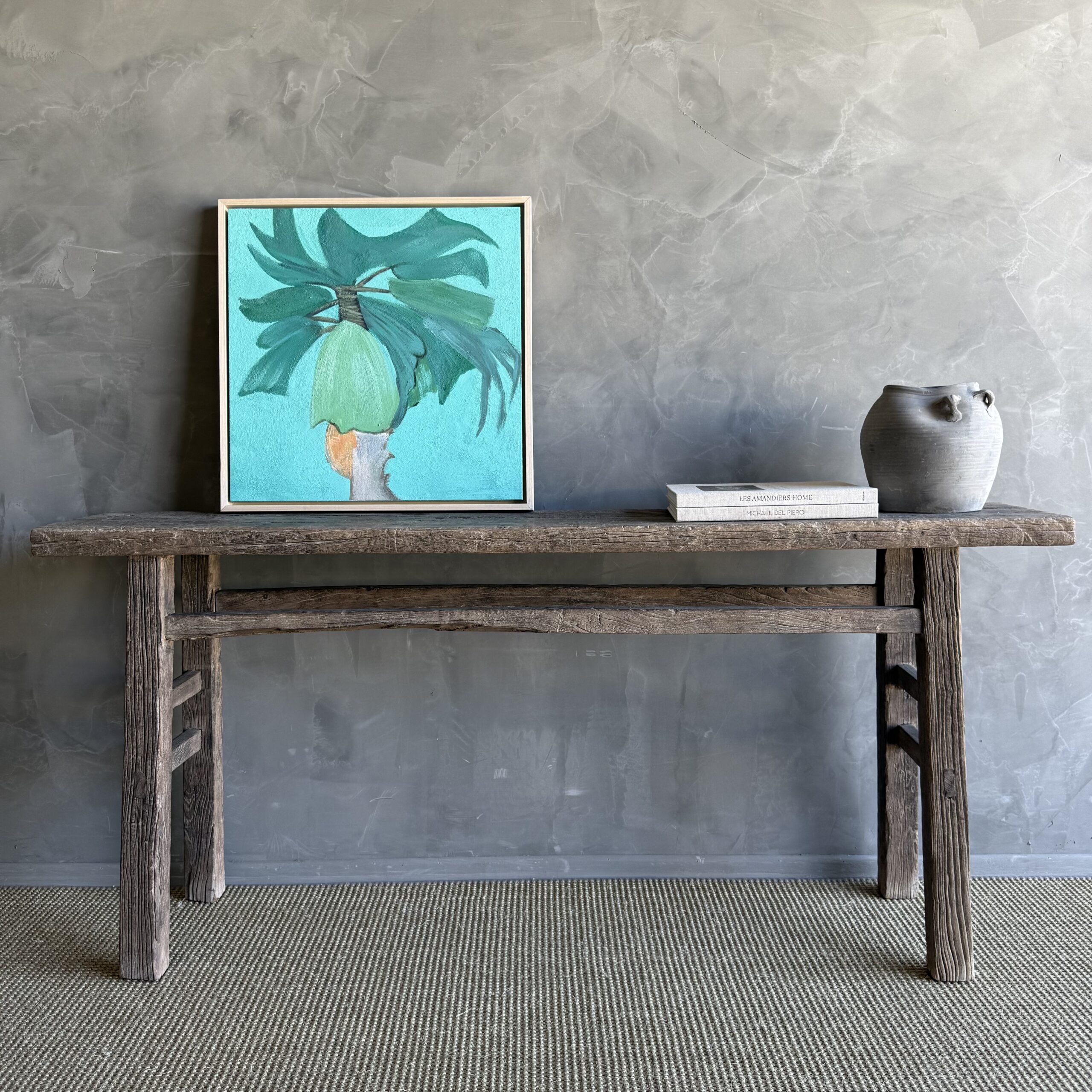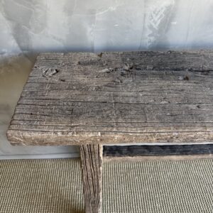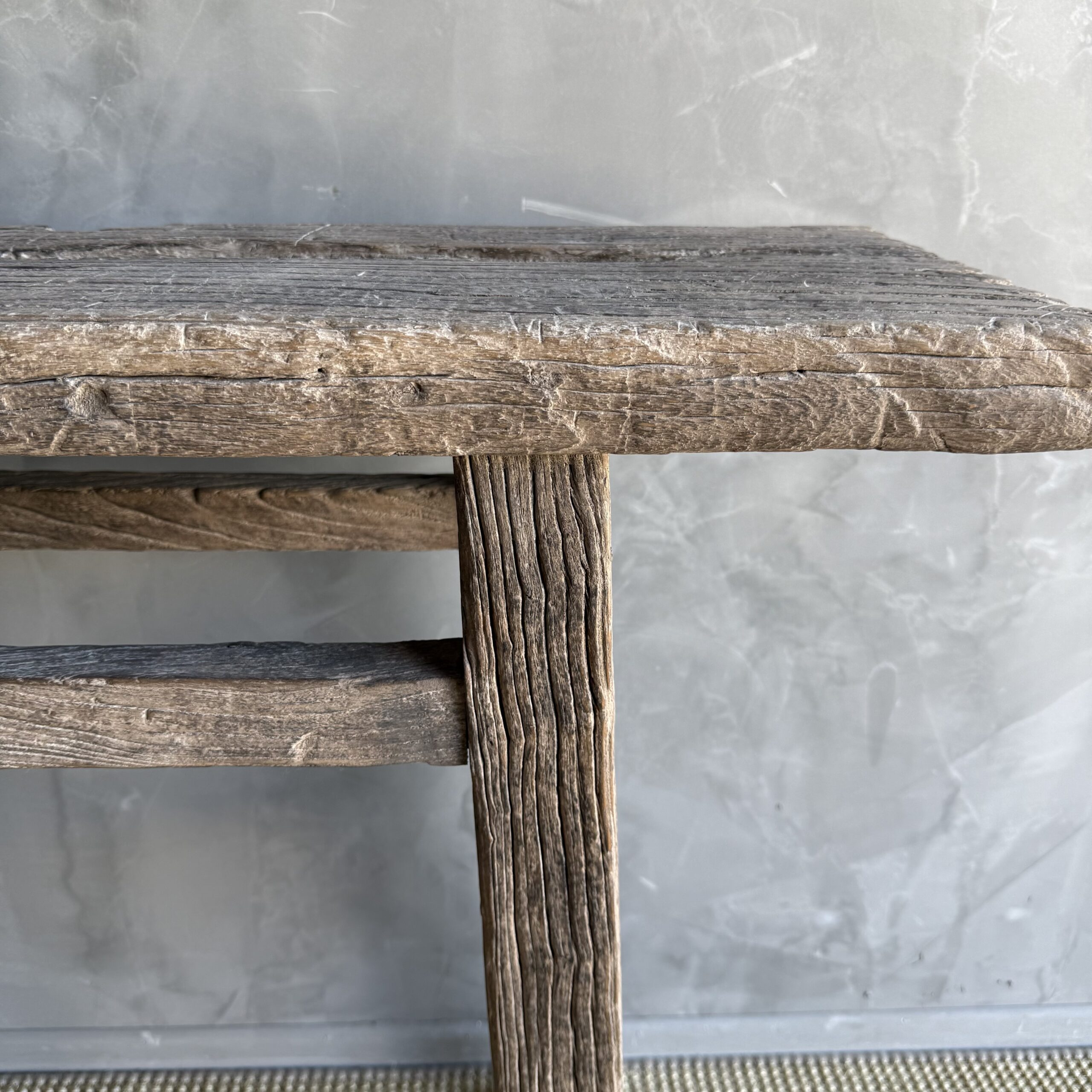 Vintage elm wood console table, featuring authentic elm wood with original natural wood patina. This rare find will bring a touch of wabi sabi aesthetic to your home, adding a unique and timeless charm to your space. Handcrafted with attention to detail, this console table combines history and character, providing a one-of-a-kind piece that will elevate any room it graces. Embrace the beauty of imperfection and celebrate the richness of the past with this exquisite vintage elm wood console table.