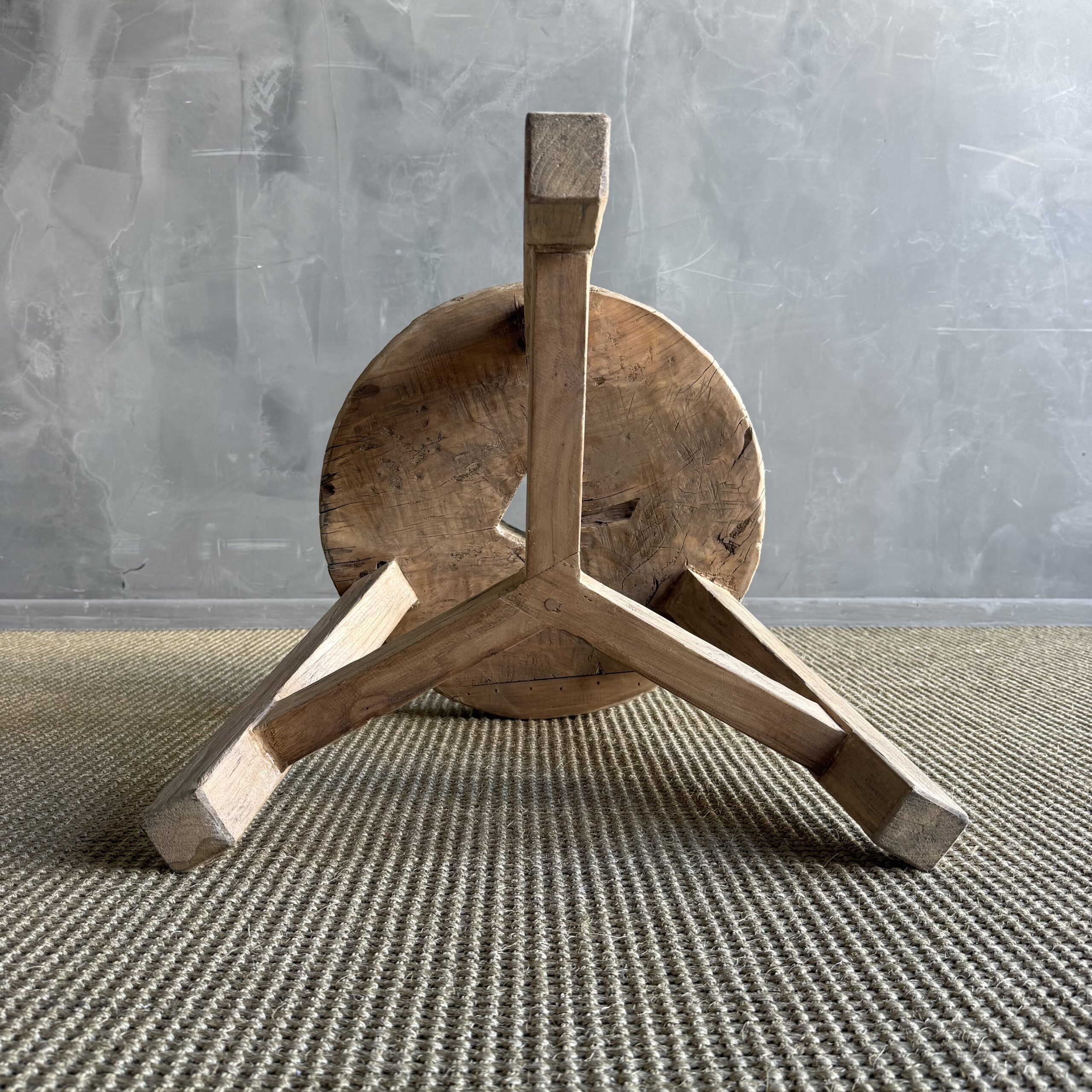 Vintage Elm Wood Wheel Side Table #4C2 - Bloom Home Inc