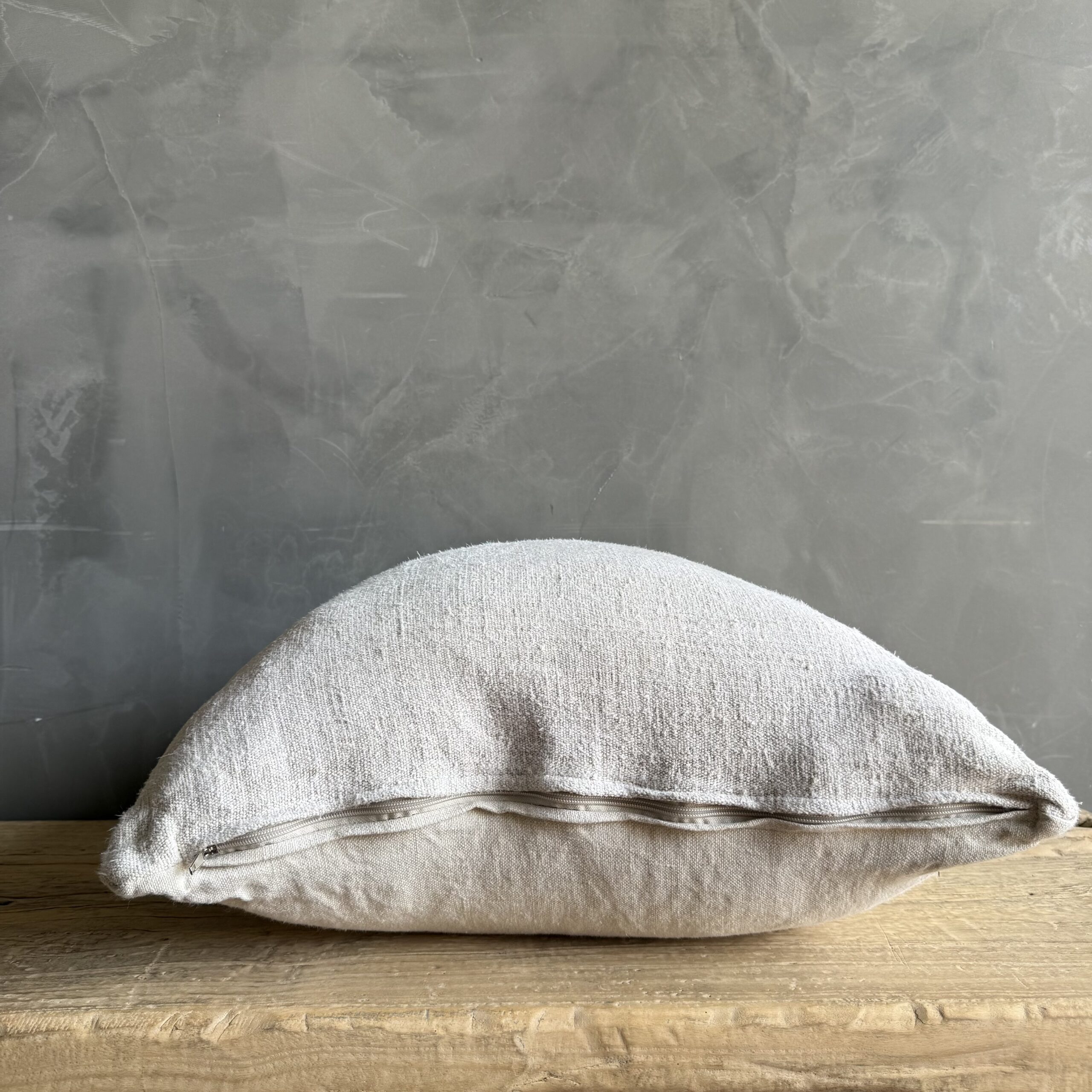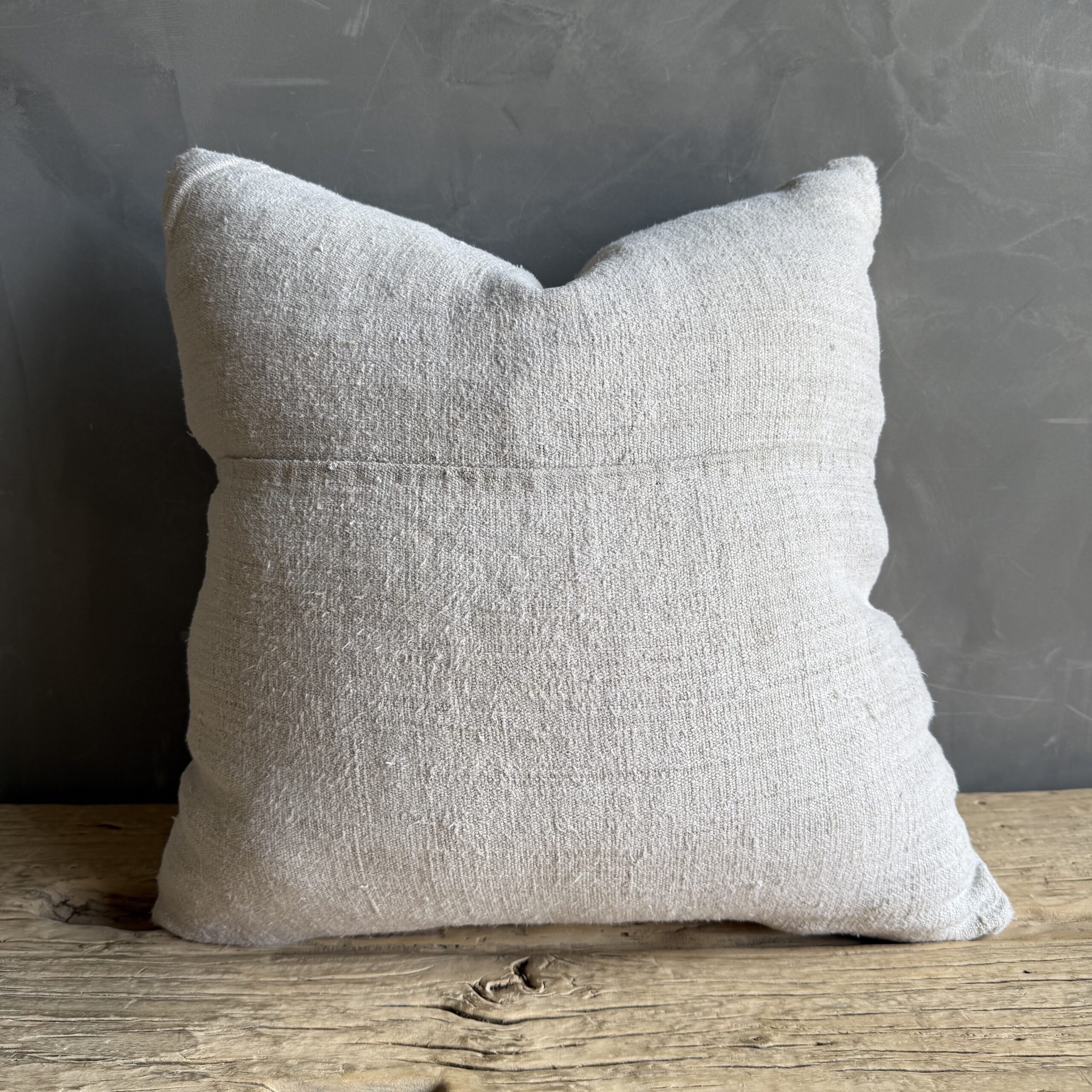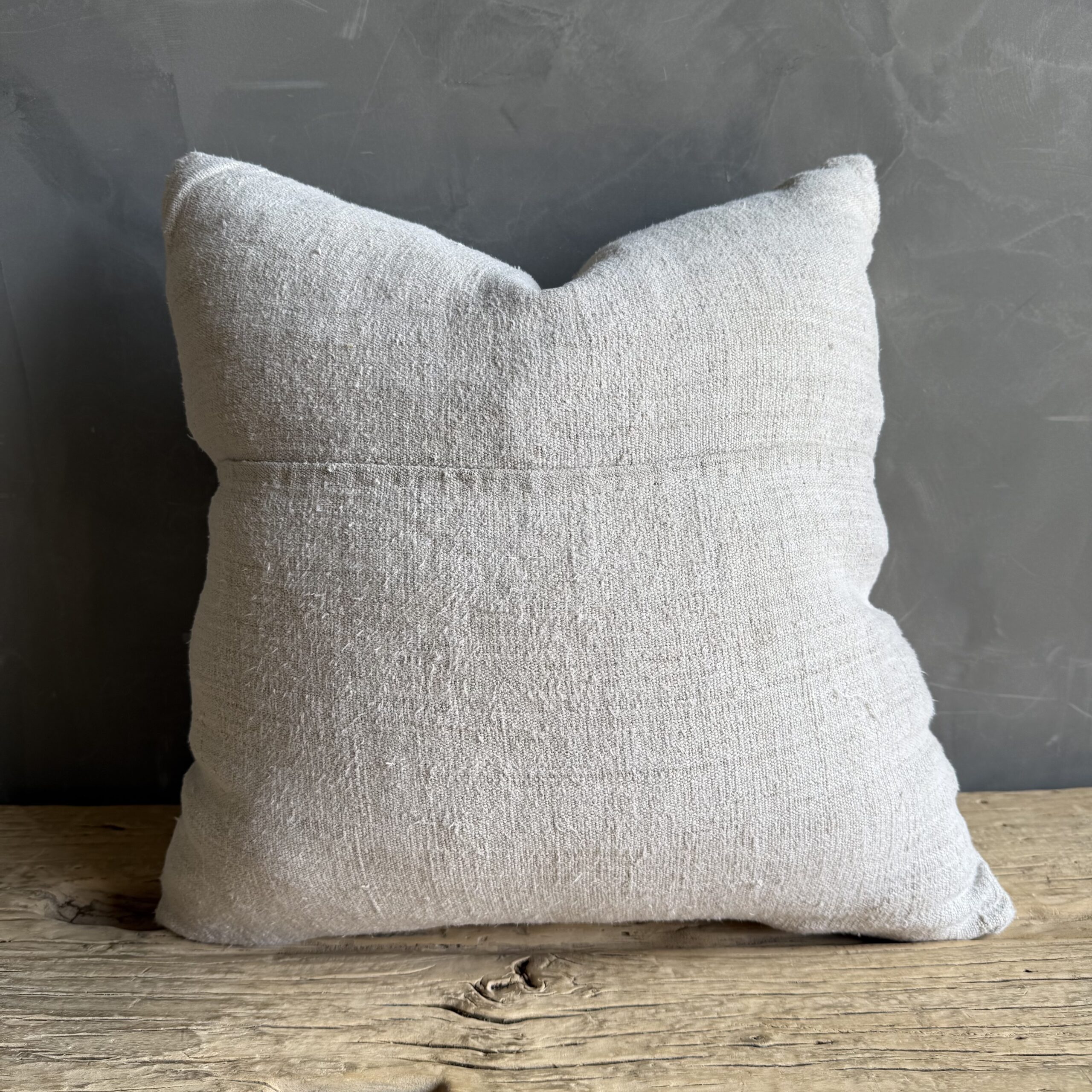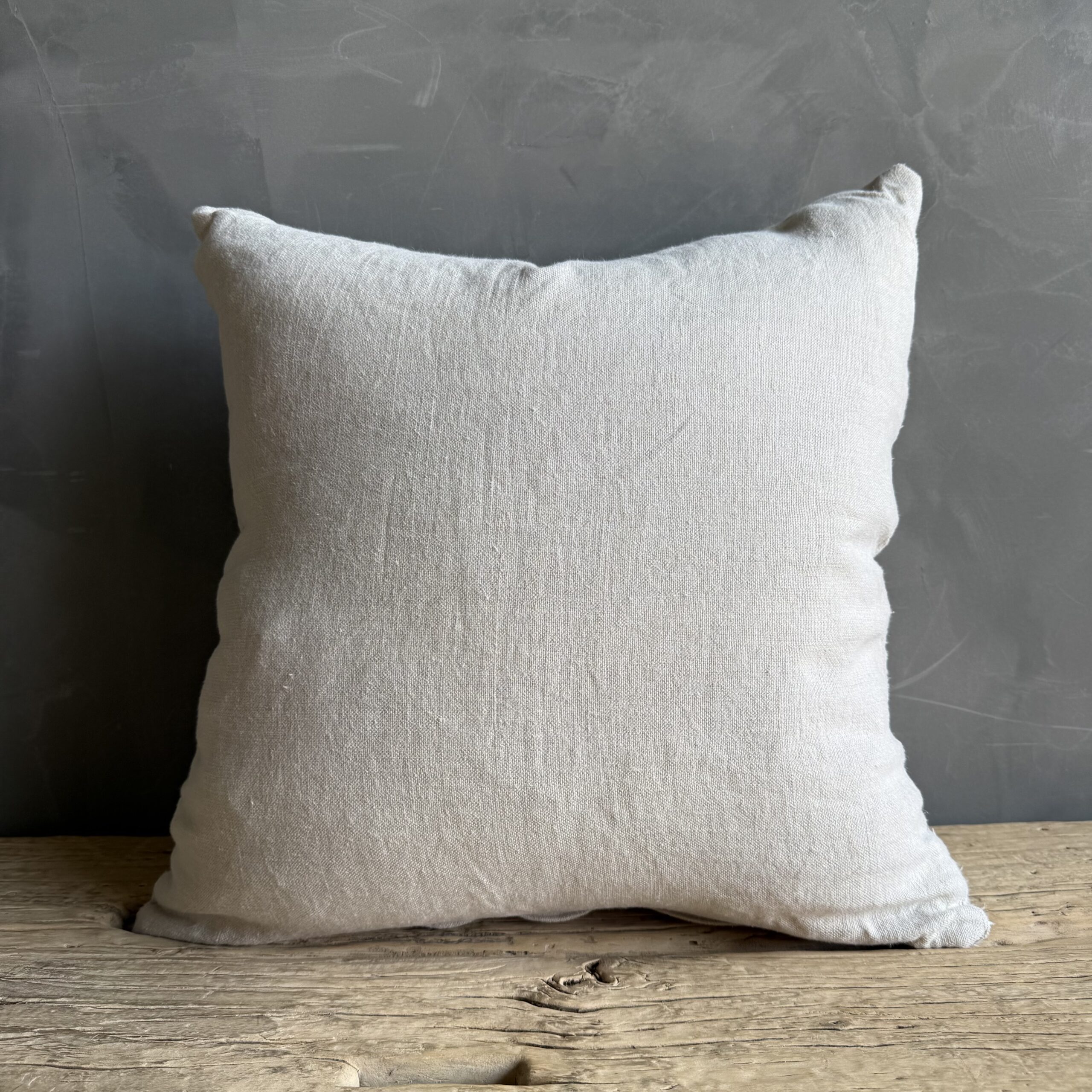 A truly one-of-a-kind pillow, thoughtfully handcrafted from a carefully curated selection of beautiful, unique fabrics. Each piece is composed of textiles chosen for their rich texture, subtle variation, and distinctive character—ranging from soft, timeworn weaves to more structured, tactile finishes. The combination of tones and materials creates a layered, collected look that feels both elevated and effortlessly lived-in.