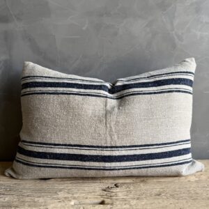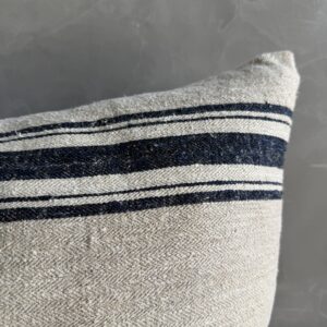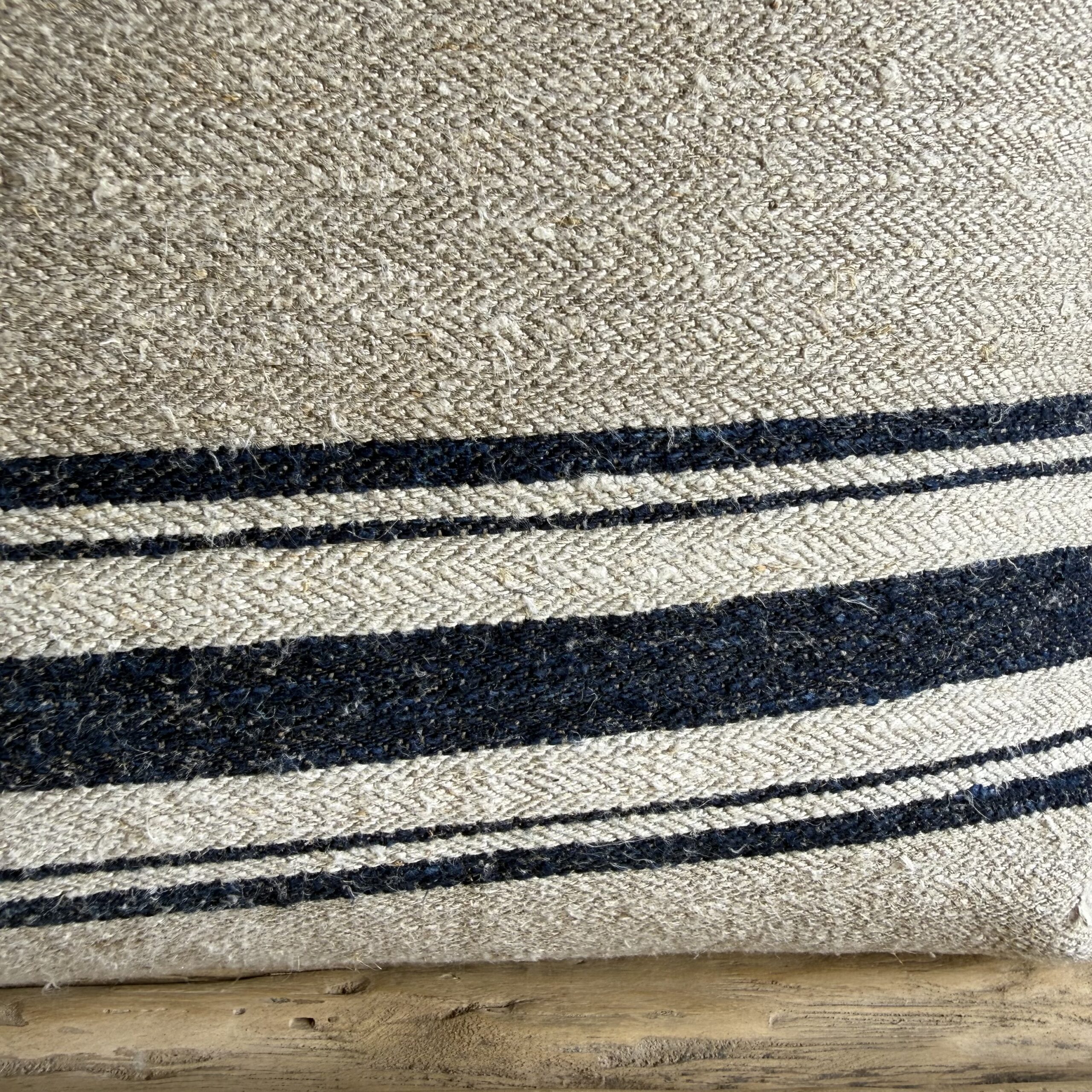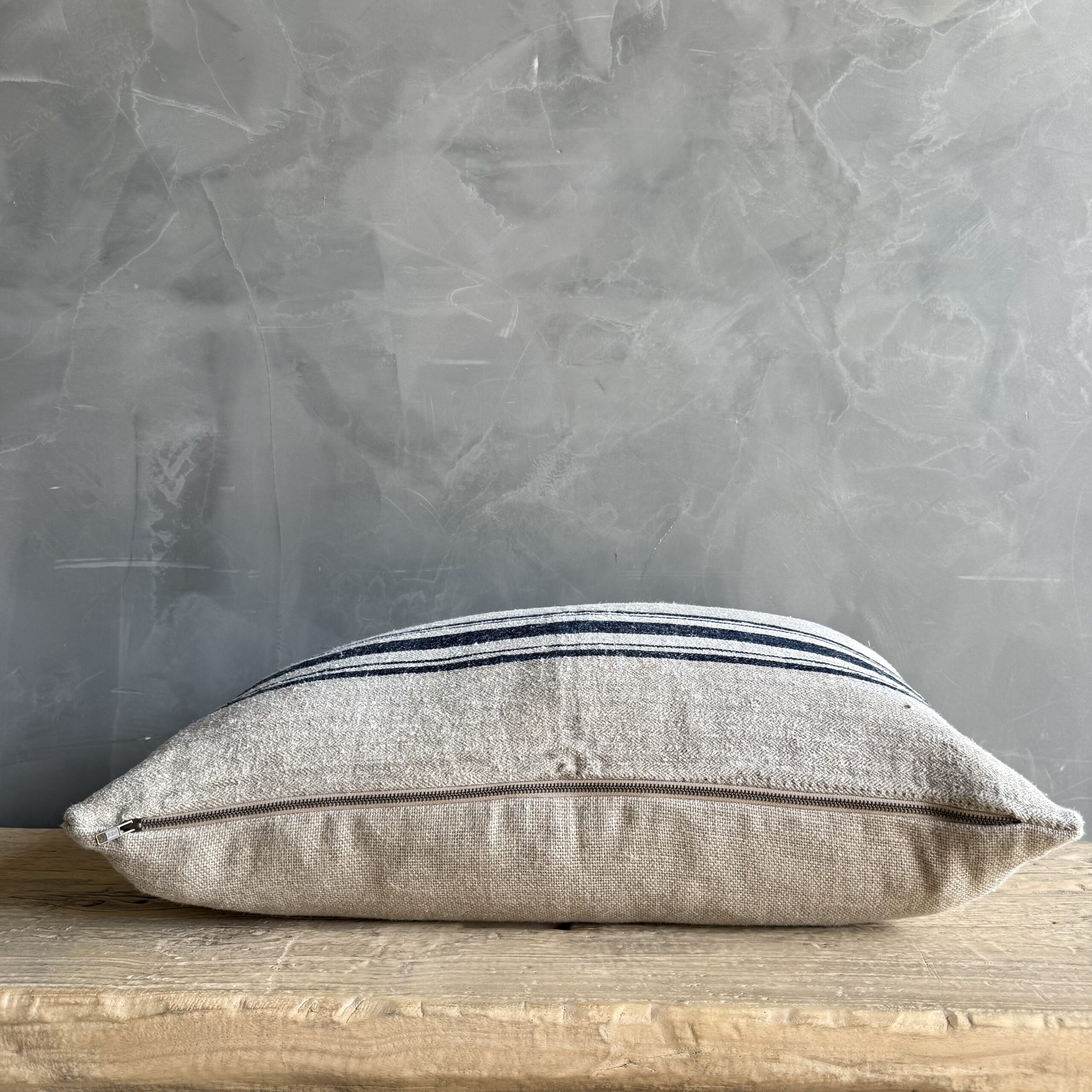 Vintage Grainsack Flax and Indigo Stripe Lumbar Pillow