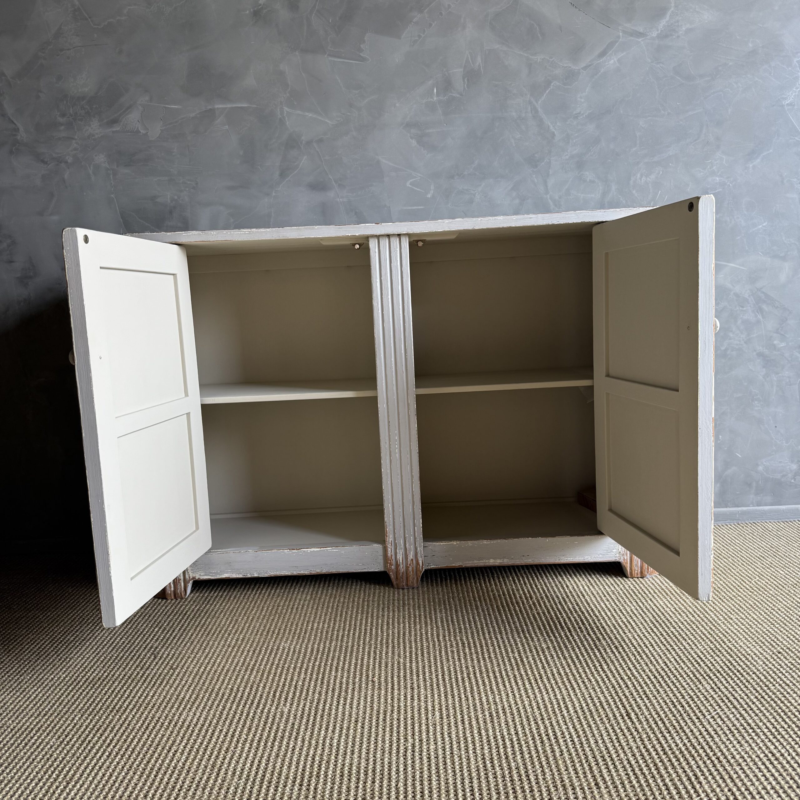 This charming vintage wood cabinet is a one-of-a-kind piece with beautiful age and patina that adds character to any space. Its patina painted wood finish showcases the natural beauty of the wood, while the solid woods original grain shows through the paint.. This unique cabinet is perfect for a mountain, lake house, coastal cottage bringing a touch of vintage to the rooms. With its timeless design and exceptional craftsmanship, this vintage style wood cabinet is sure to be a conversation starter and a focal point in your home.