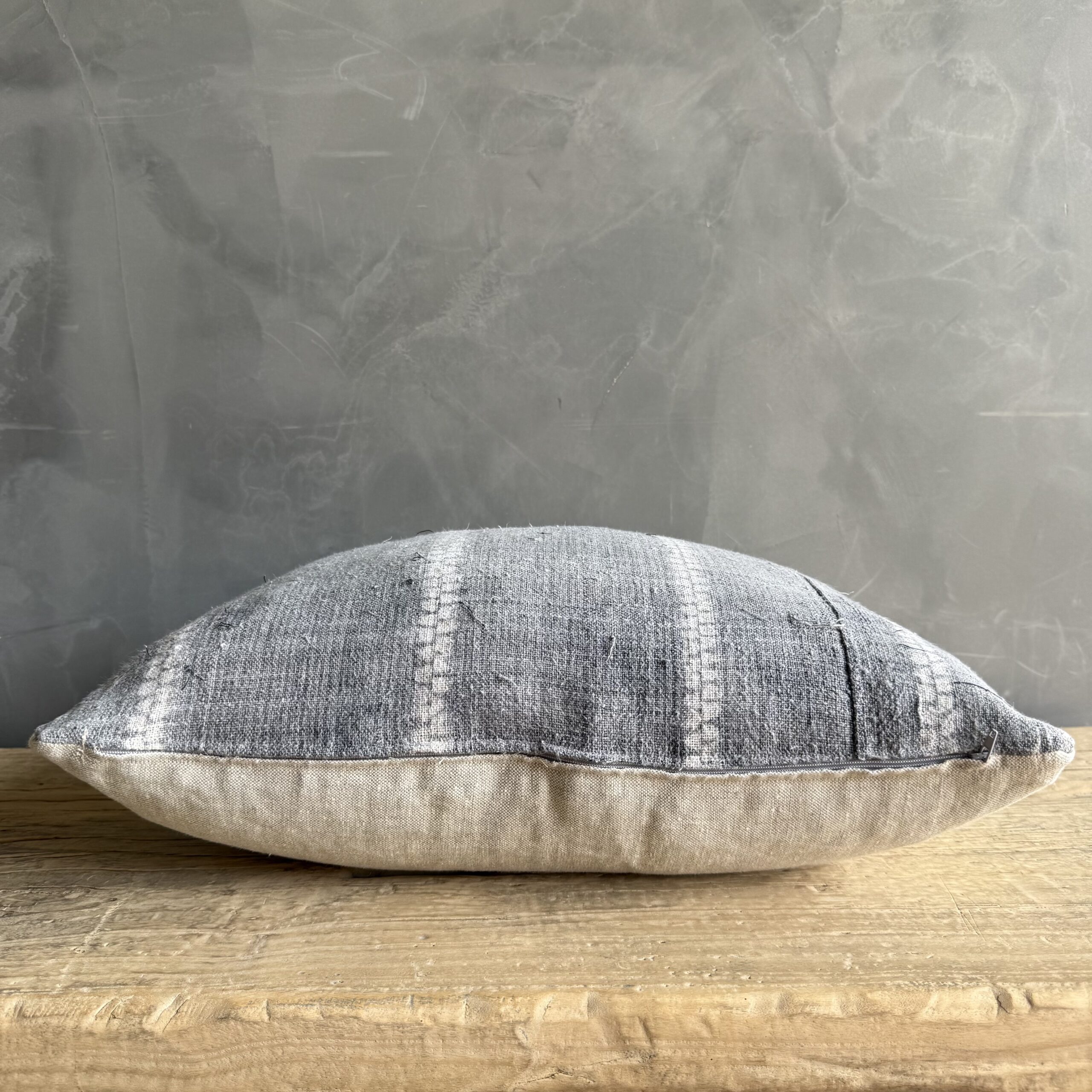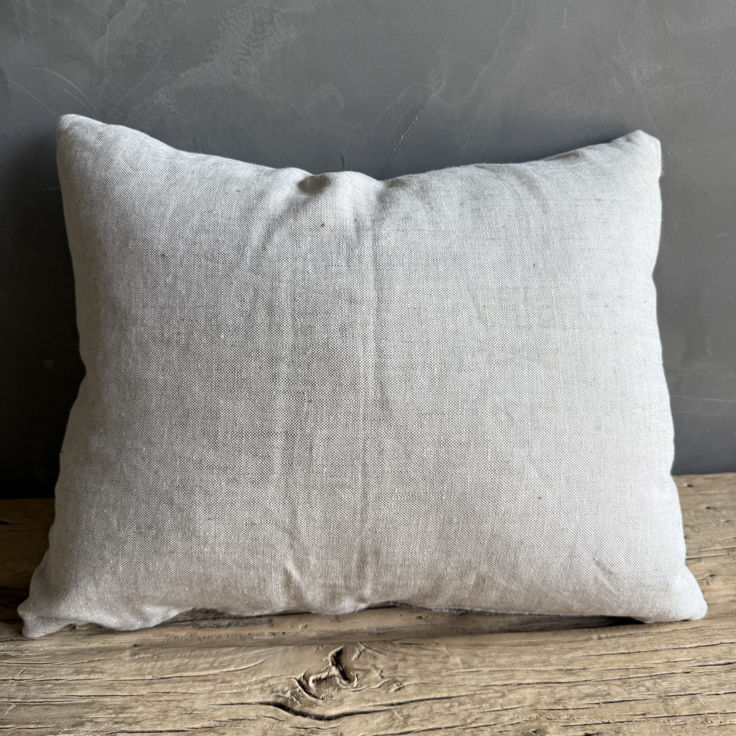A truly one-of-a-kind pillow, thoughtfully handcrafted from a carefully curated selection of beautiful, unique fabrics. Each piece is composed of textiles chosen for their rich texture, subtle variation, and distinctive character—ranging from soft, timeworn weaves to more structured, tactile finishes. The combination of tones and materials creates a layered, collected look that feels both elevated and effortlessly lived-in.